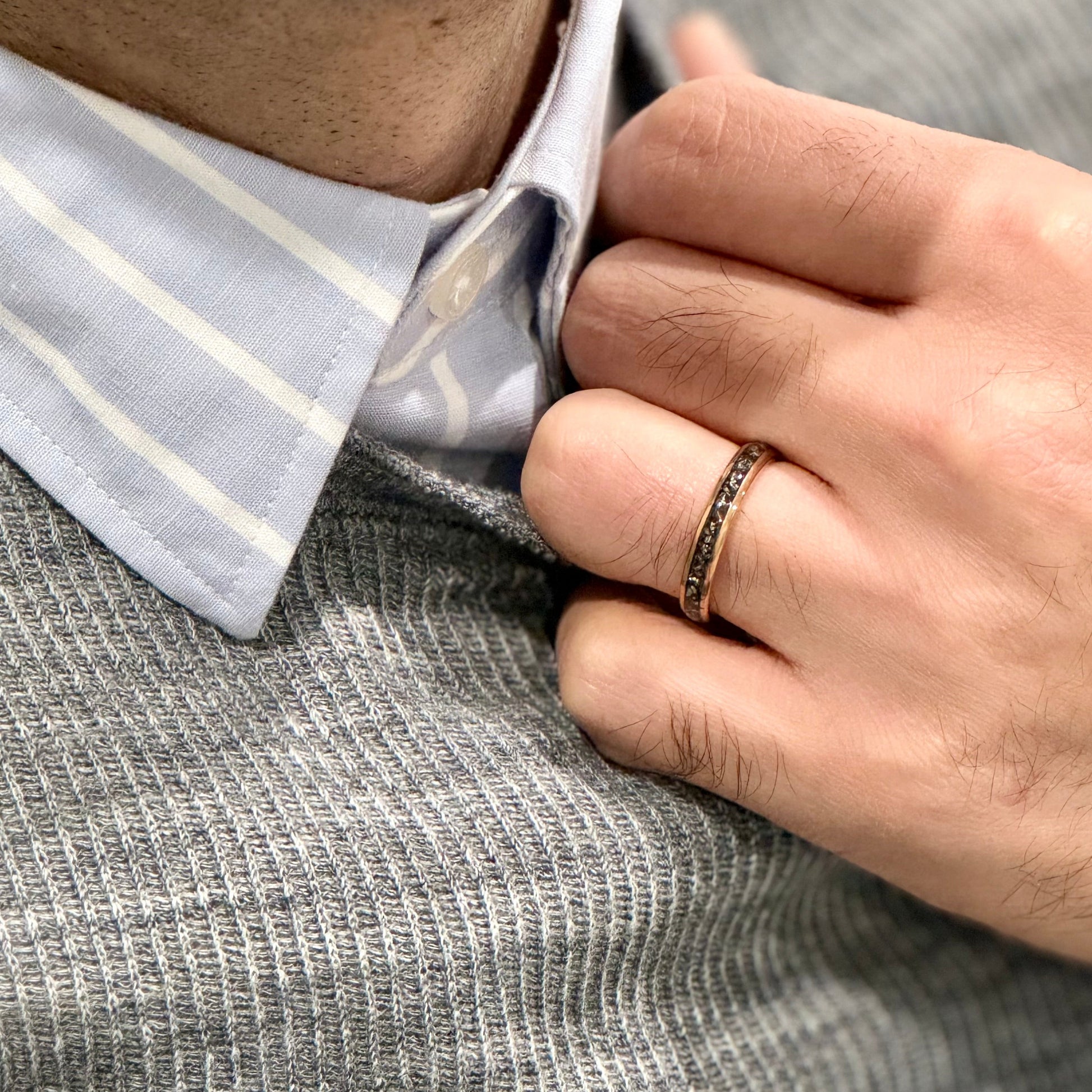 “STARLIGHT” Tungsten Carbide Rose Gold Ring 4mm w/ Crushed Meteorite