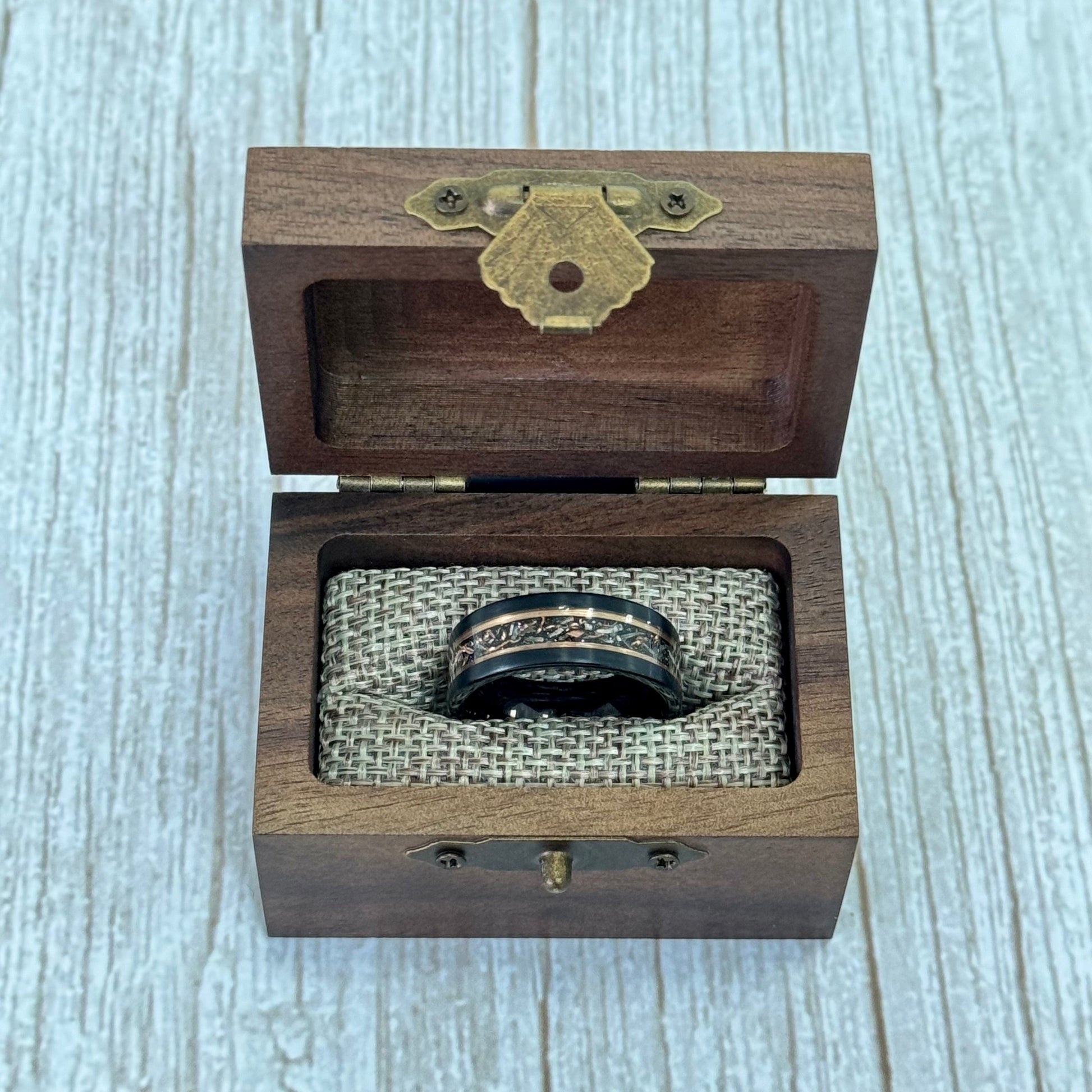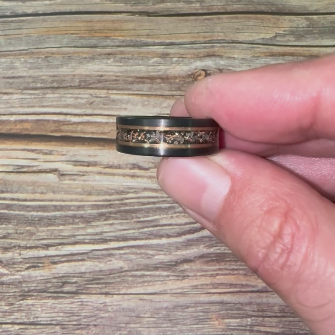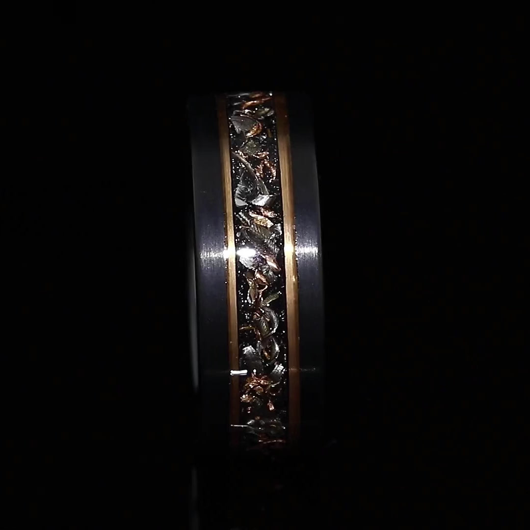 Binary Tungsten Black Ring - 8mm Meteorite, Rose Gold Accents, and Copper Leaf