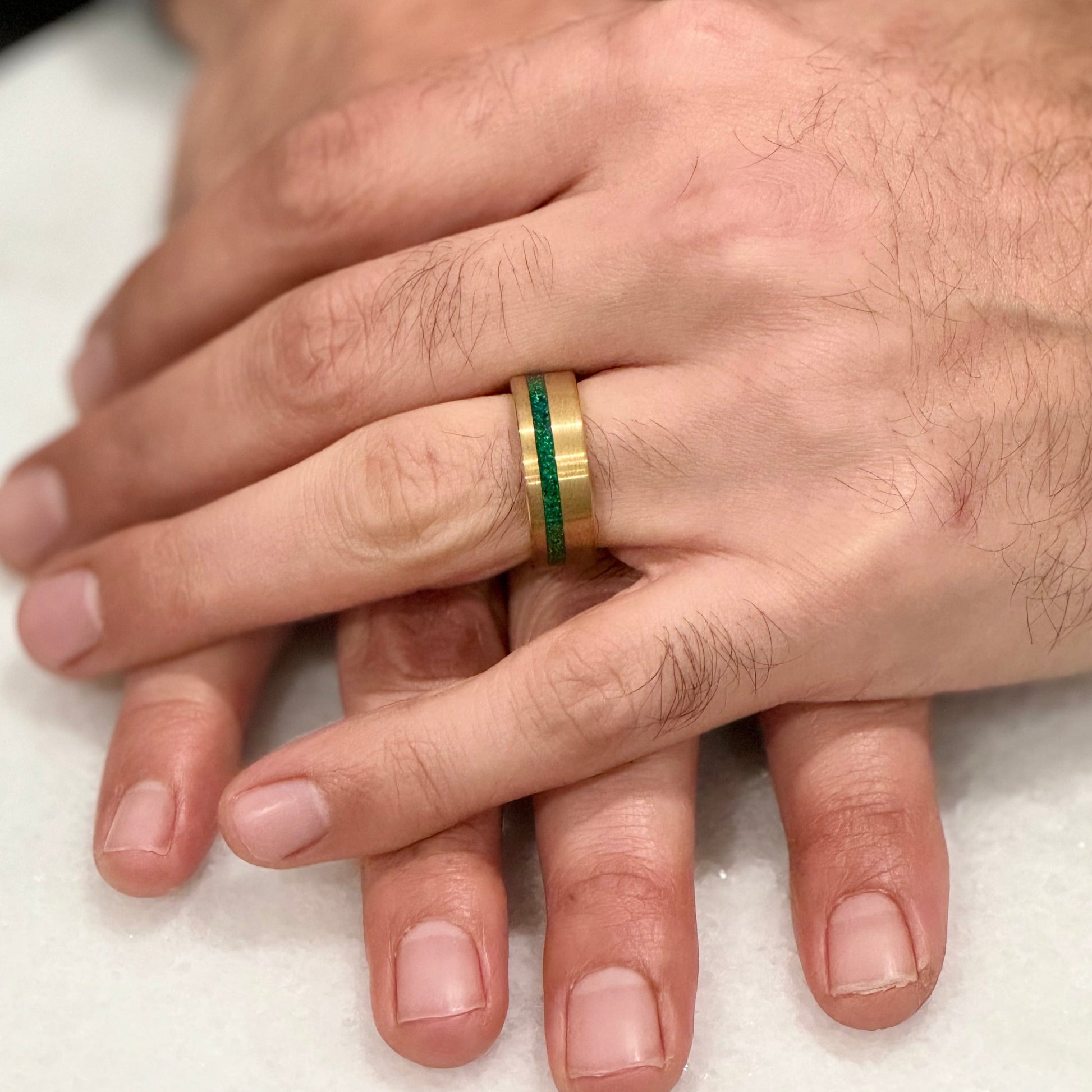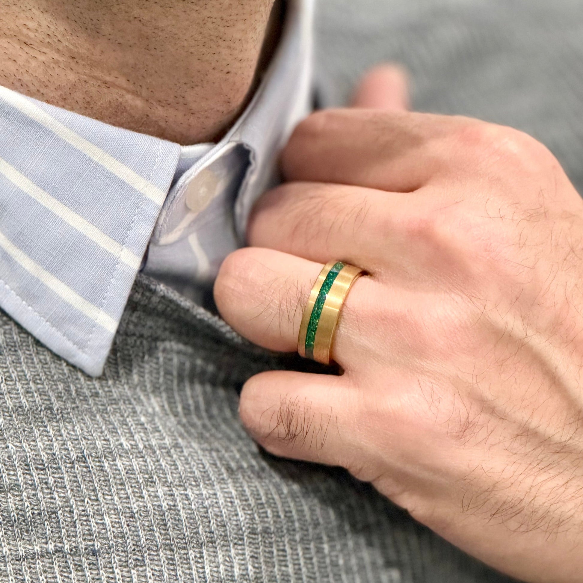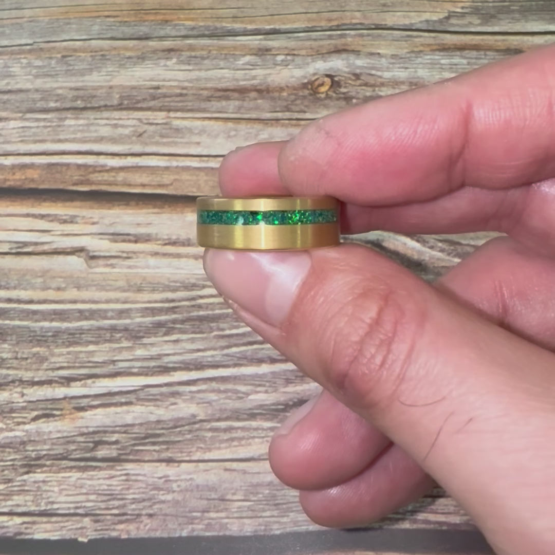 "LOKI" Tungsten Carbide Gold Ring 8mm w/ Crushed Green Opal
