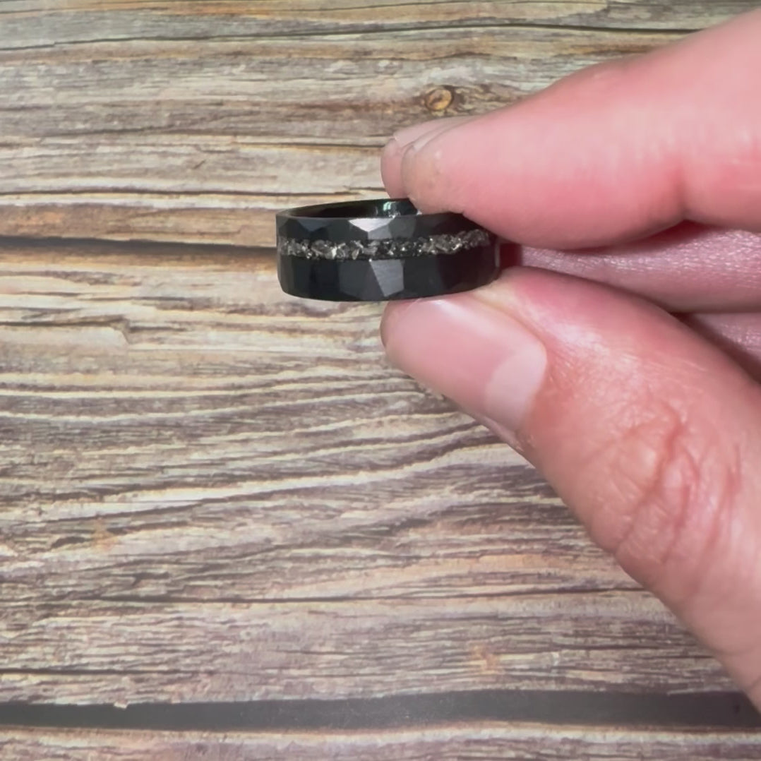 "STARDUST" Black Tungsten Ring with Meteorite Dust & Silver Specs