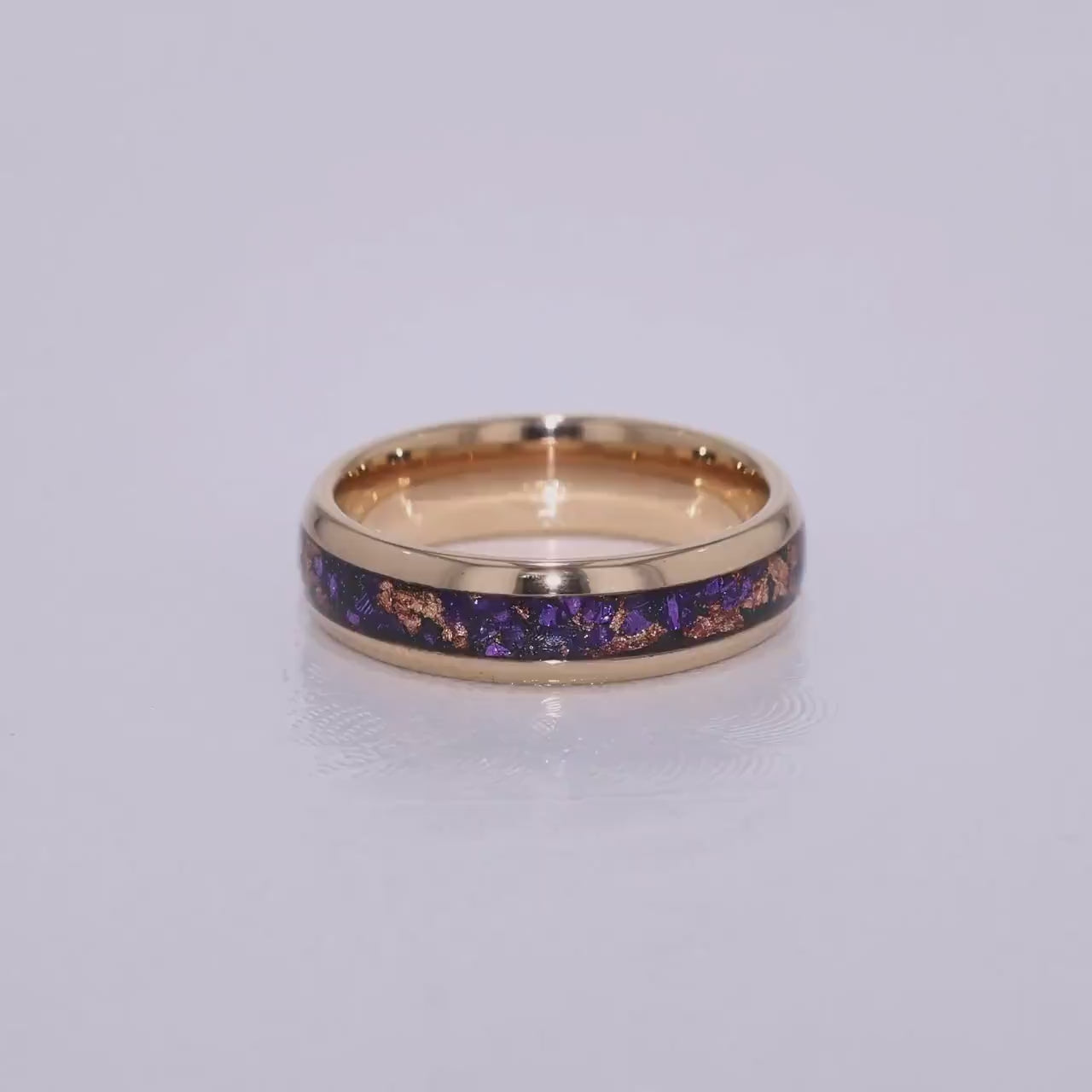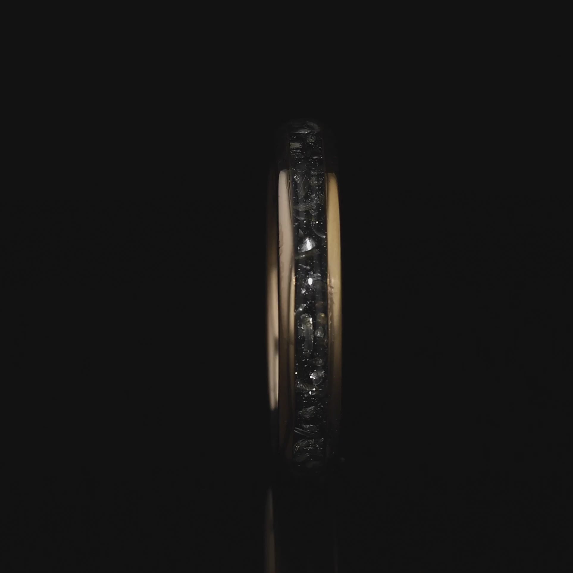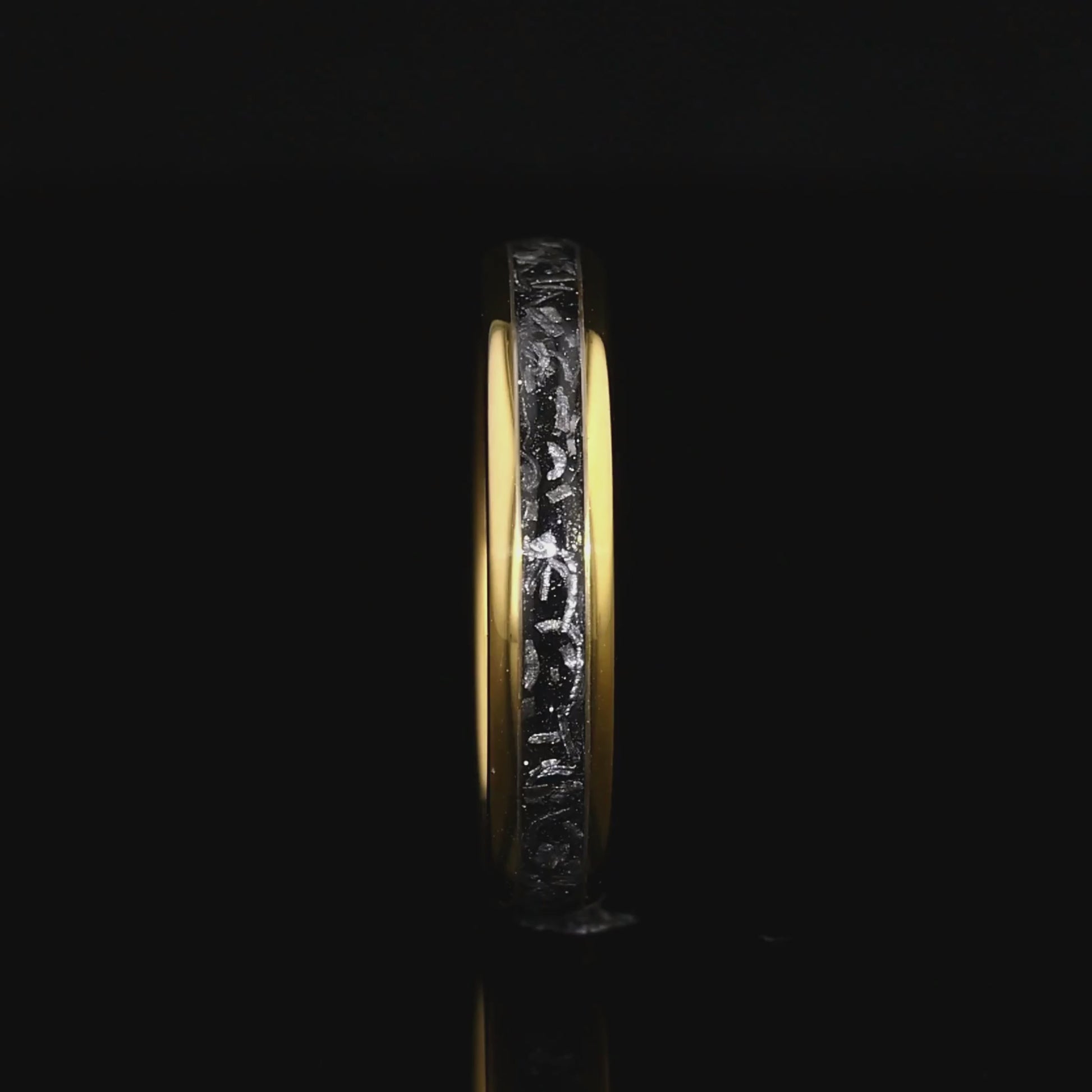 “STARLIGHT” Tungsten Carbide Yellow Gold Ring Crushed Meteorite(4mm)