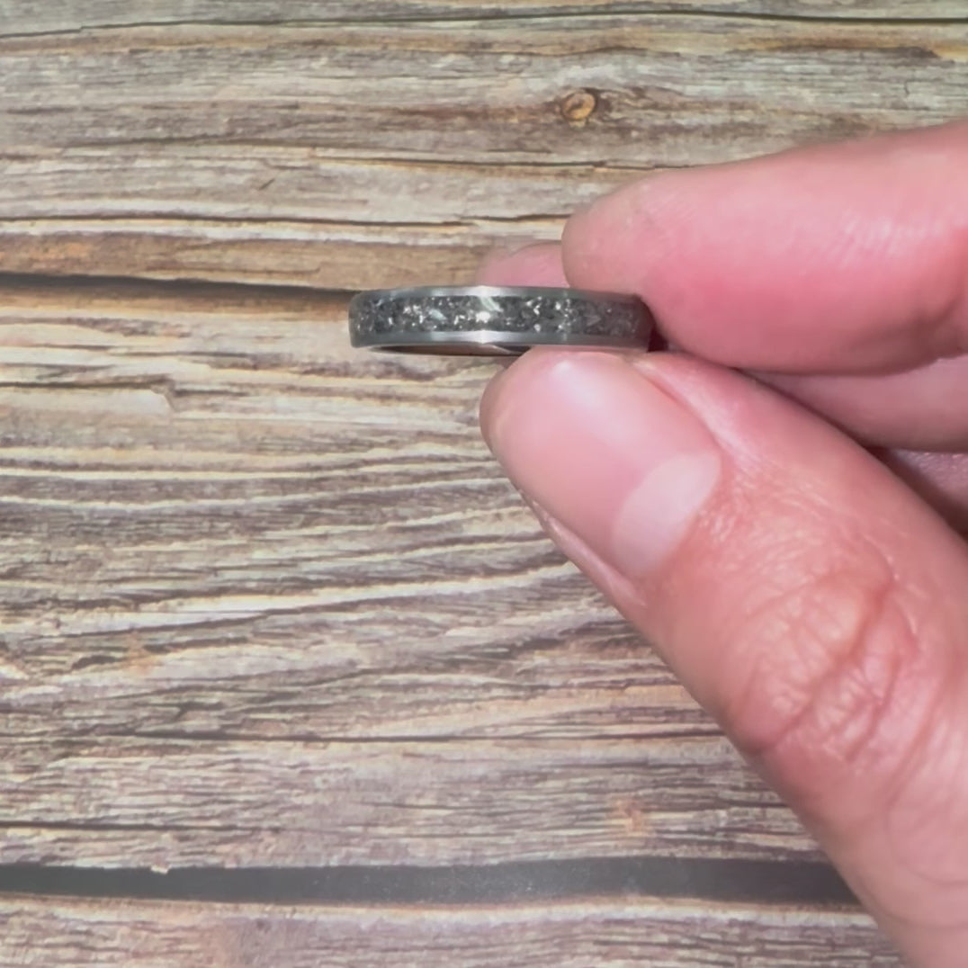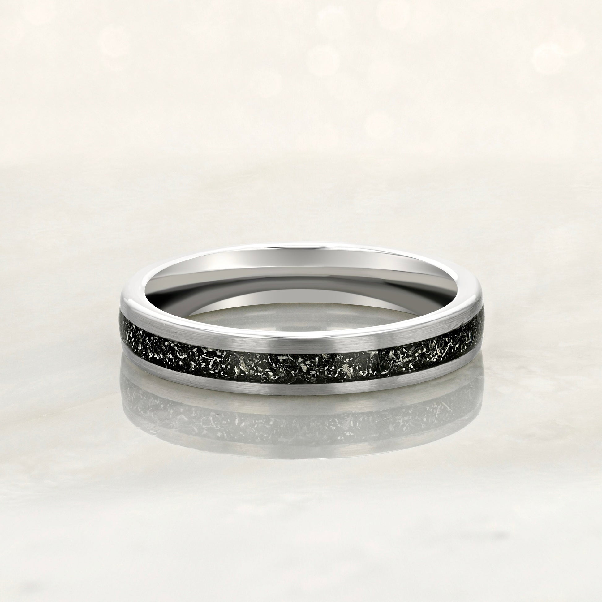 "Starlight" Tungsten Carbide Silver Ring with Crushed Meteorite