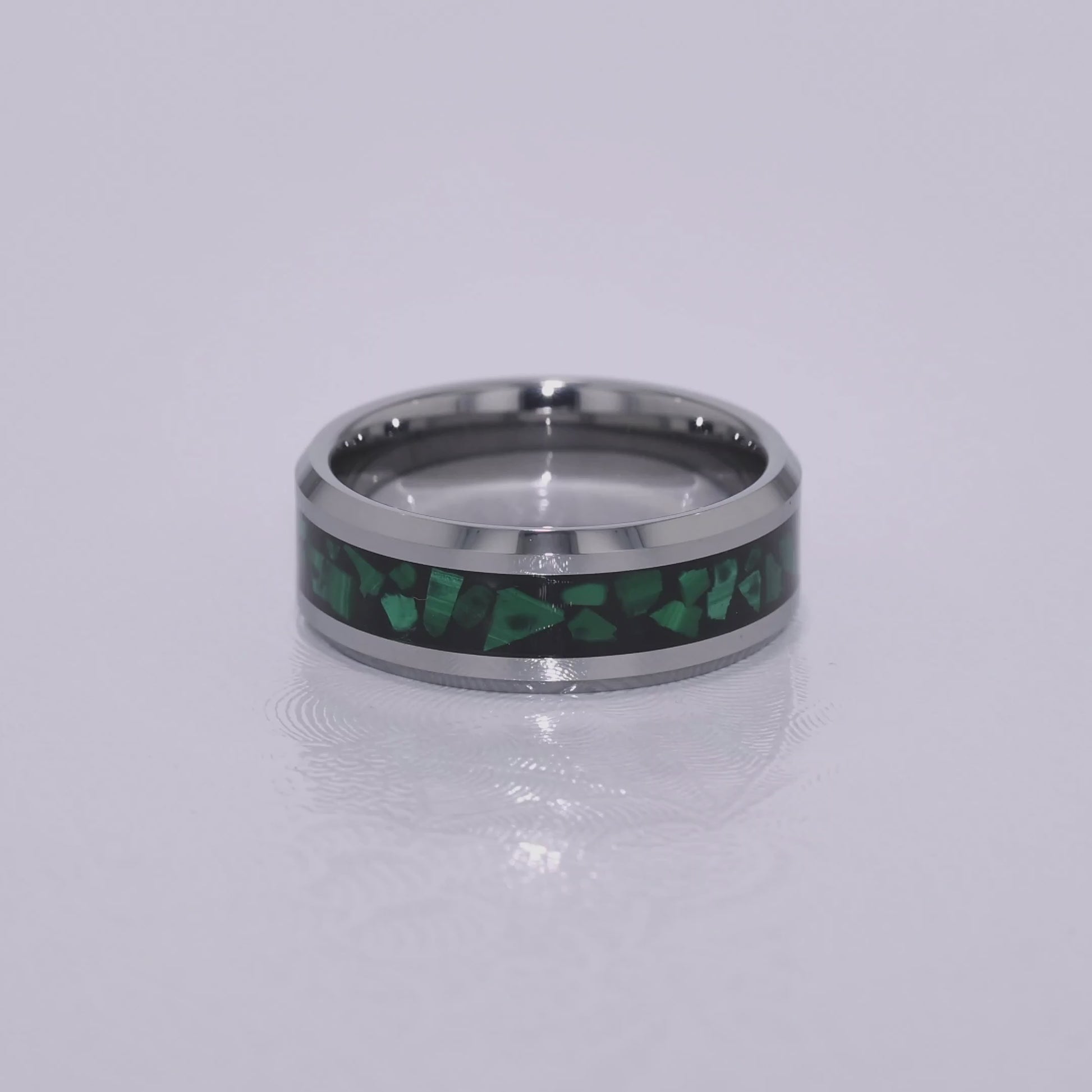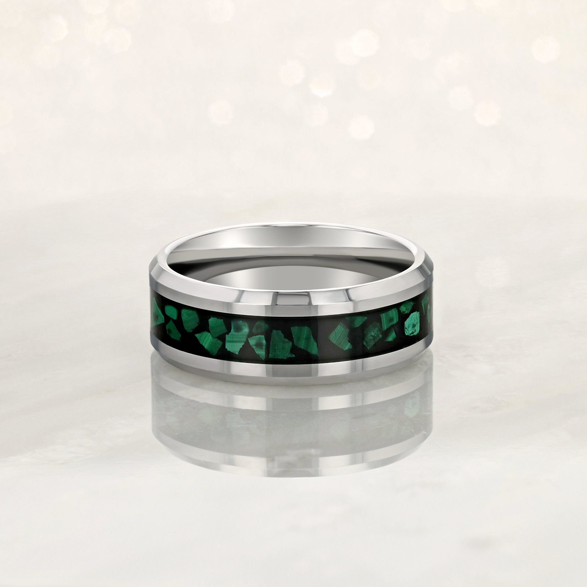 "AURORA" Tungsten Carbide Silver Ring 8mm w/ Malachite