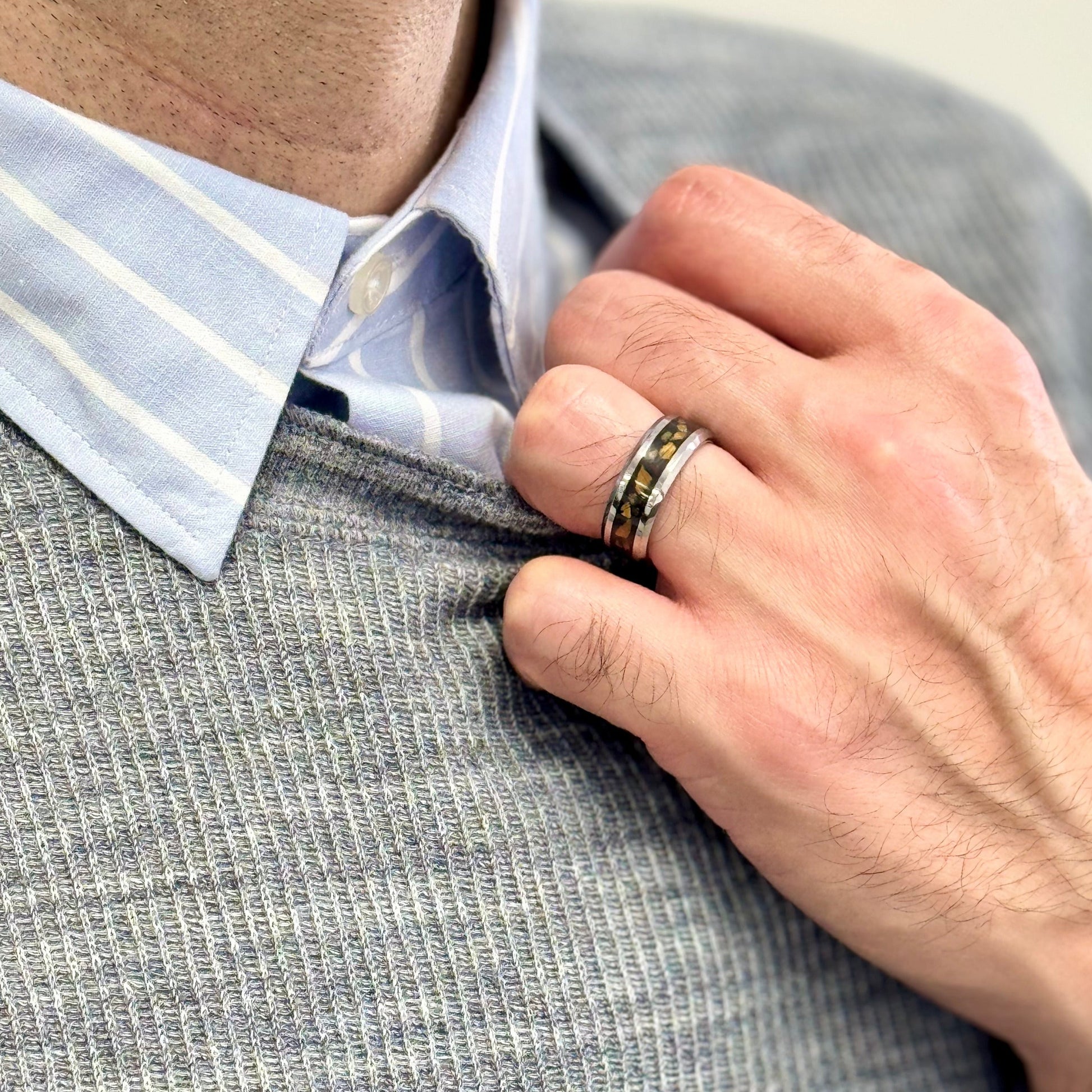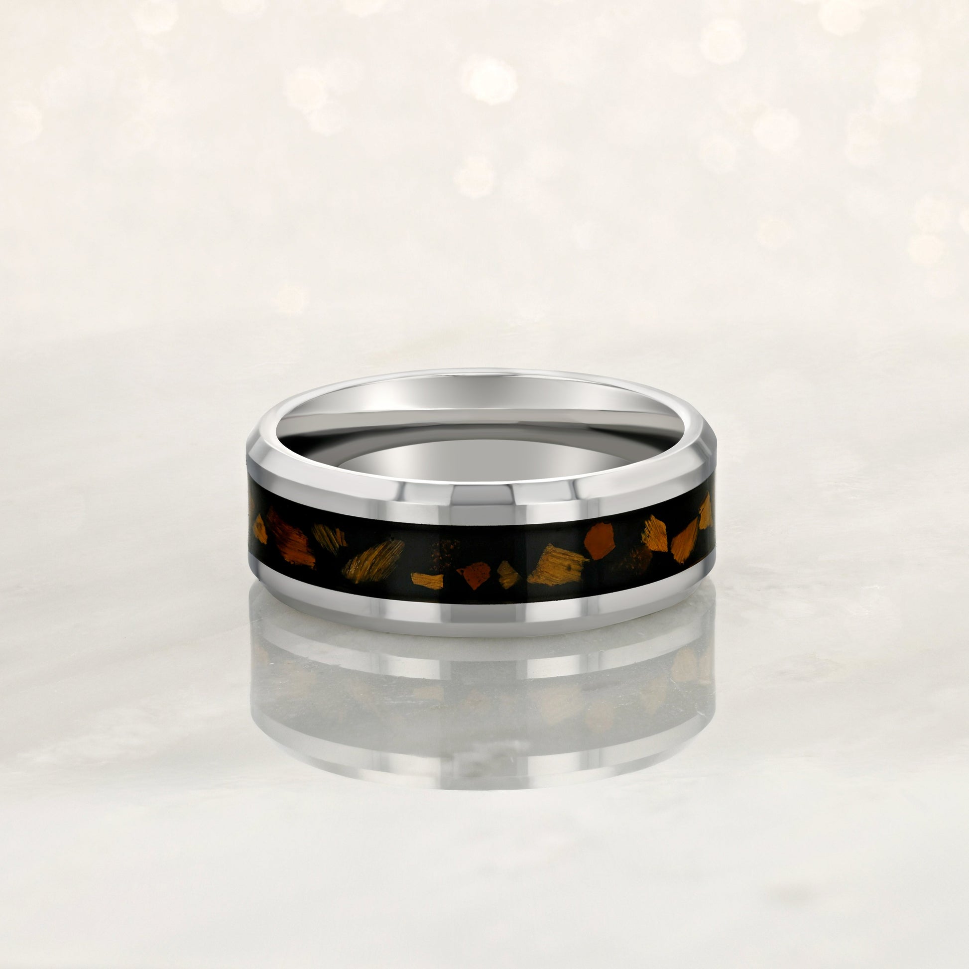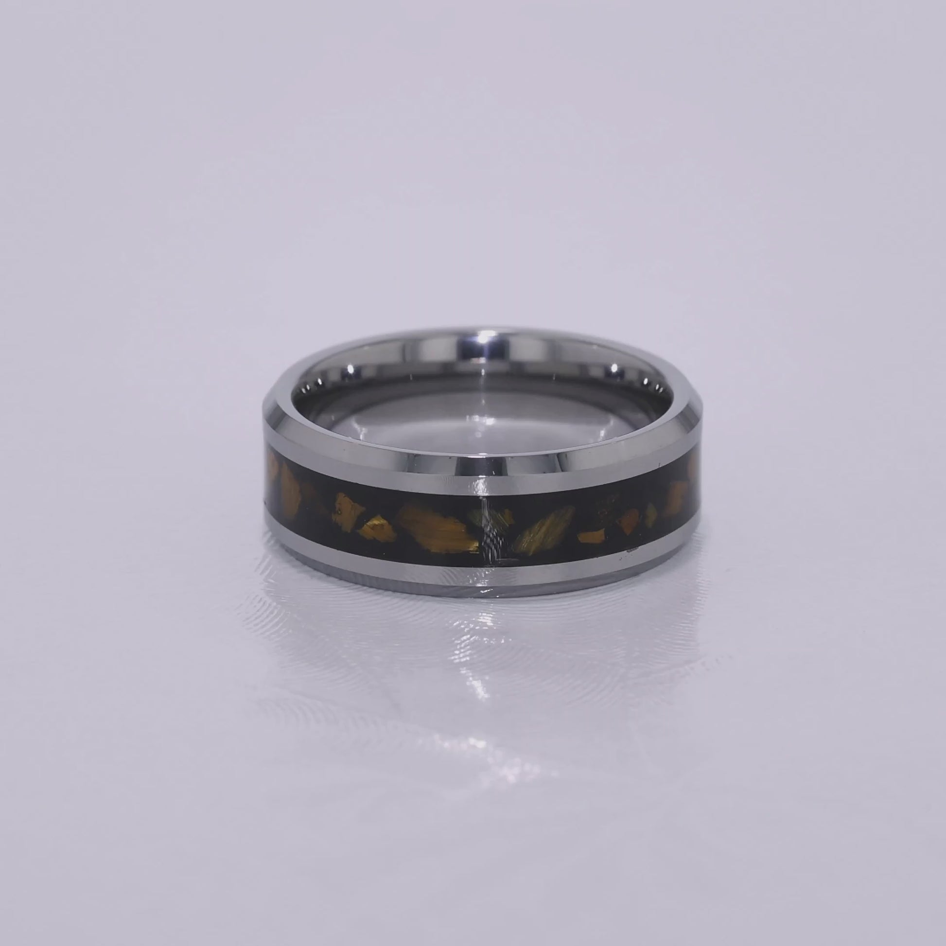 "AURORA" Tungsten Carbide Silver Ring 8mm w/ Tiger's Eye