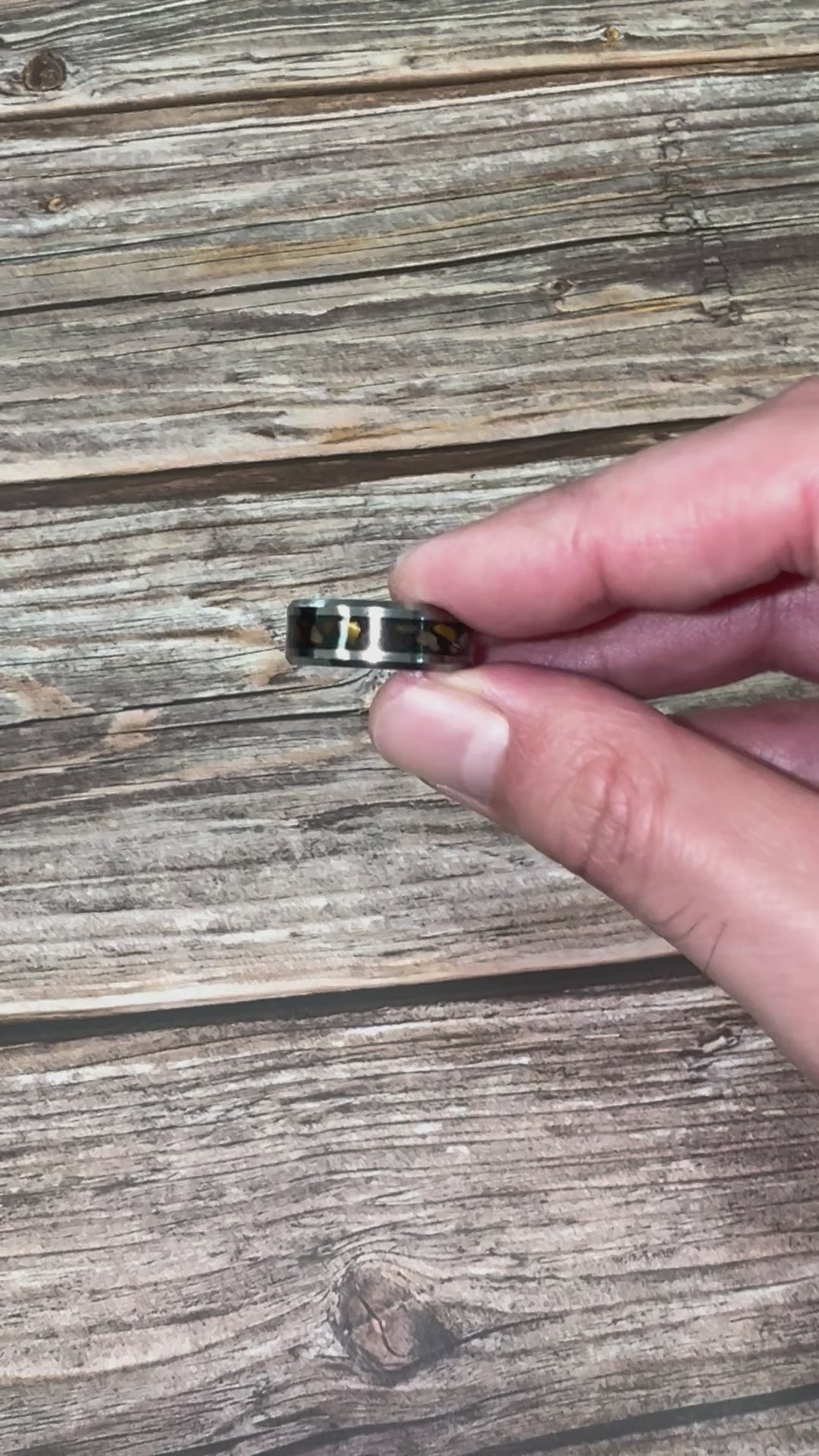 "APEX" Tungsten Carbide Silver Brushed Ring 8mm w/ Blue-Green Opal