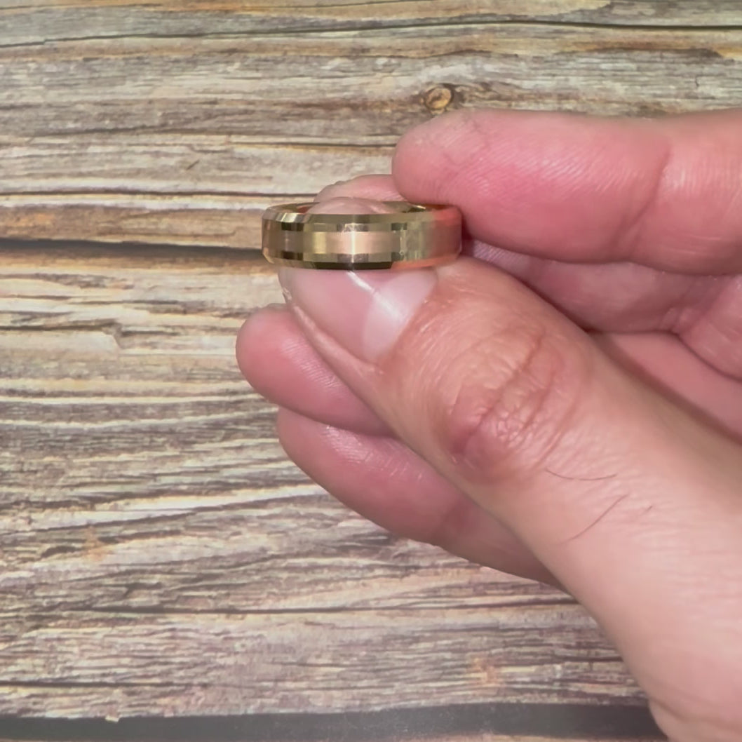 Regular price $315.00 Sale price $236.25“Binary" Tungsten Carbide Black Ring 8mm, 6mm w/ Green Opal, Gold Accents and Gold Leaf