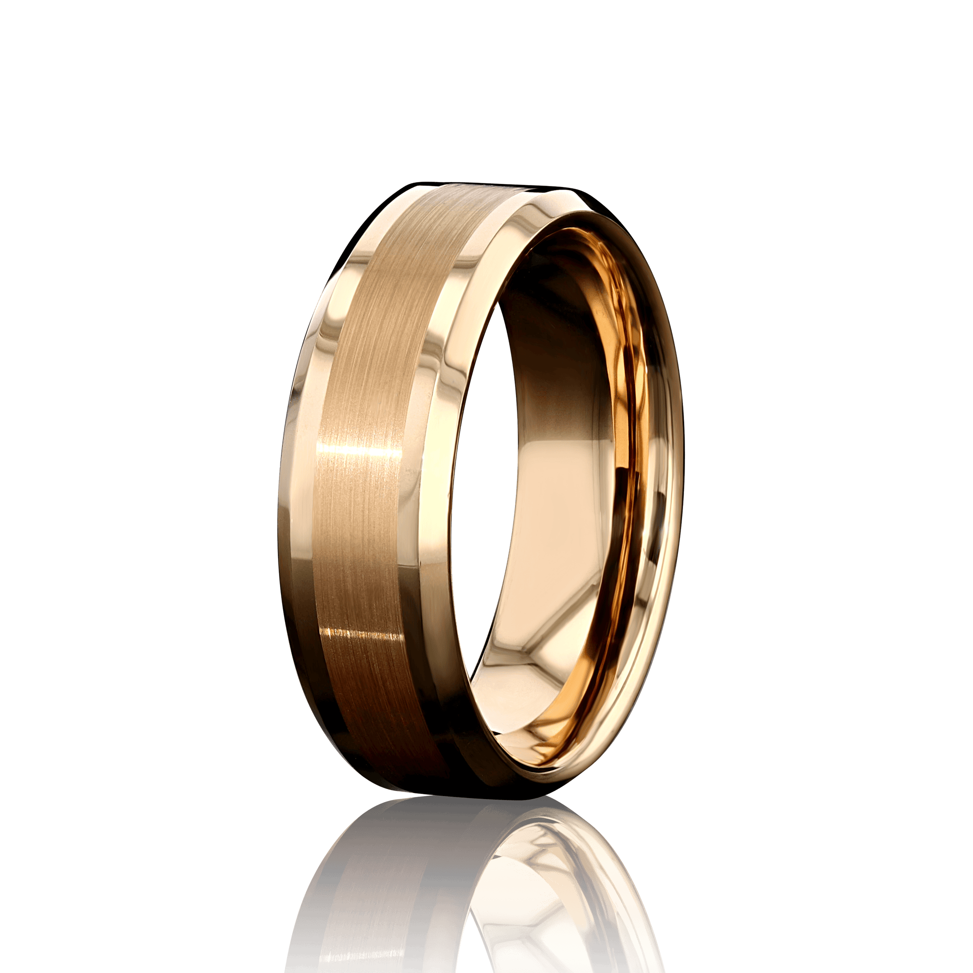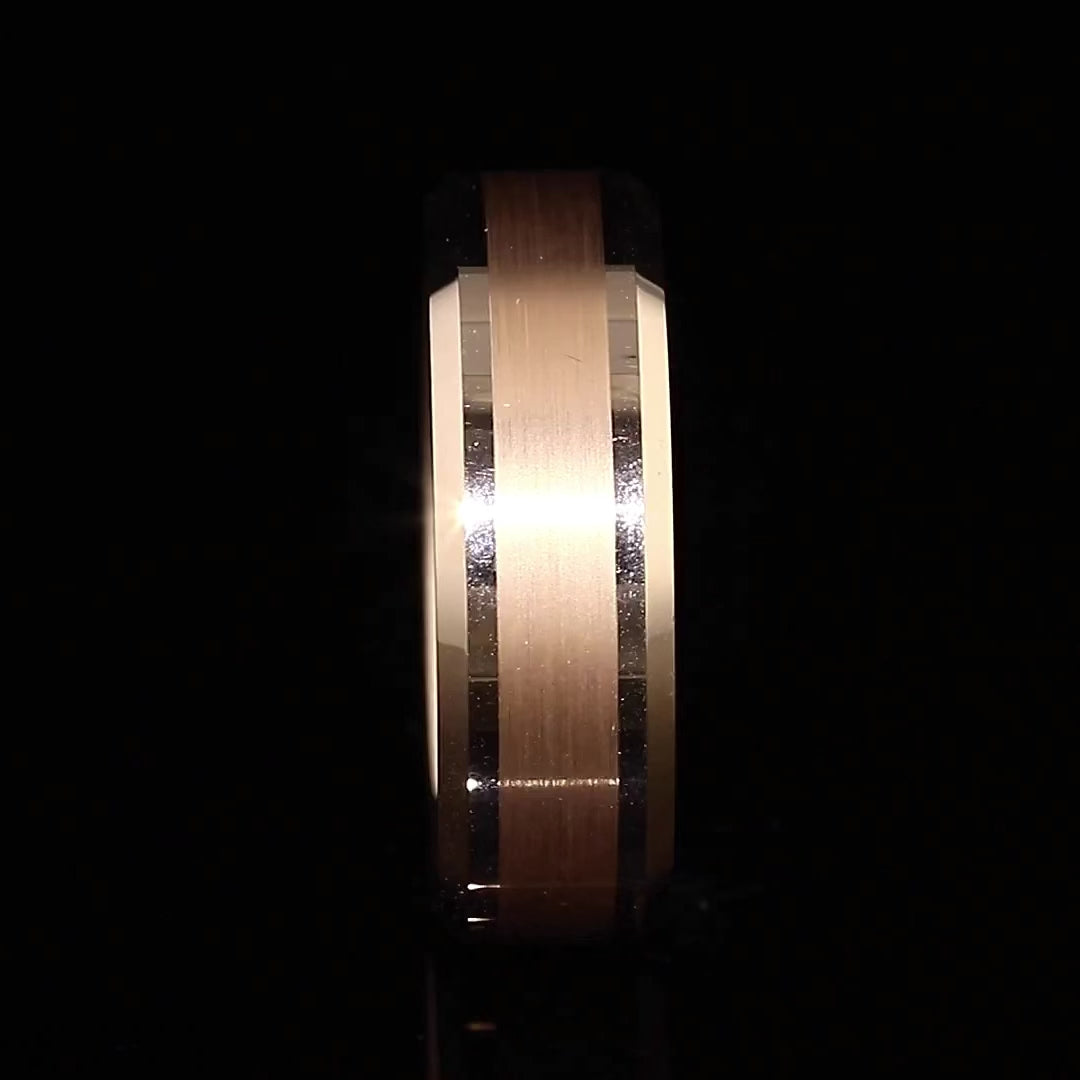 "CHROMATIC" Tungsten Carbide Rose Gold Ring 6mm, 8mm w/ Brushed Silver Middle