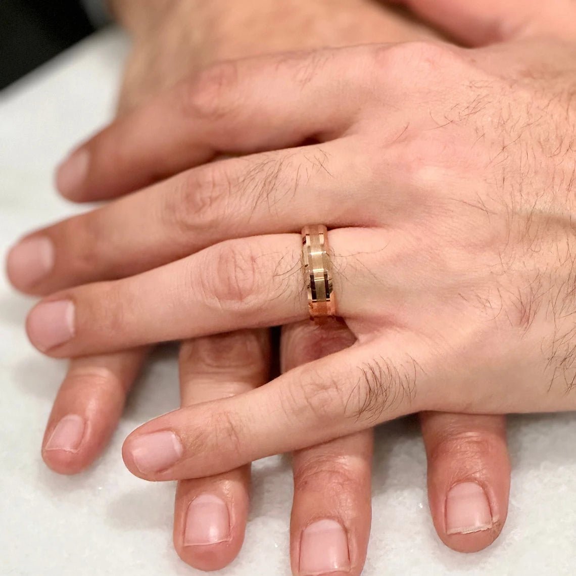 "PRISTINE " Tungsten Carbide Rose Gold Ring 6mm, 8mm w/ Rose Gold Brushed Middle