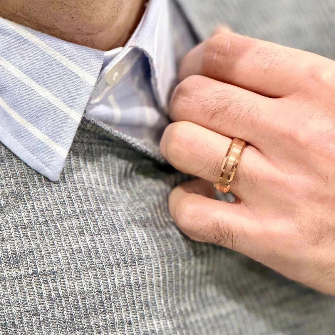 Sale"CHROMATIC" Tungsten Carbide Rose Gold Ring 6mm, 8mm w/ Brushed Silver Middle