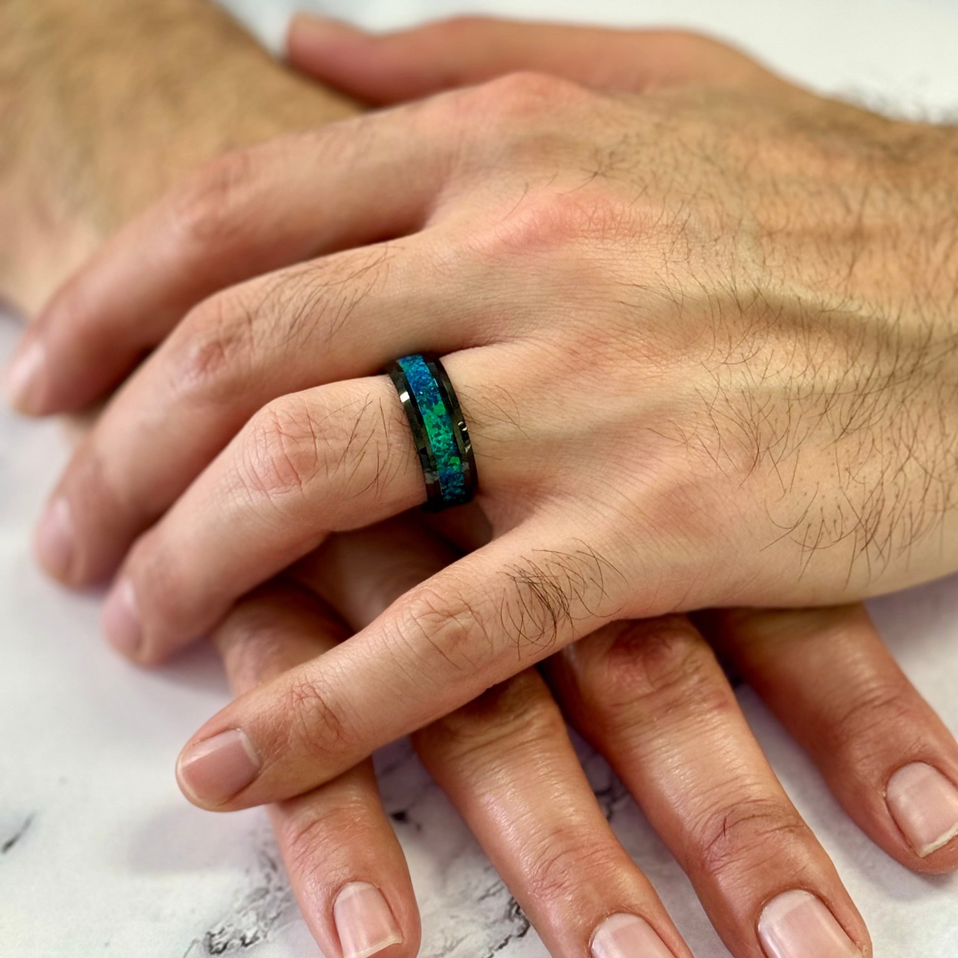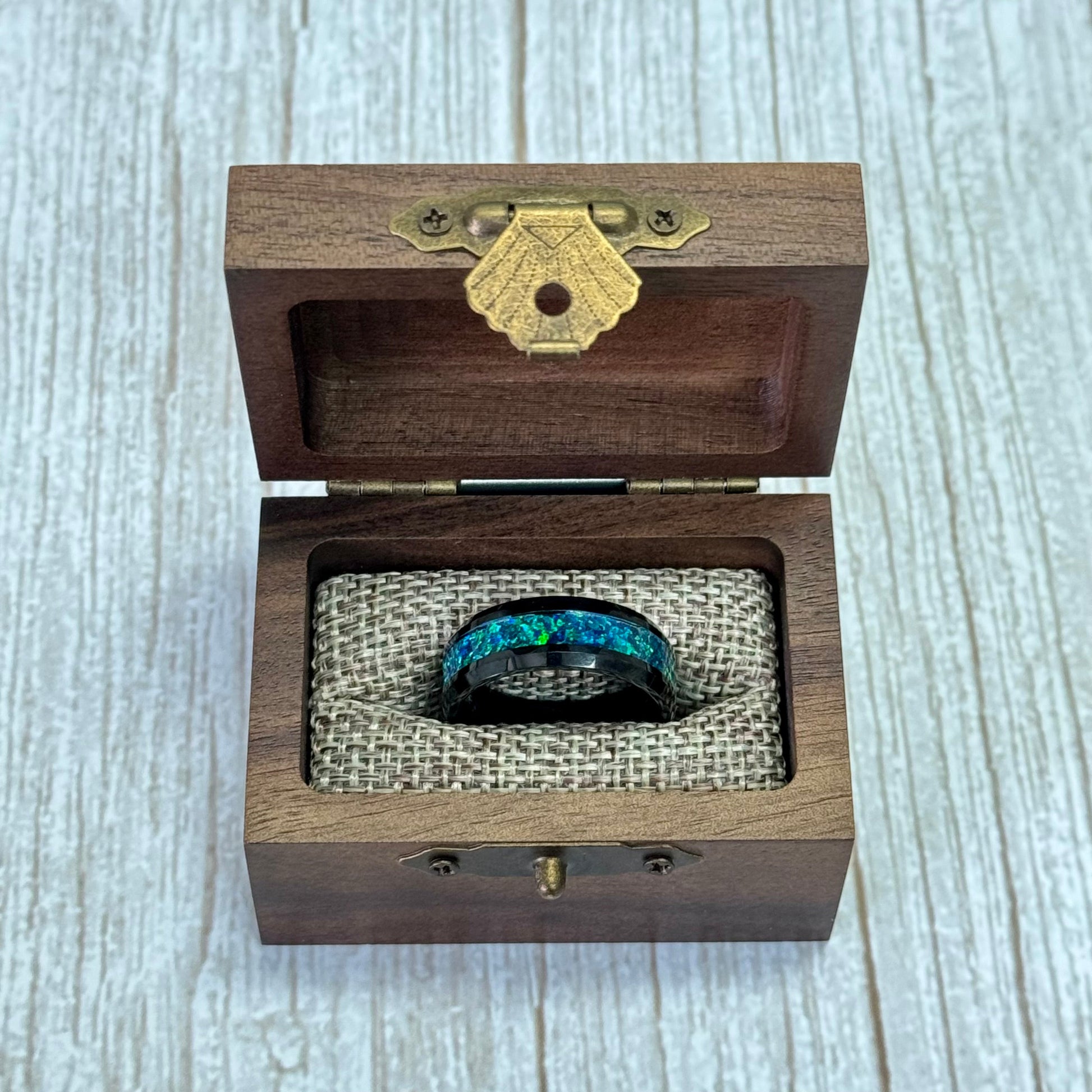 Each ring bears the imprint of nature's artistry, ensuring its distinctiveness and symbolizing the enduring beauty found in the Earth's treasures. With opal and wood, we convey warmth, beauty, and the timeless commitment shared between partners.