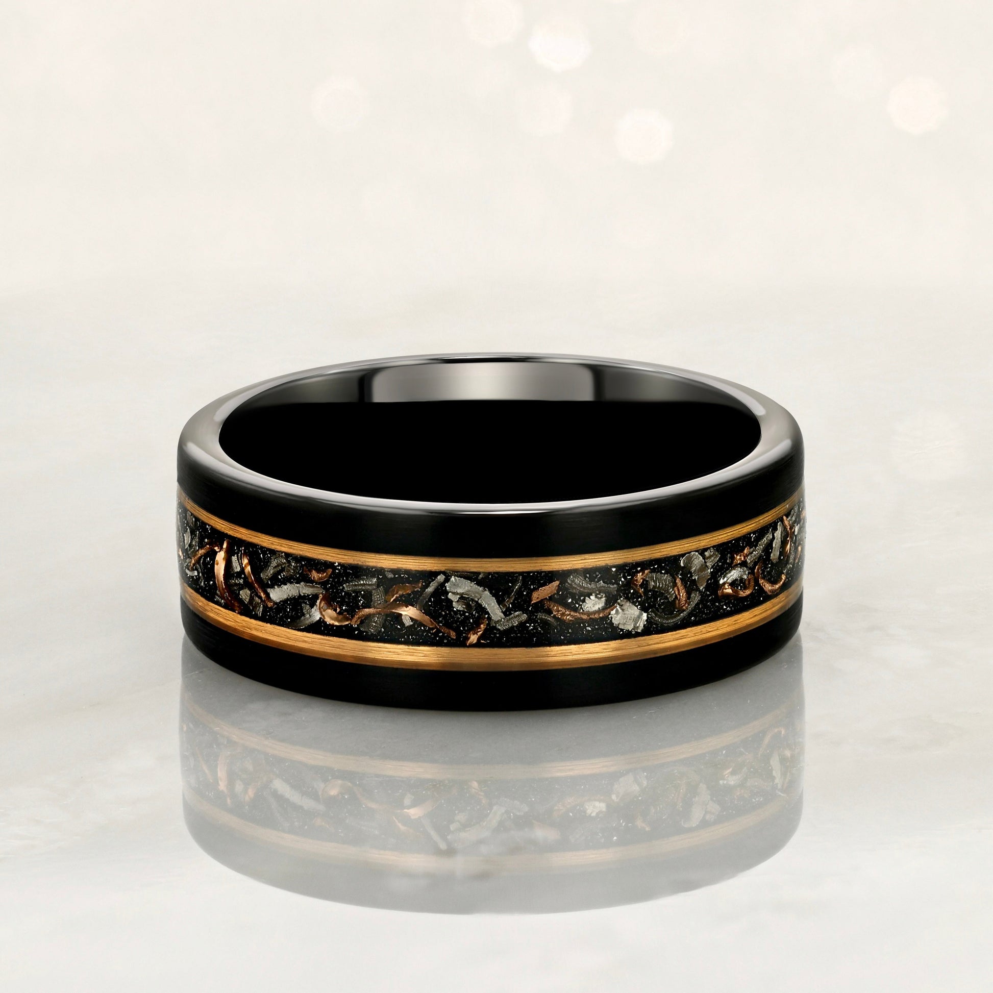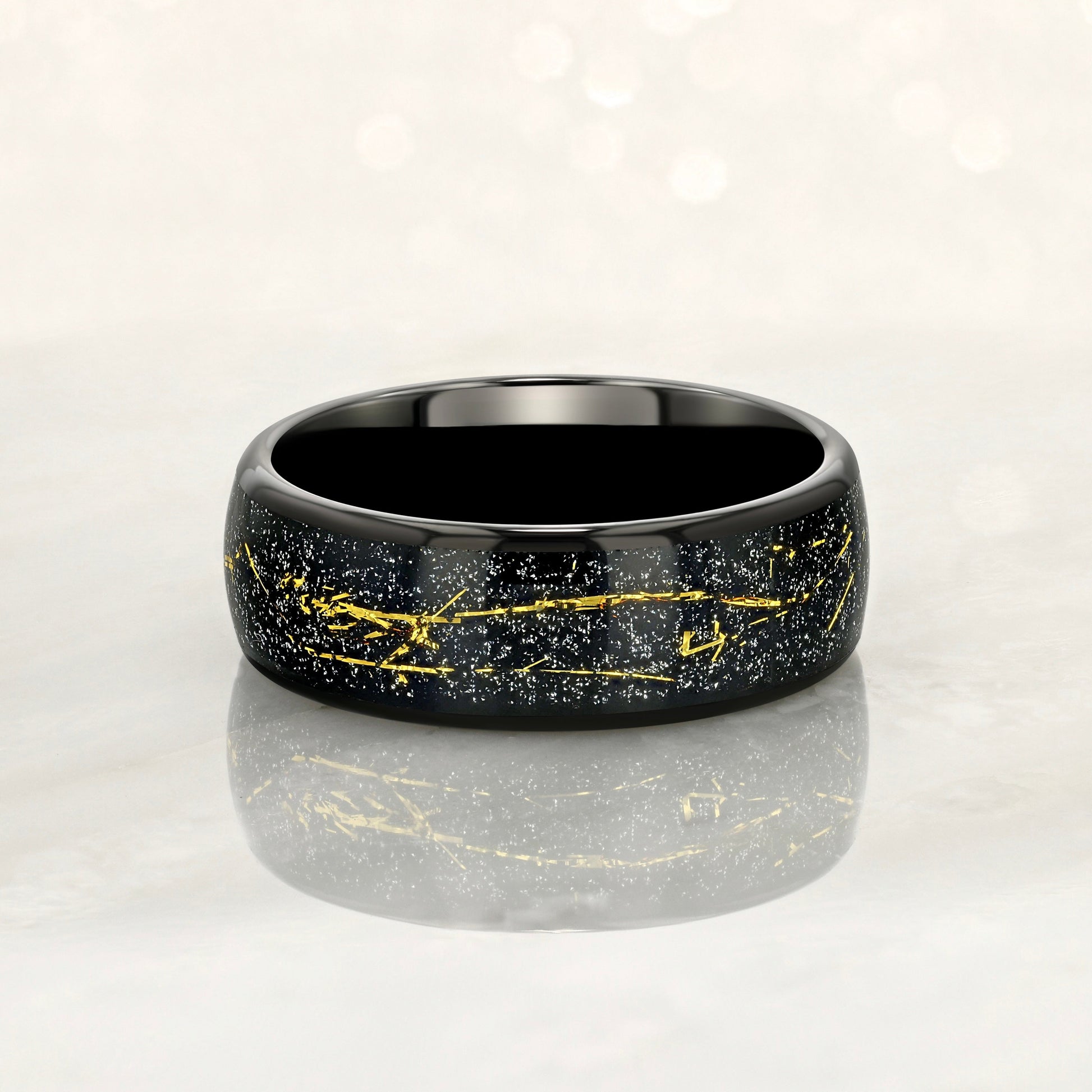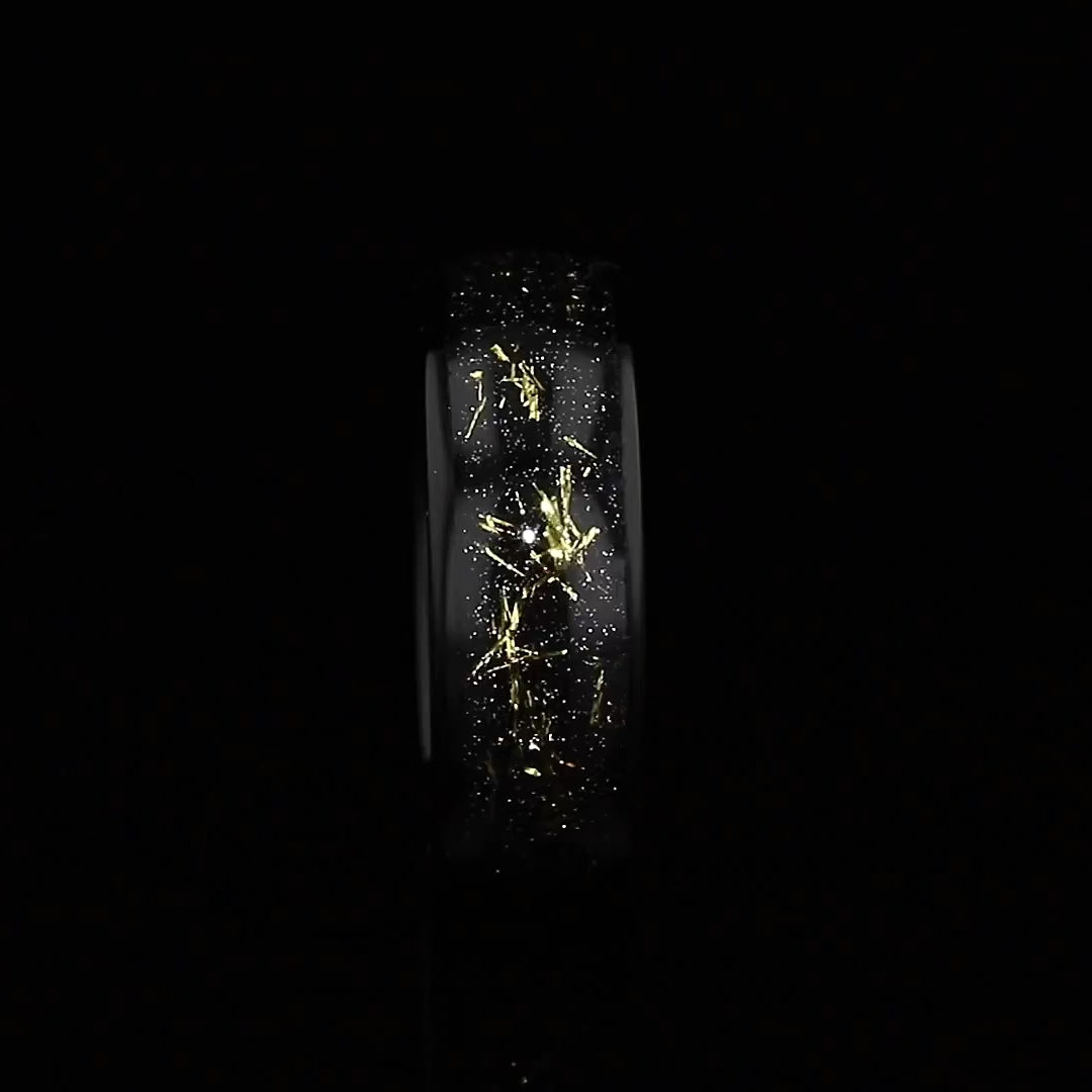 "STARDUST" Tungsten Carbide Black Ring 8mm w/ Meteorite Dust and Gold Specs