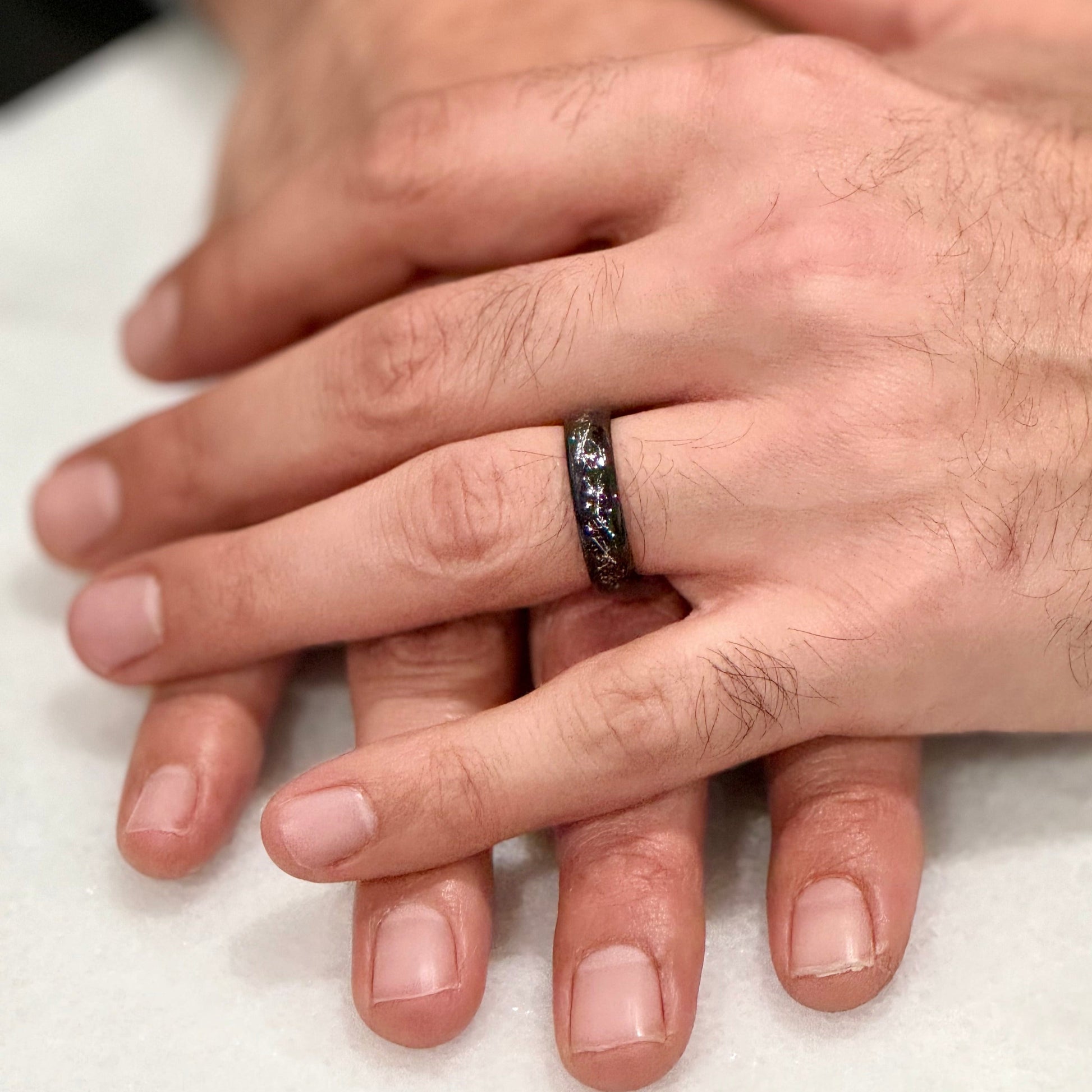 "STARDUST" Black Tungsten Ring with Meteorite Dust & Silver Specs