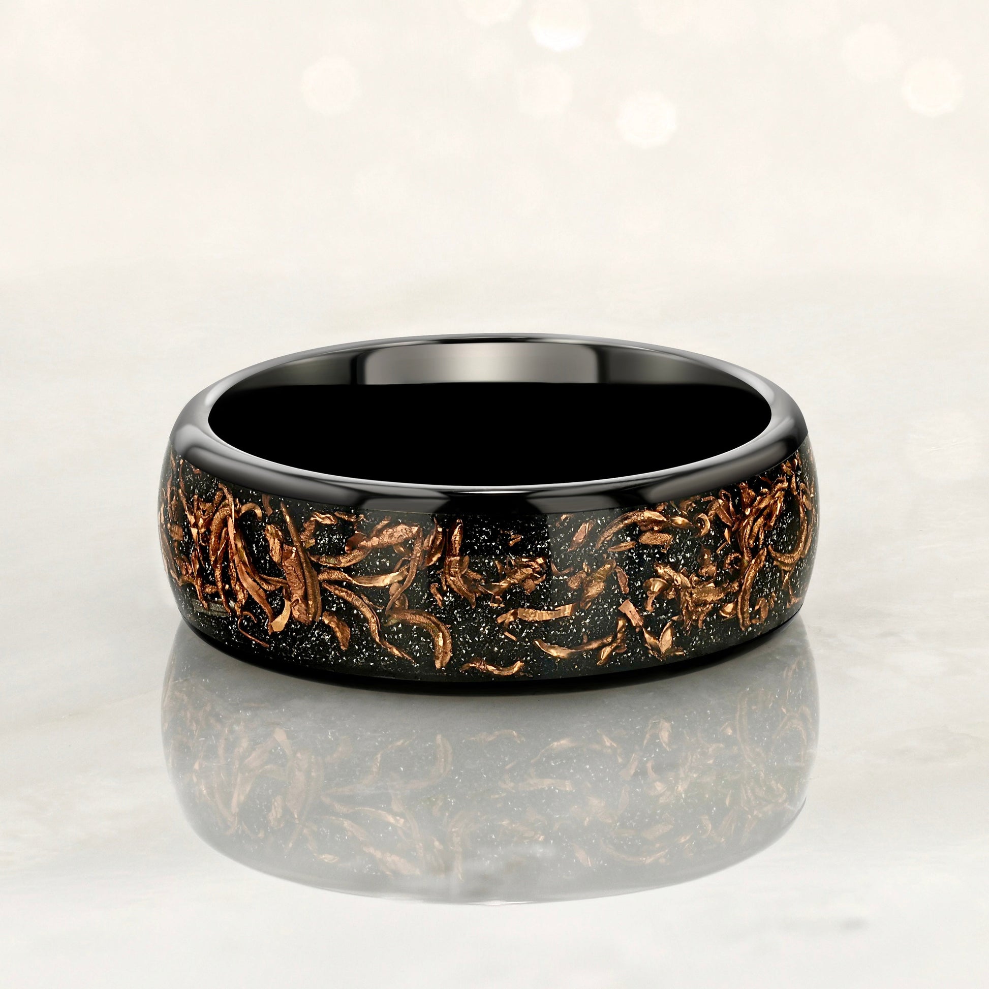 STARDUST Black Tungsten Ring- 8mm Meteorite & Copper flakes