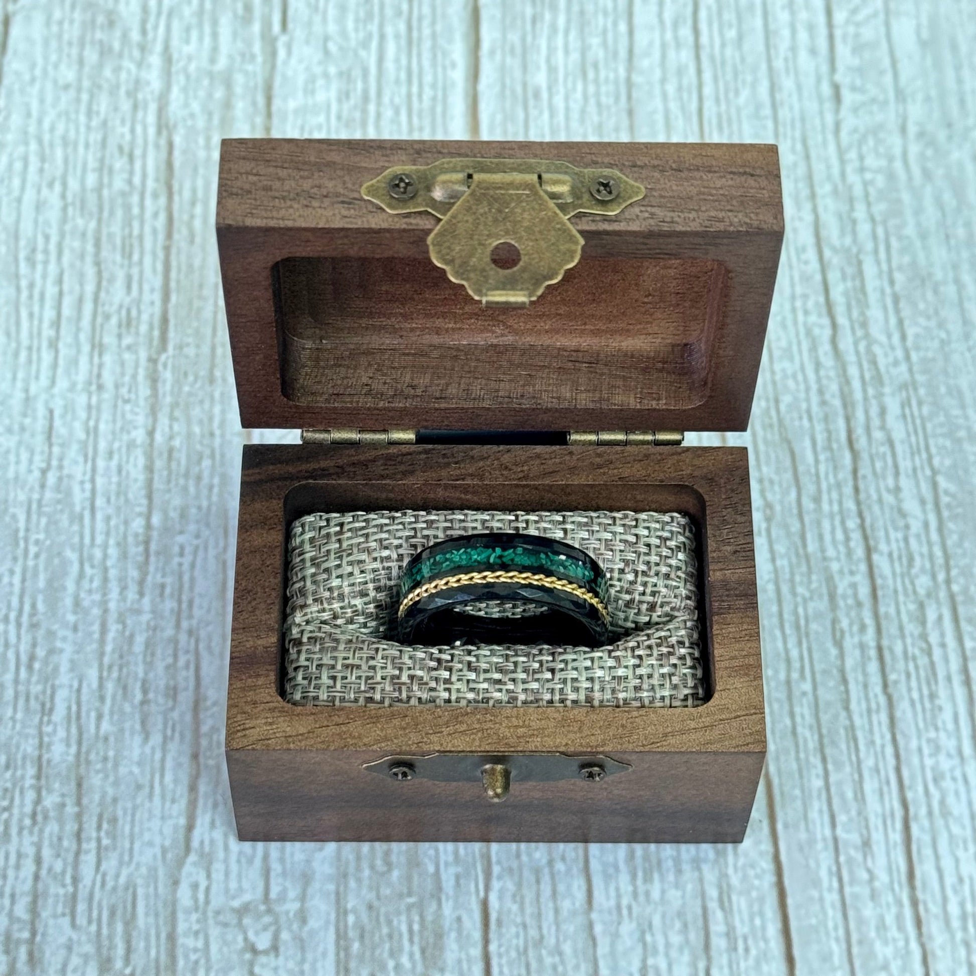 Sale"LOKI" Tungsten Carbide Gold Ring 8mm w/ Crushed Green Opal