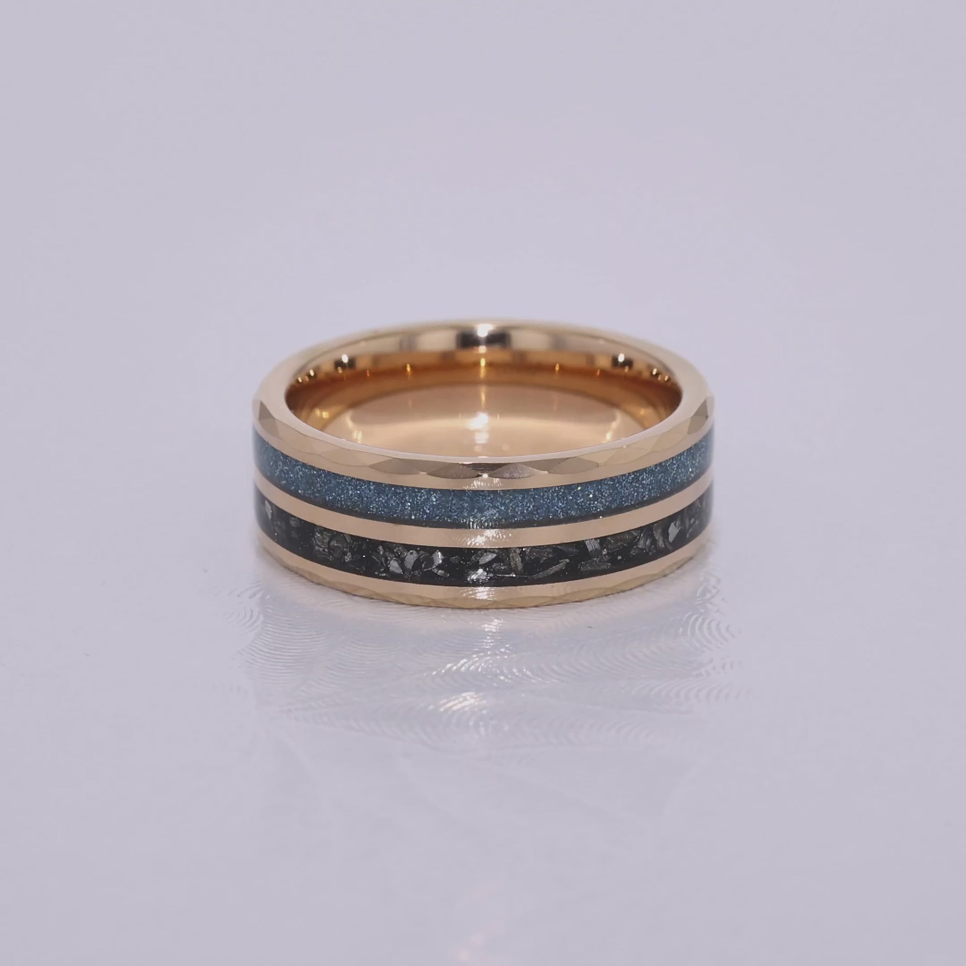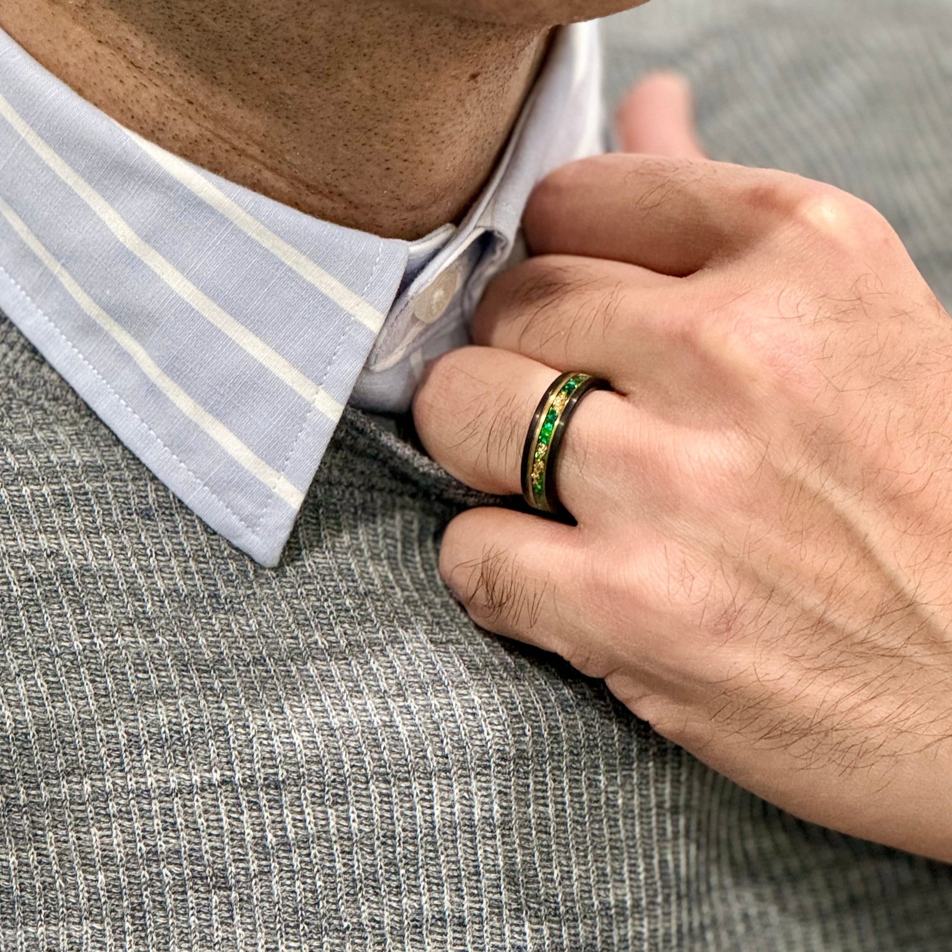 "LOKI" Tungsten Carbide Gold Ring 8mm w/ Crushed Green Opal