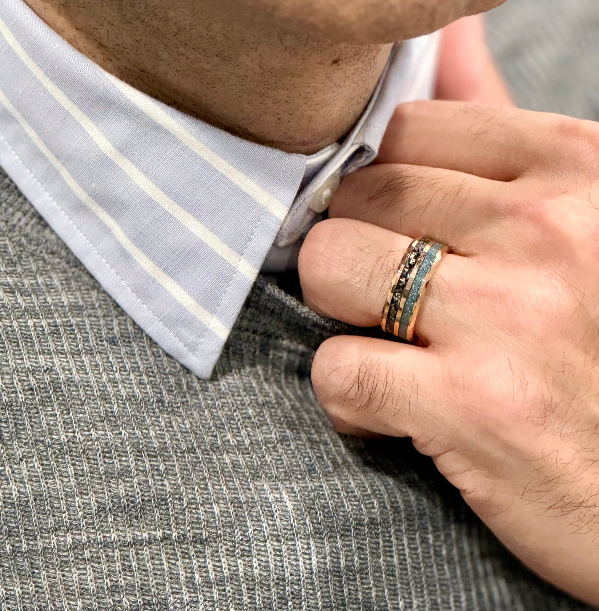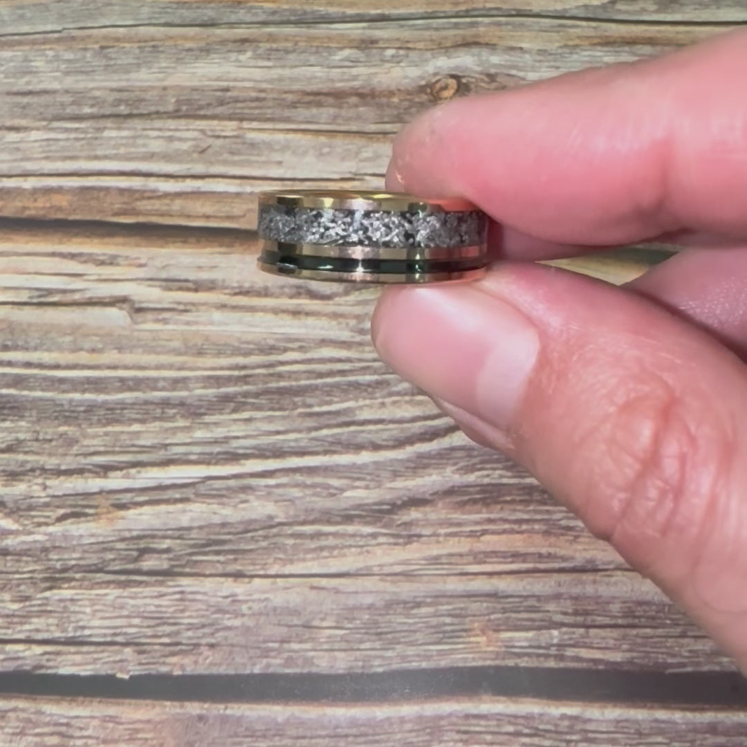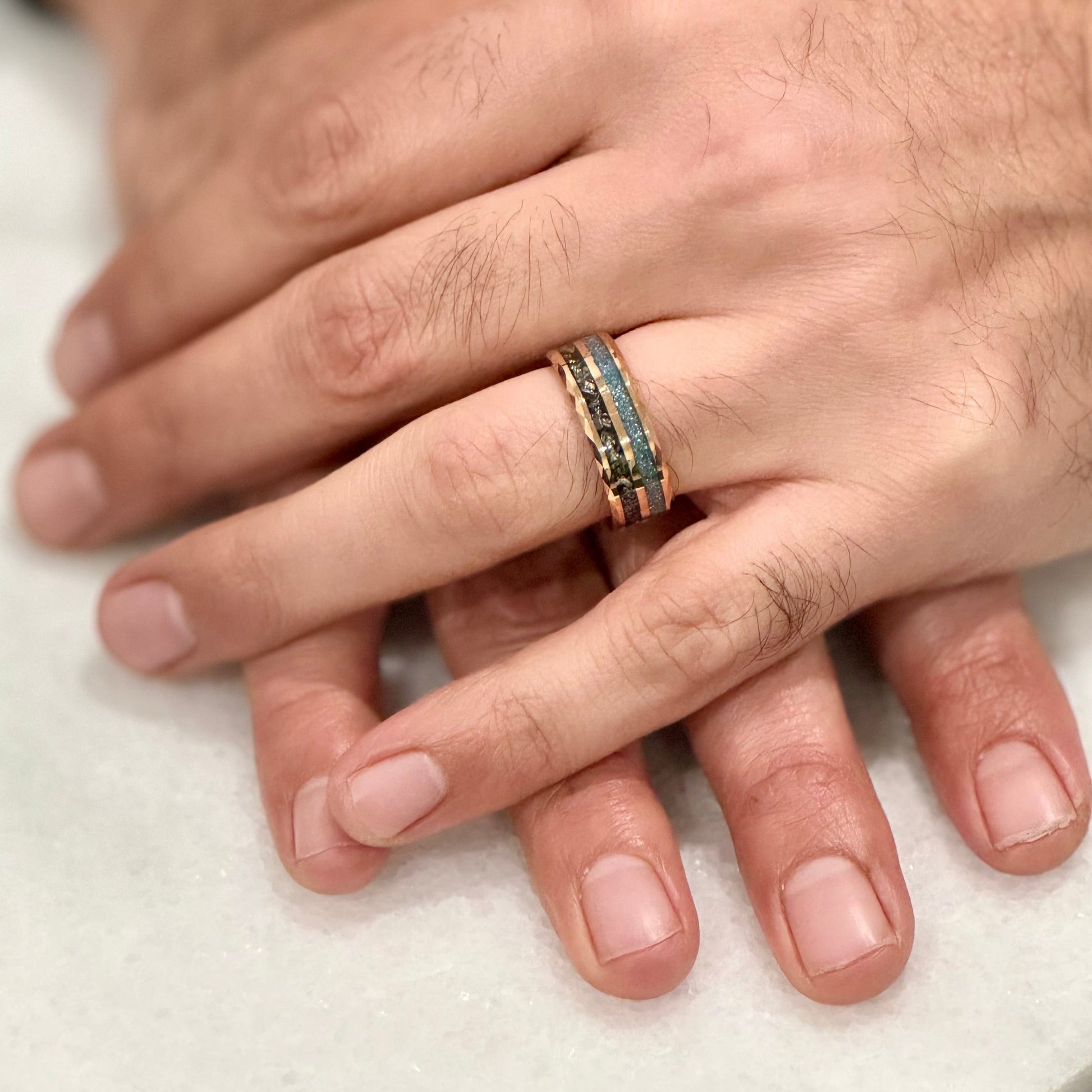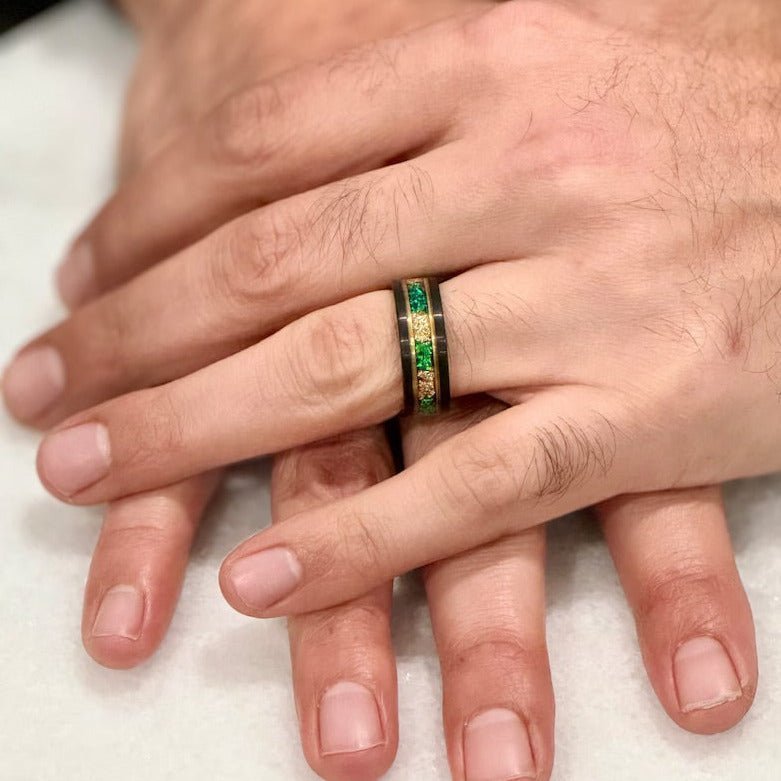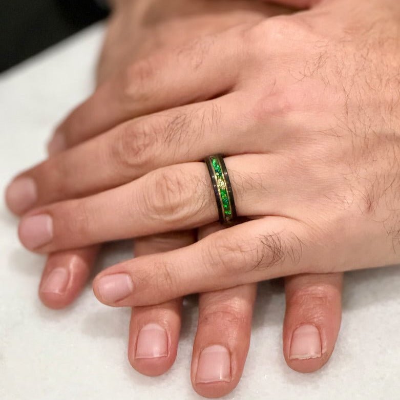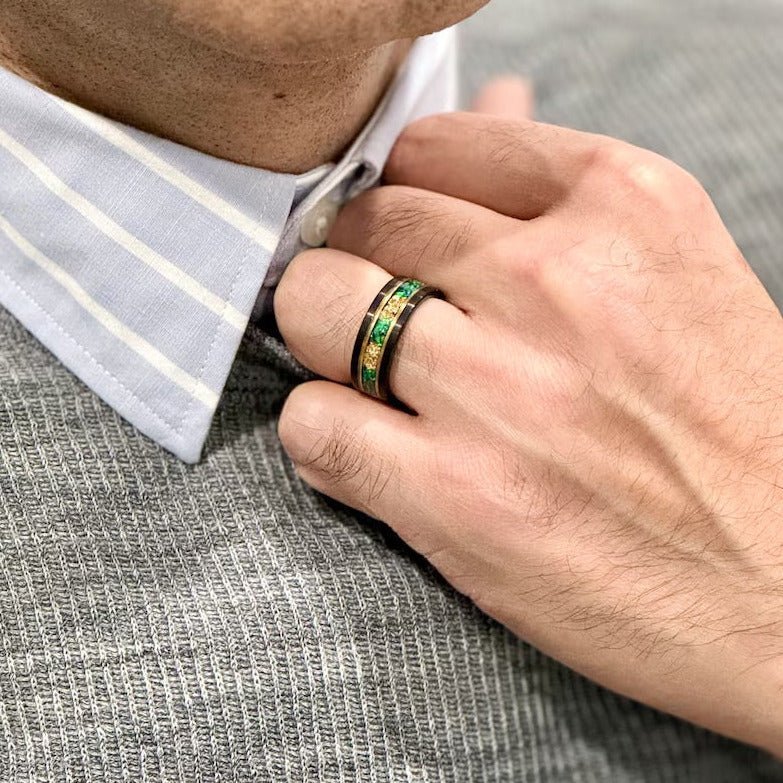 Sale"LOKI" Tungsten Carbide Gold Ring 8mm w/ Crushed Green Opal