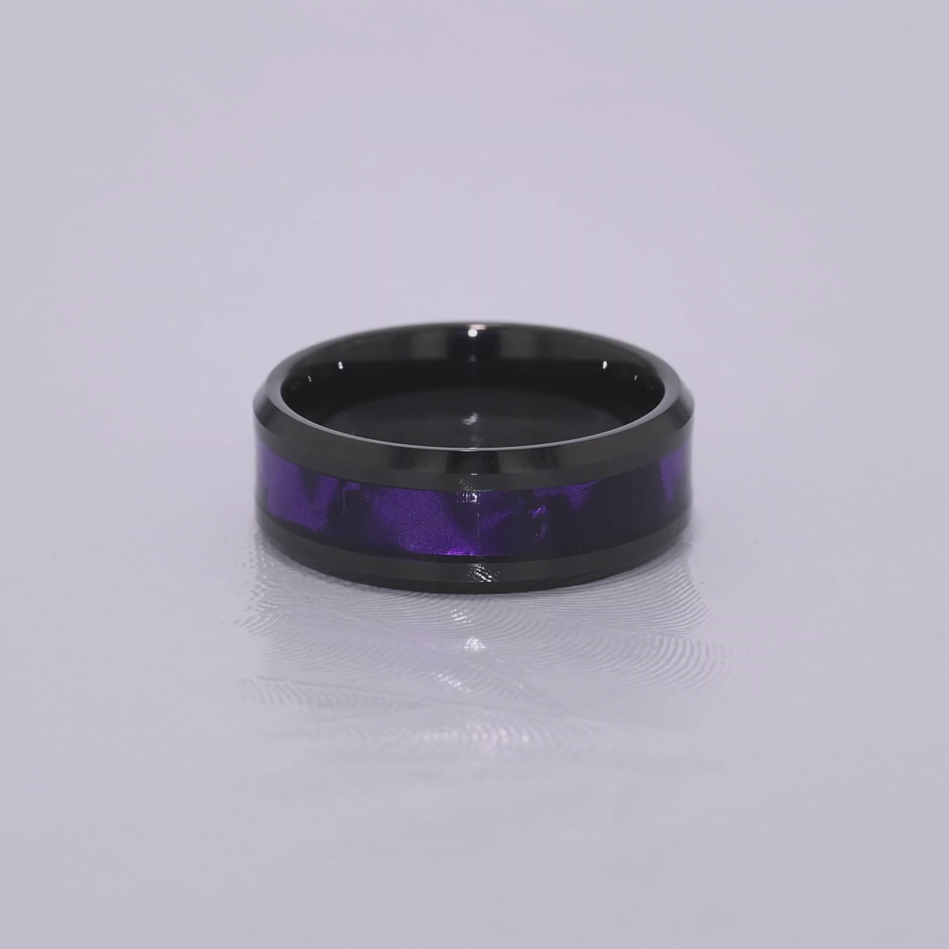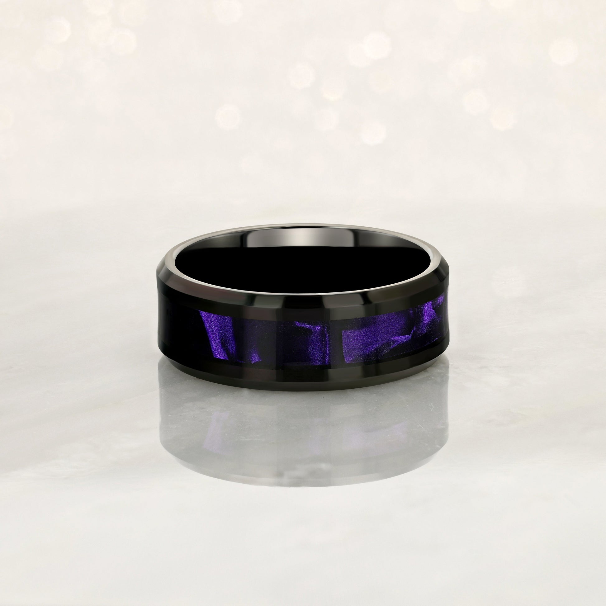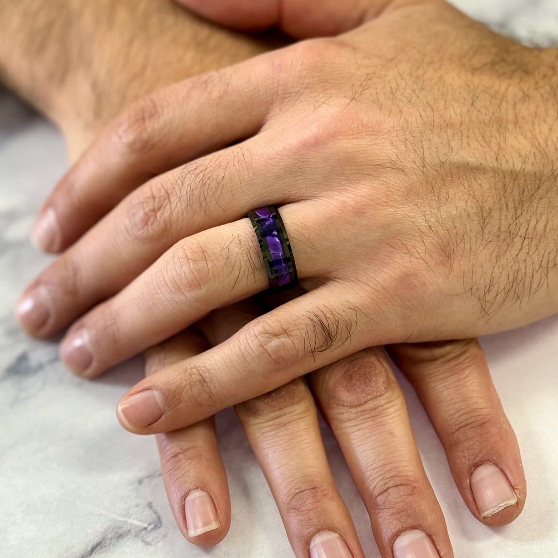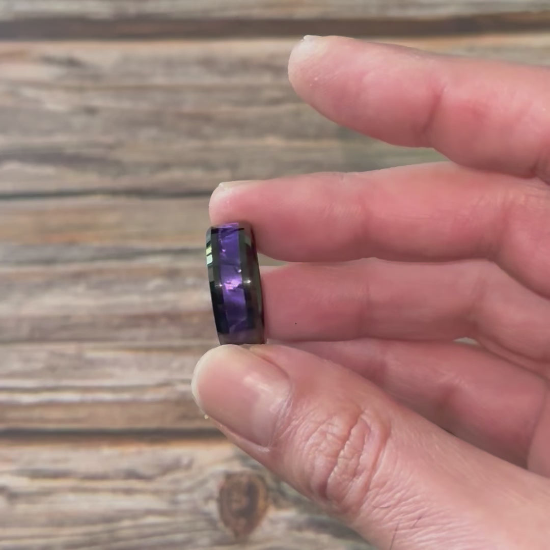 "ENIGMA" Tungsten Carbide Black Ring 8mm w/ Purple Agate