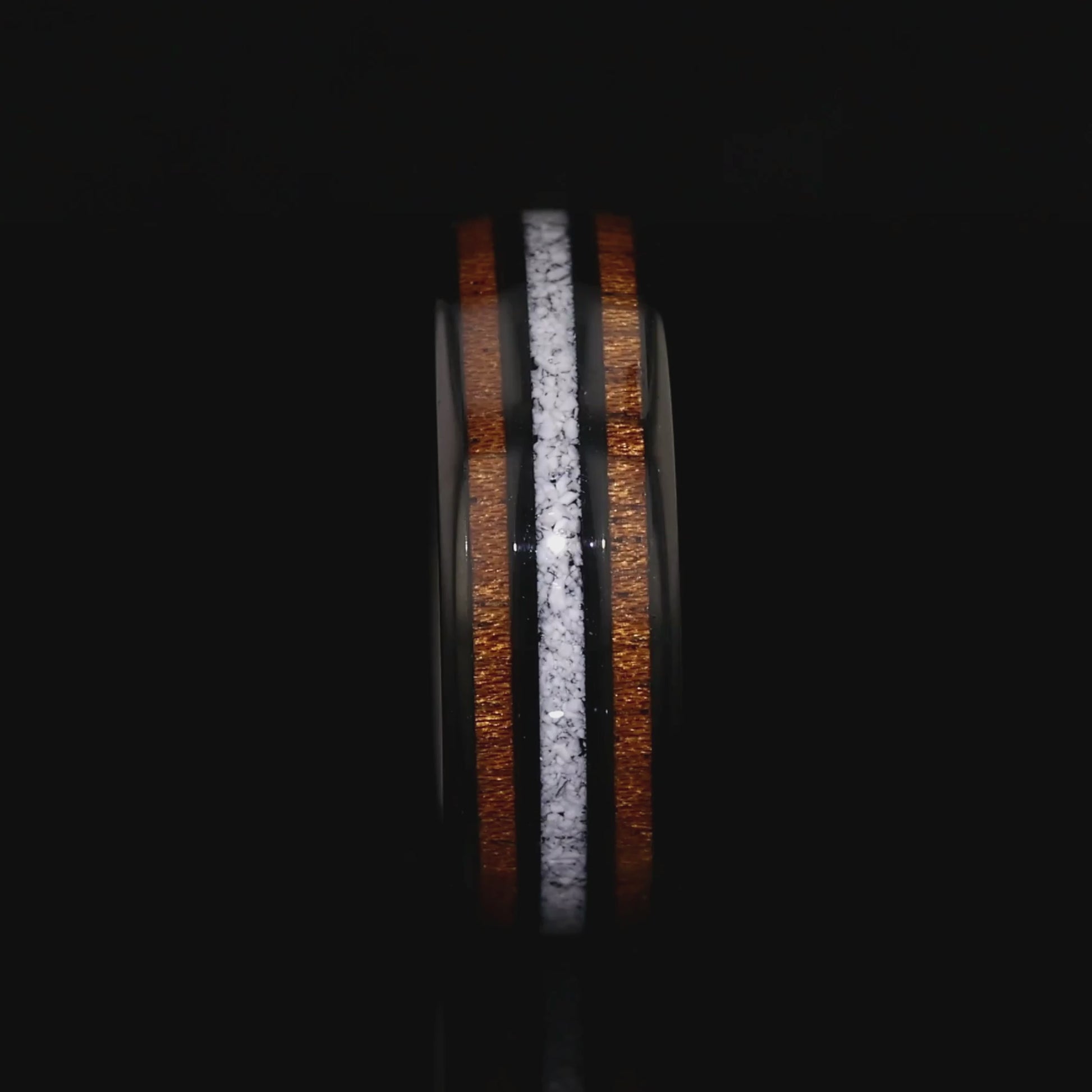 "HALO" Tungsten Carbide Black Ring 8mm w/ White Turquoise and Koa Wood