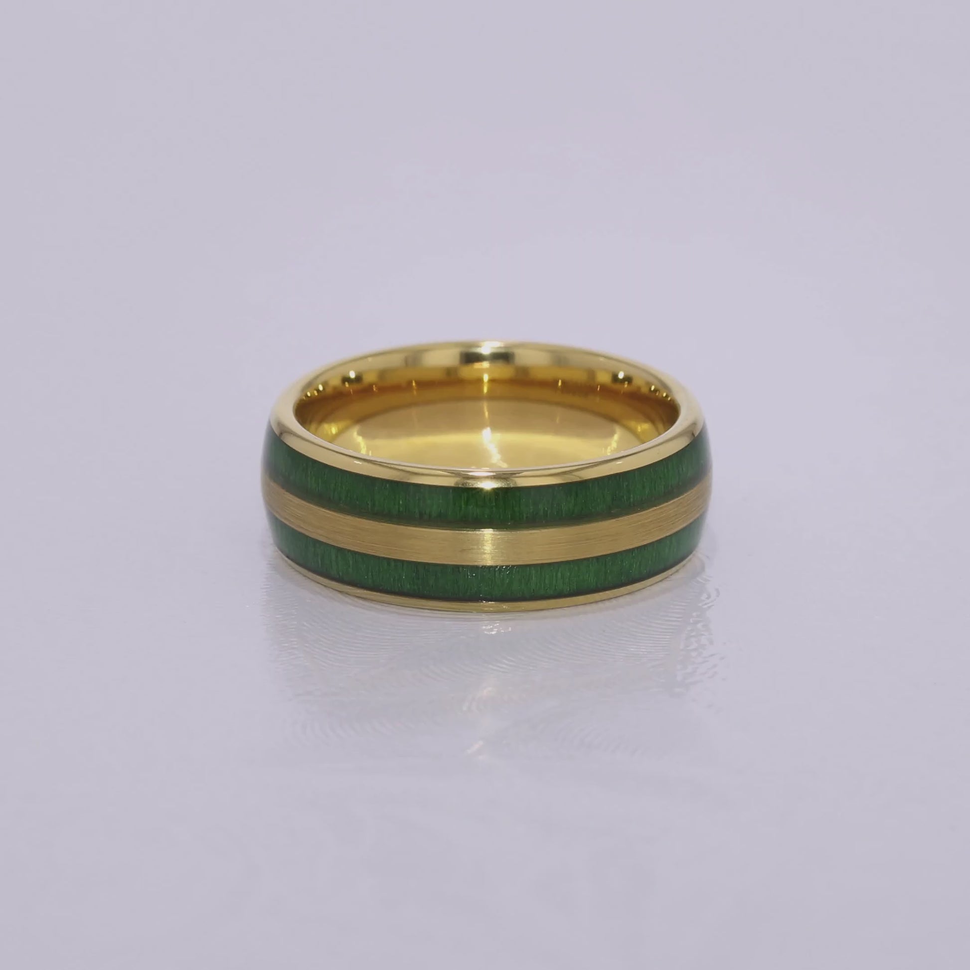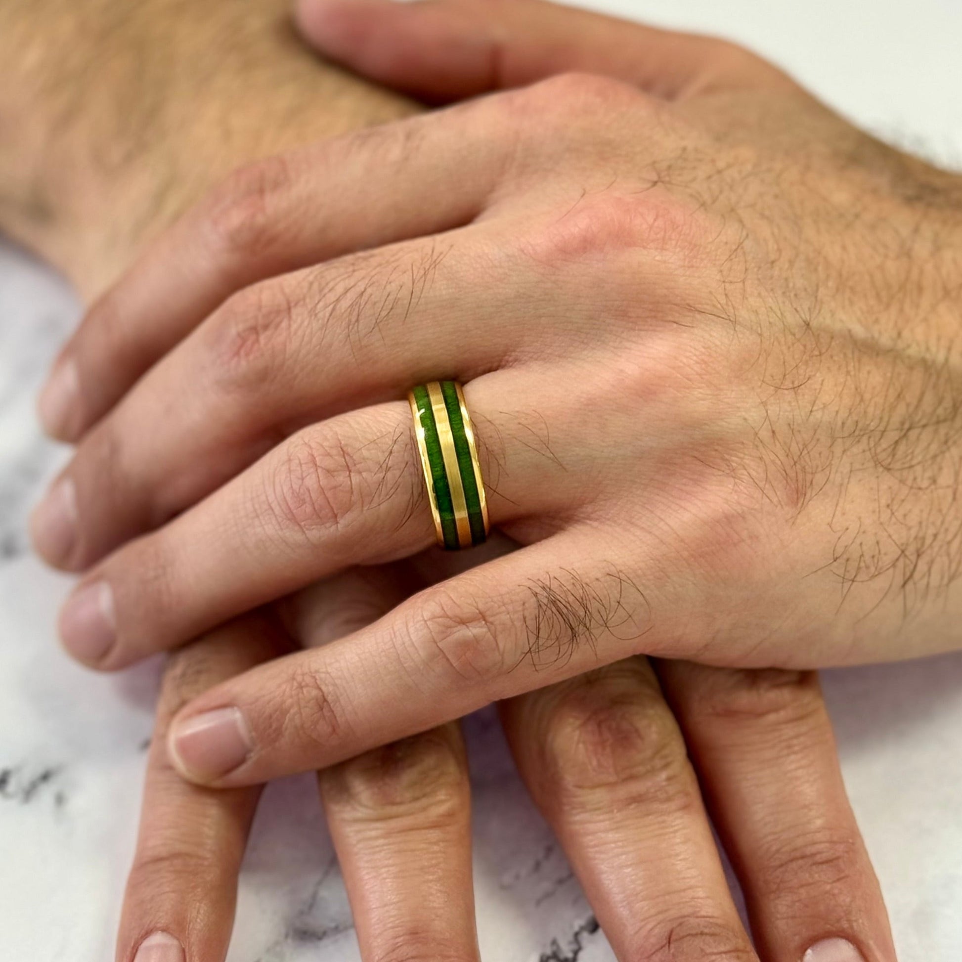 "TIMBER" Tungsten Carbide Yellow Gold Ring 8mm w/ Green Dyed Koa Wood