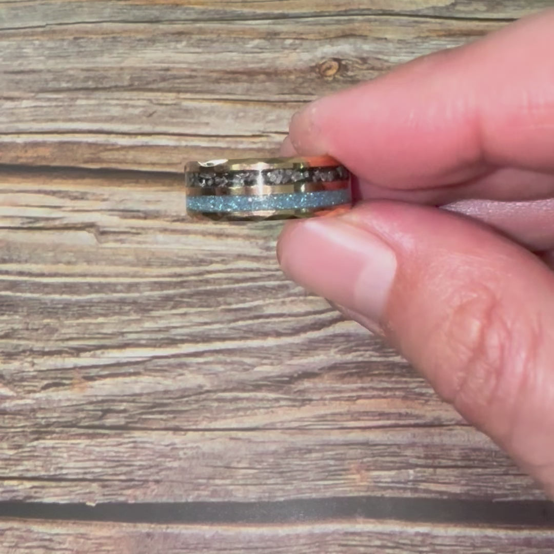 “EMPEROR” Tungsten Carbide Black Ring 8mm w/ Crushed Rubies and Gold Leaf