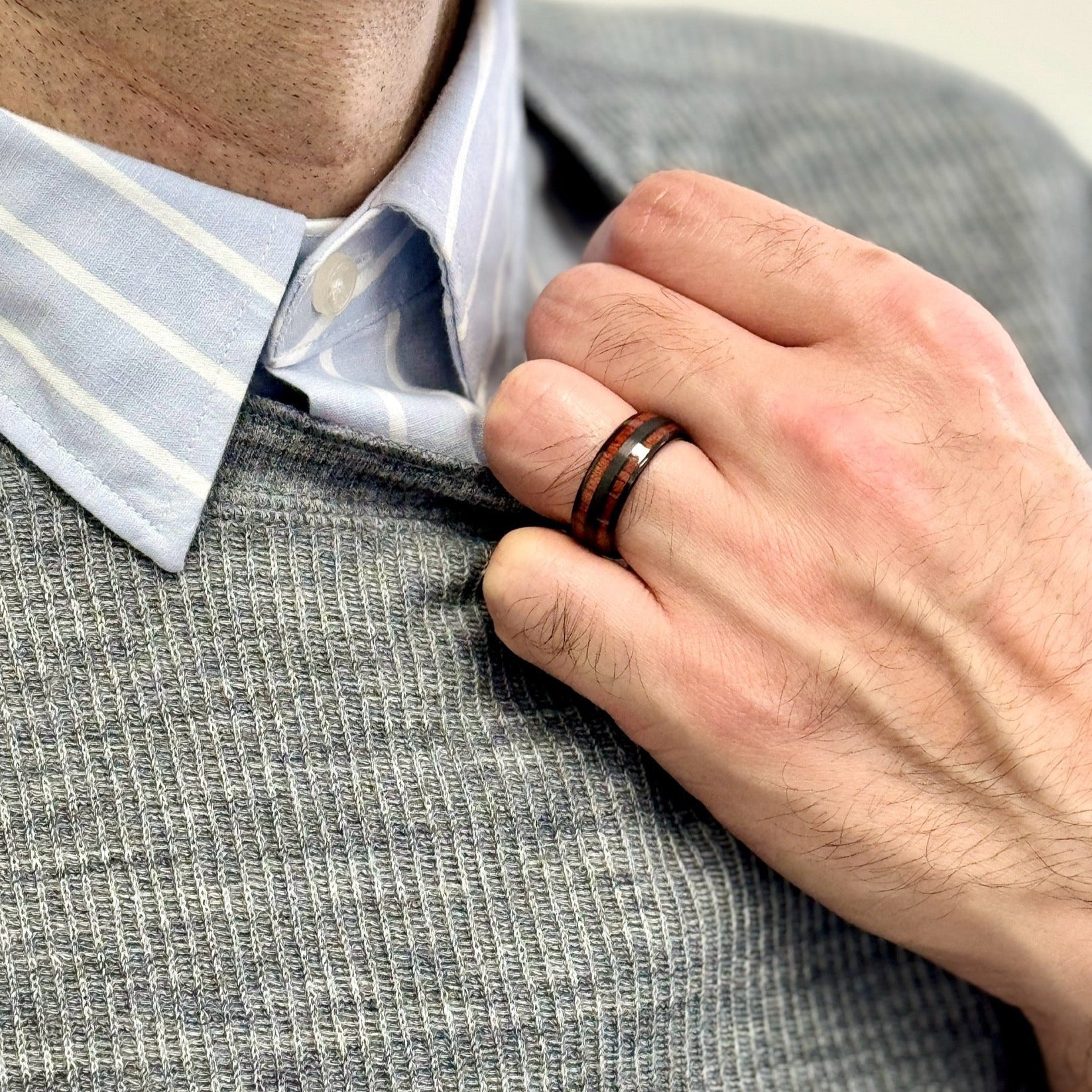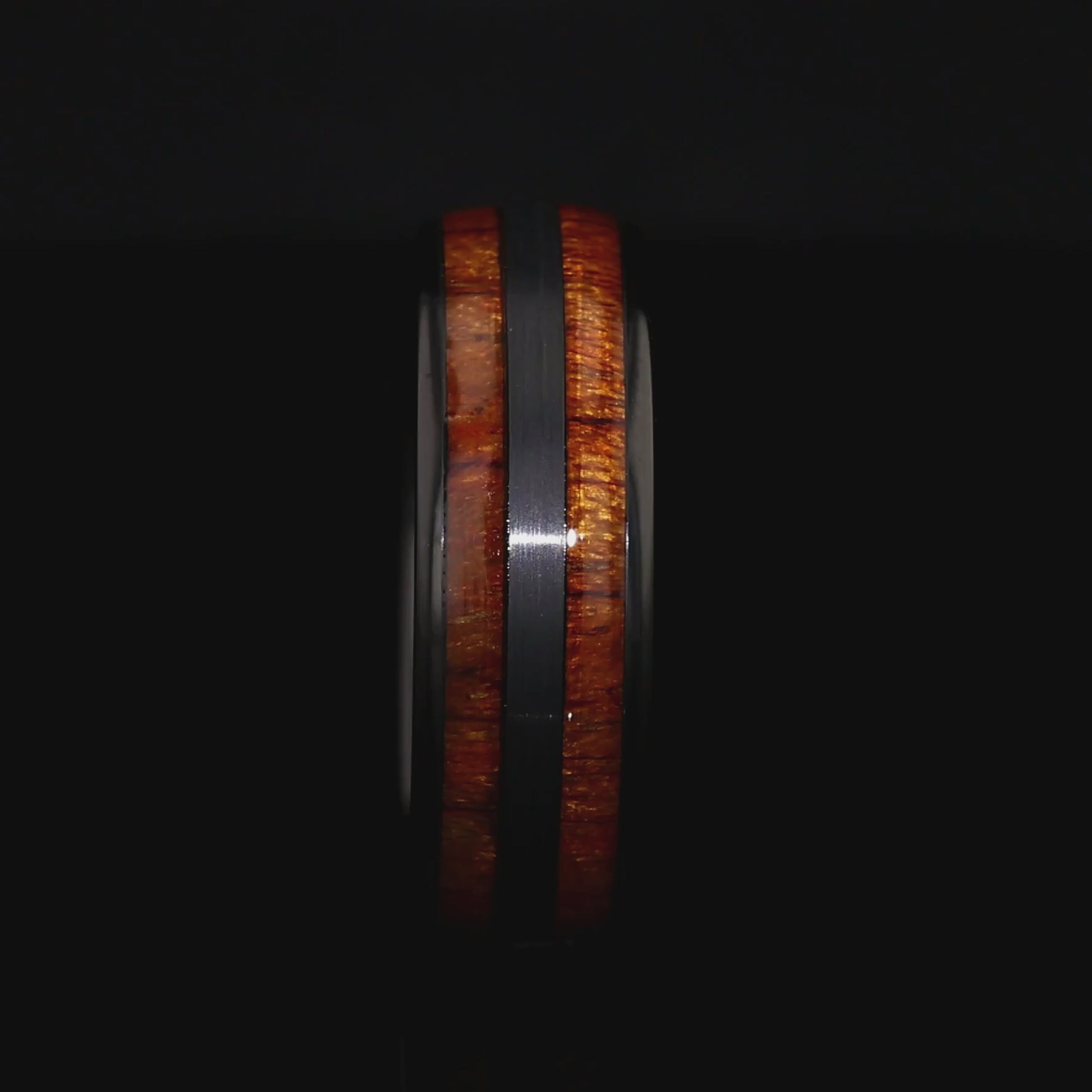Regular price $275.00 Sale price $206.25"TIMBER" Tungsten Carbide Black Ring 8mm w/ Red Dyed Koa Wood