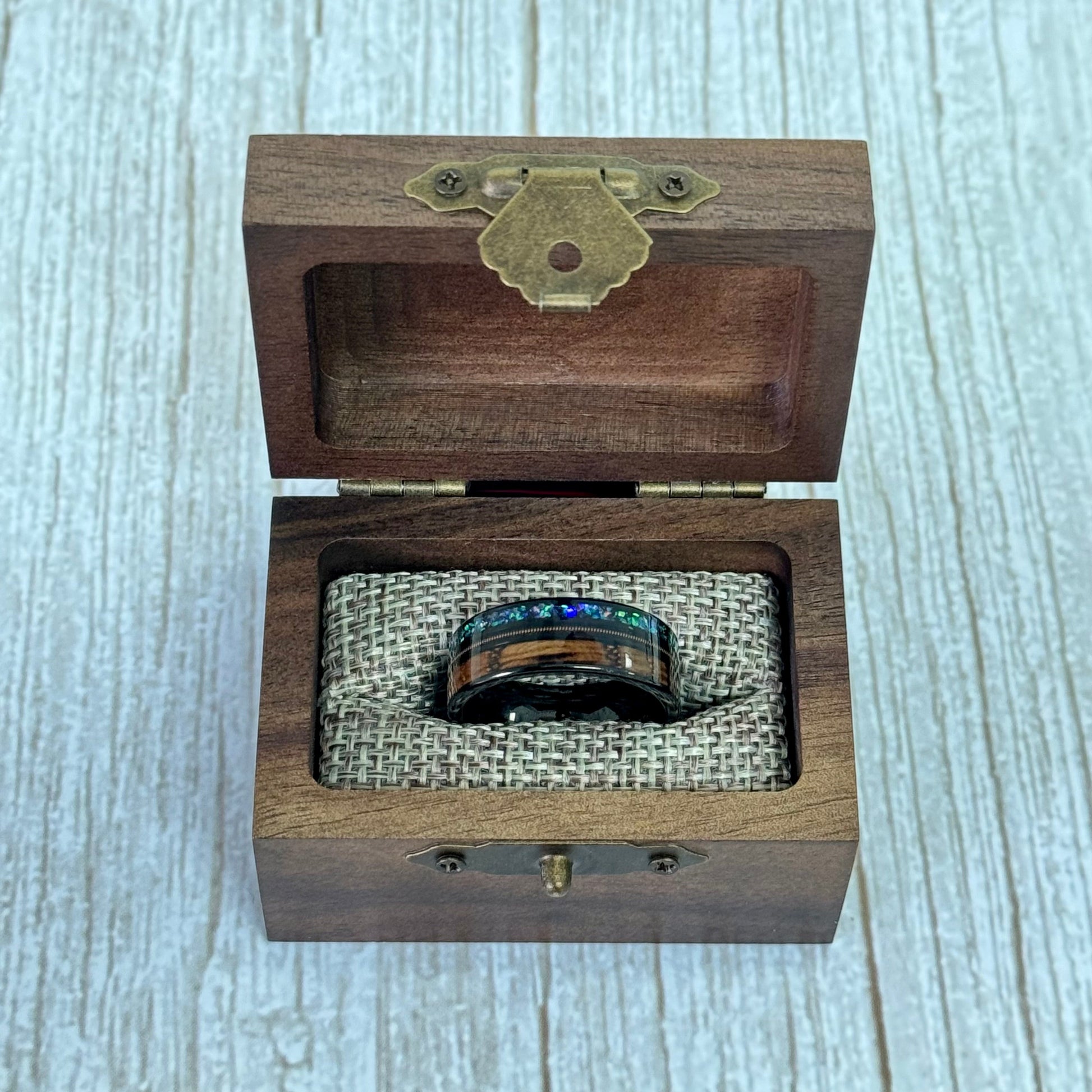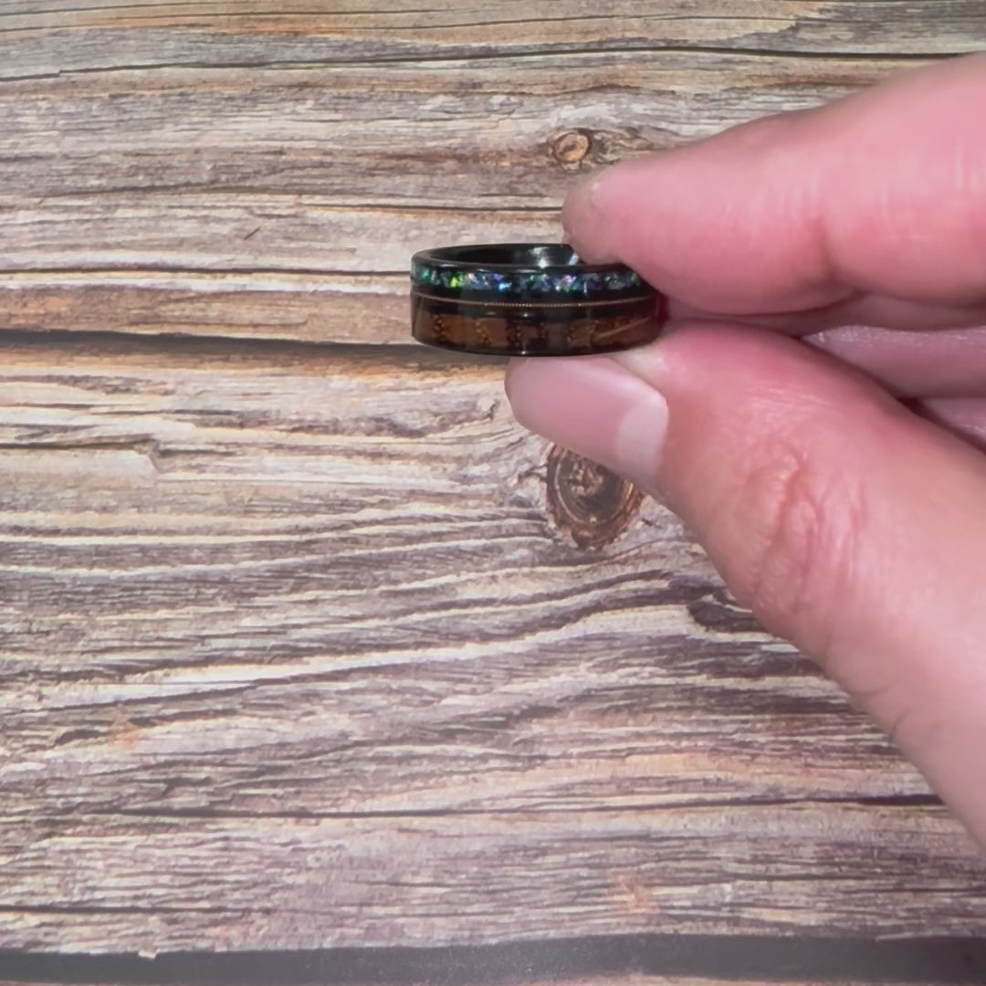 Sale"SYNTHESIS" Tungsten Carbide Black Ring 8mm w/ Whiskey Barrel, Opal and Guitar String