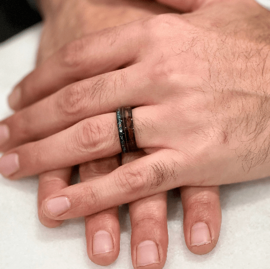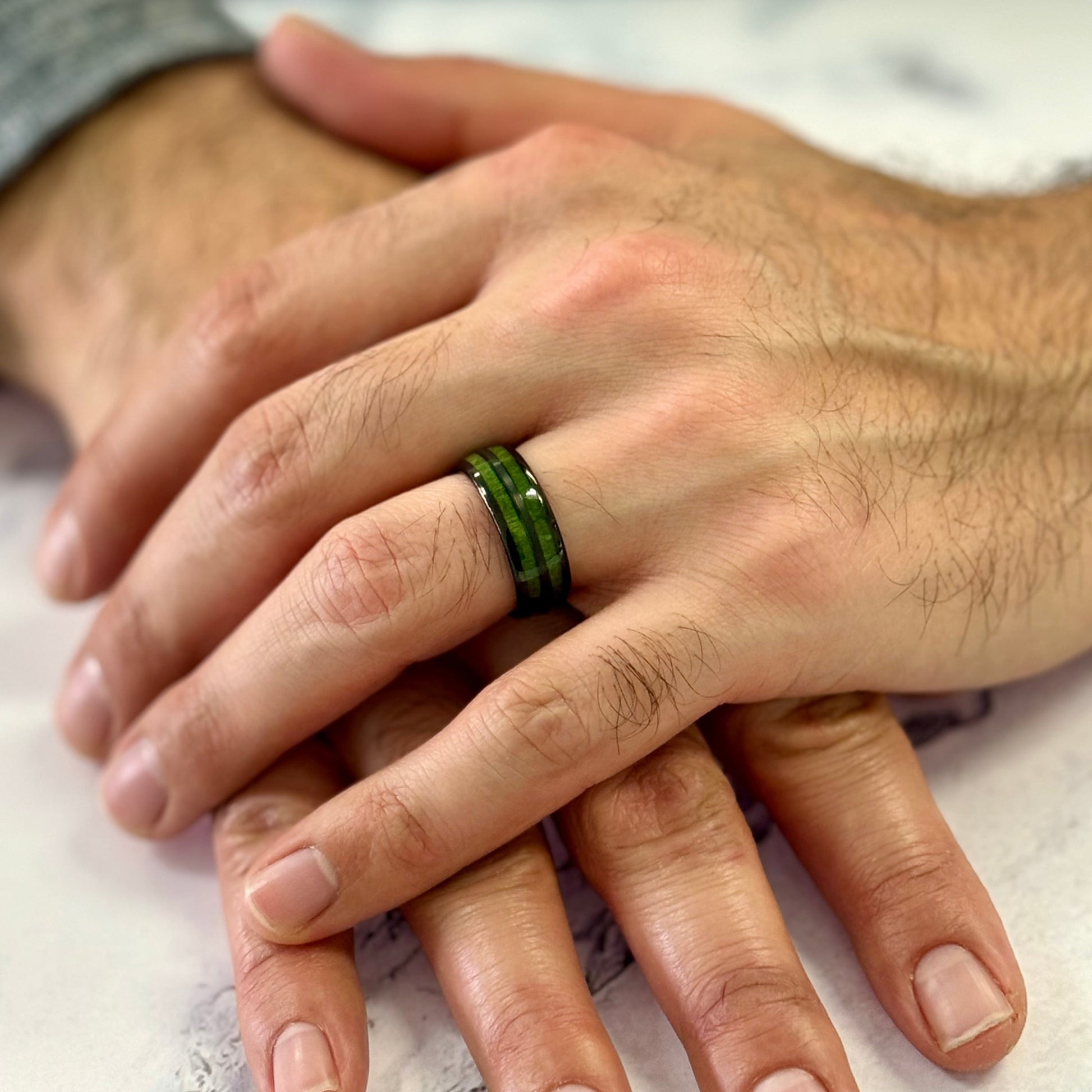 "TIMBER" Tungsten Carbide Black Ring 8mm w/ Green Dyed Koa Wood