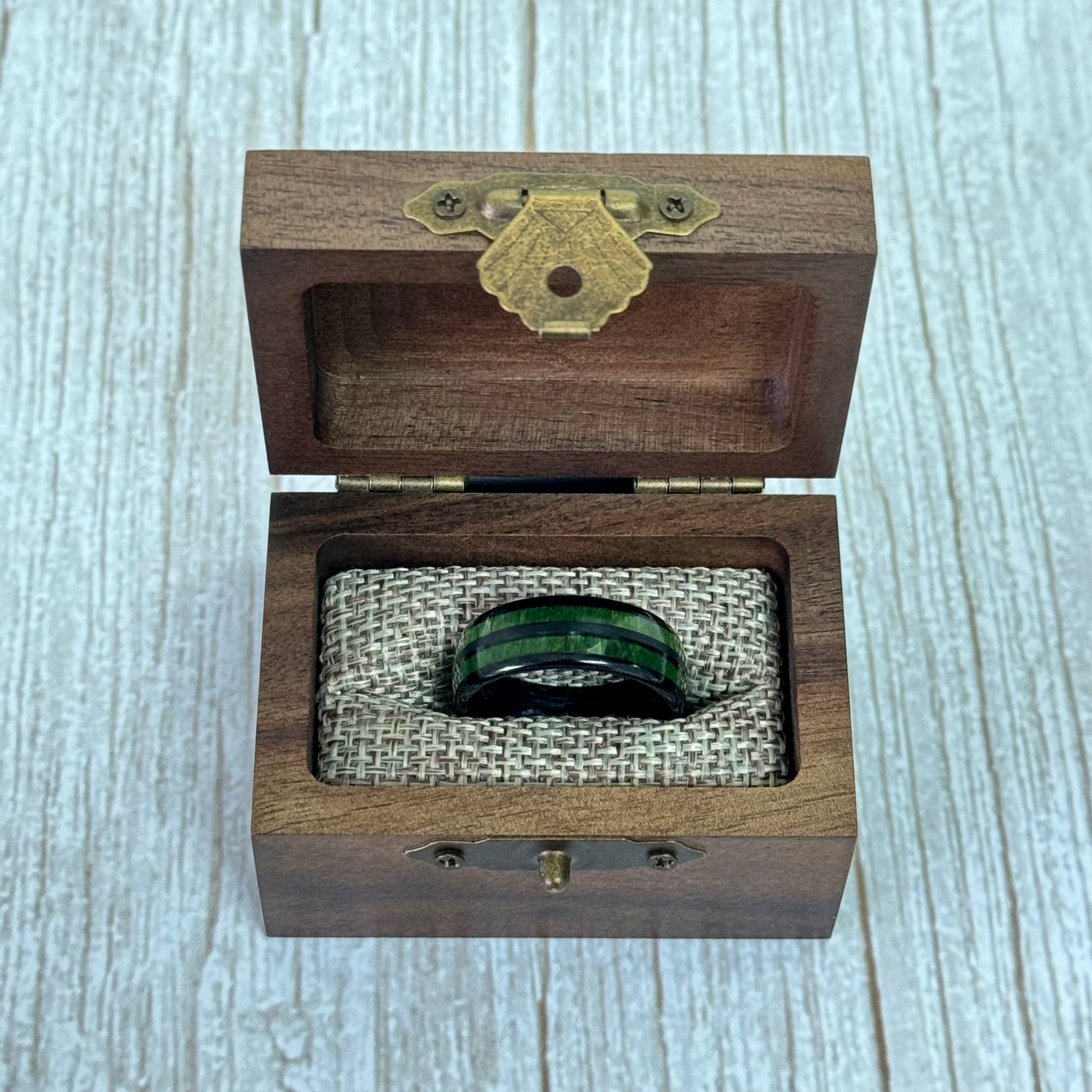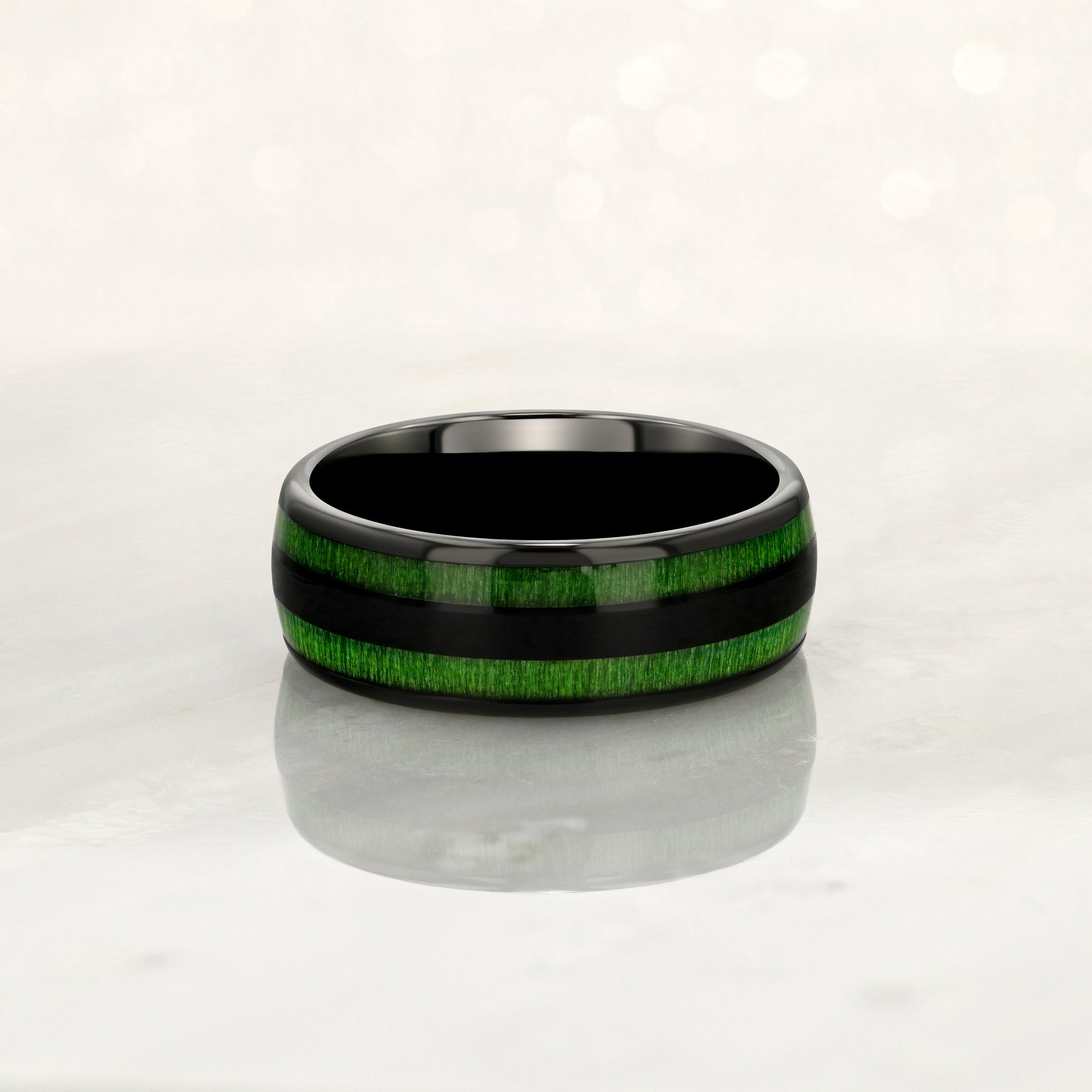 Sale"TIMBER" Tungsten Carbide Black Ring 8mm w/ Green Dyed Koa Wood