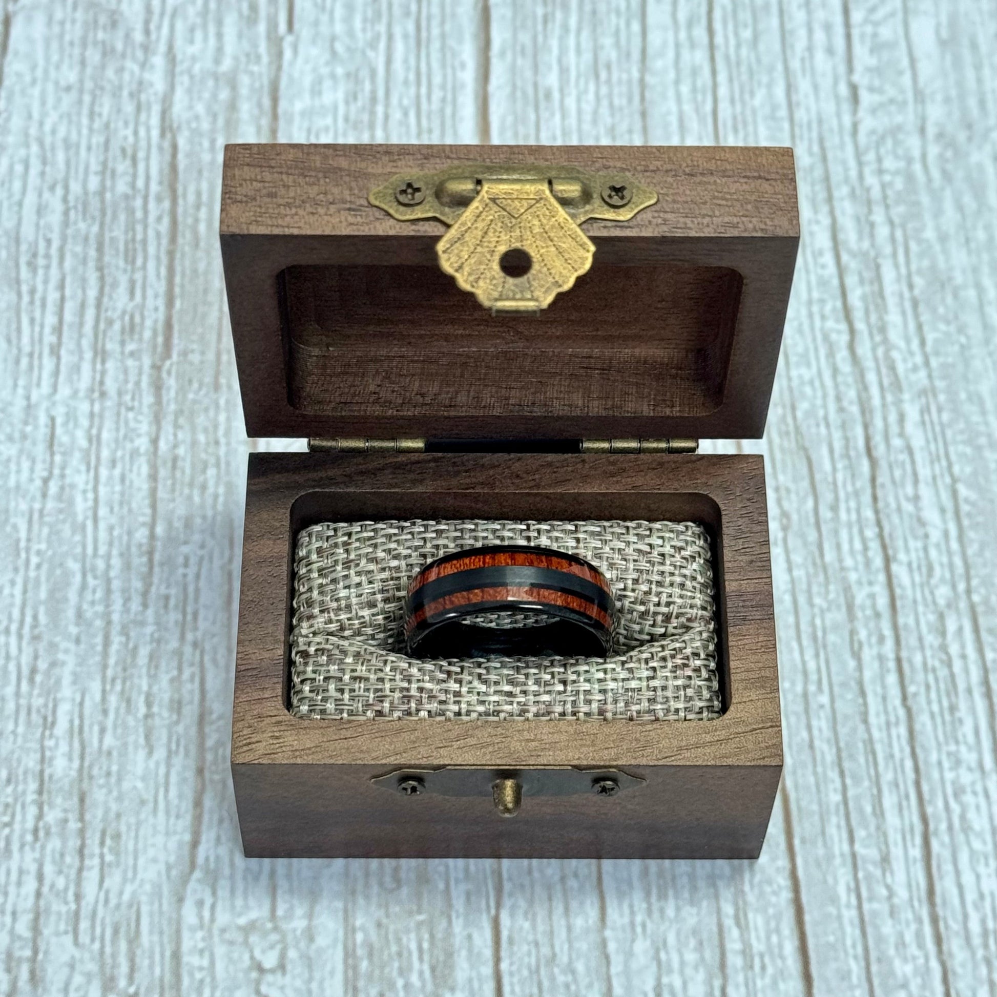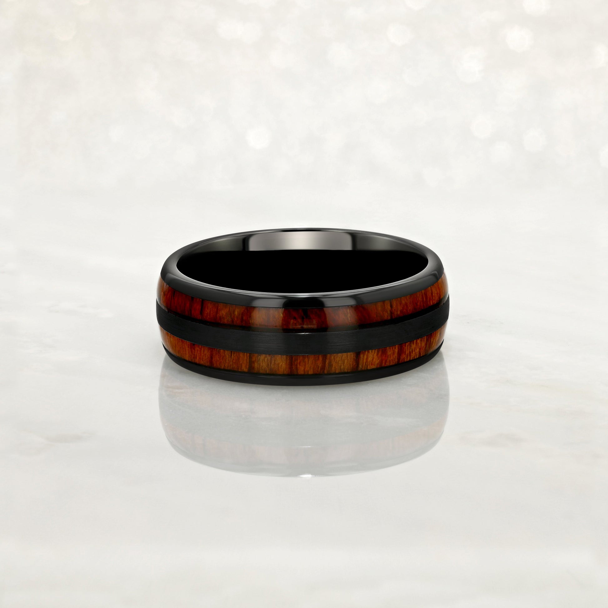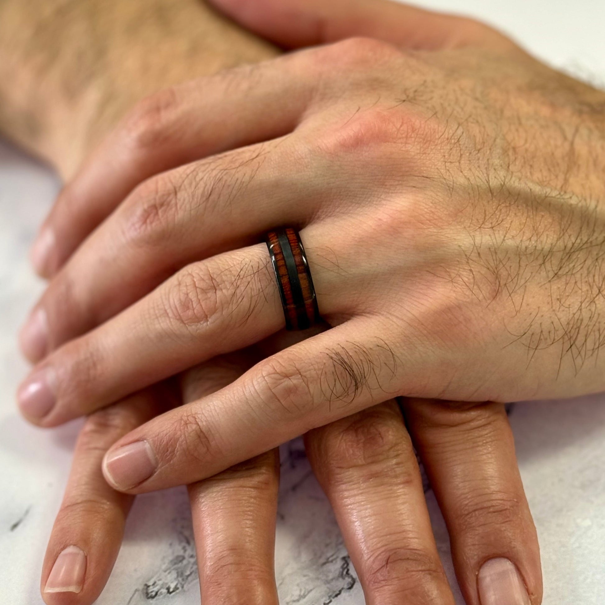 Sale"TIMBER" Tungsten Carbide Black Ring 8mm w/ Red Dyed Koa Wood