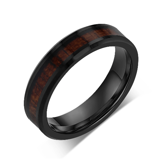 "ELEMENTAL"Tungsten Carbide Black Ring 6mm w/ Koa Wood