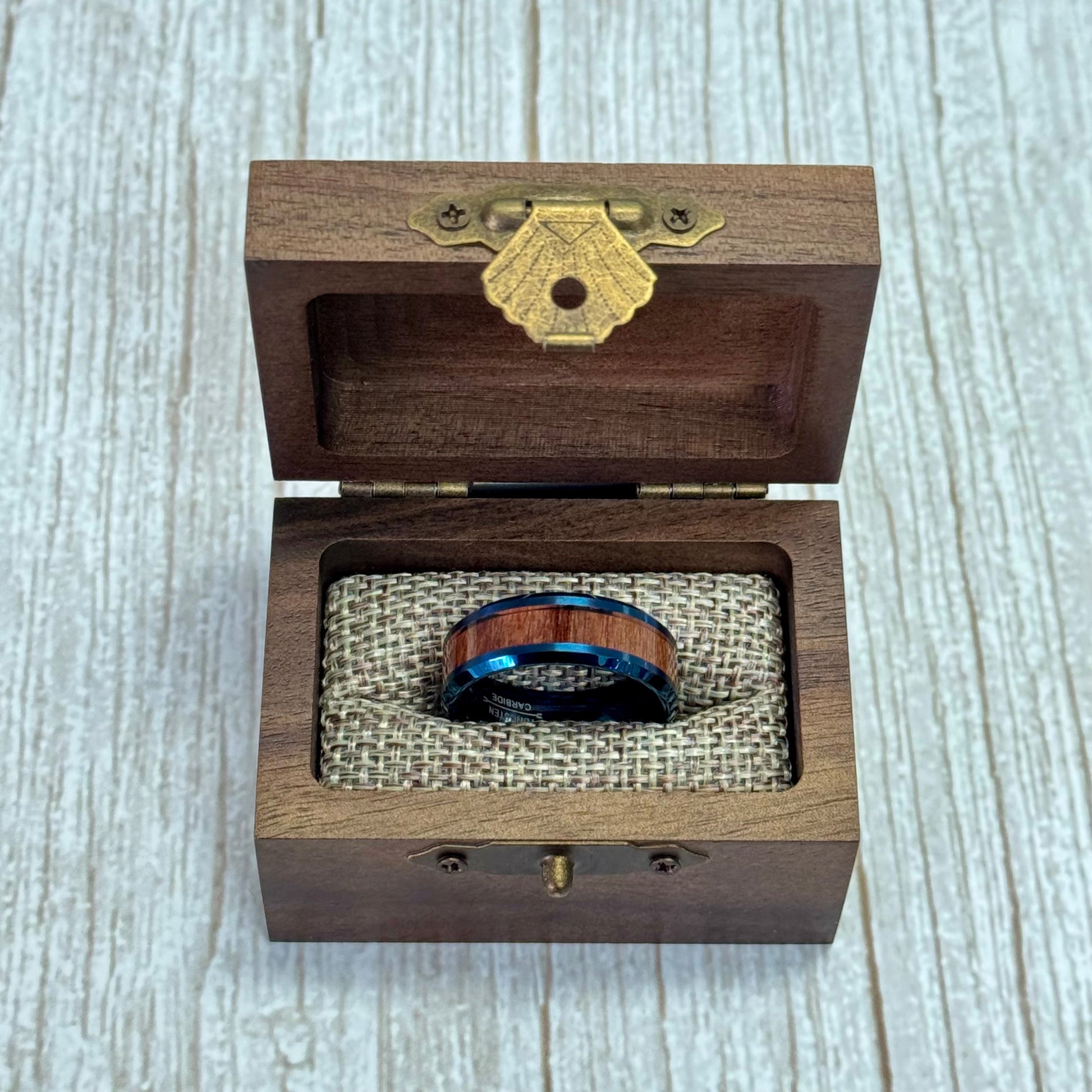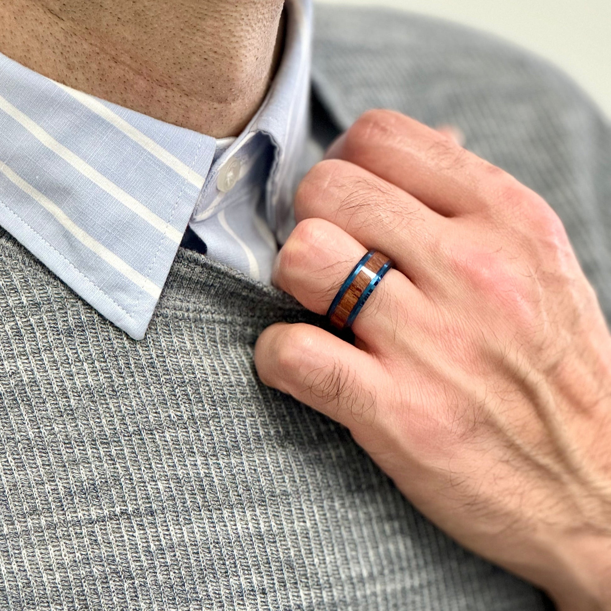 Sale"ELEMENTAL"Tungsten Carbide Blue Ring 8mm w/ Koa Wood