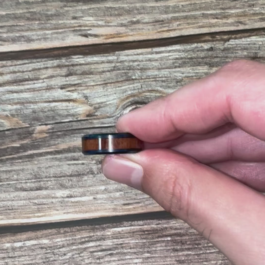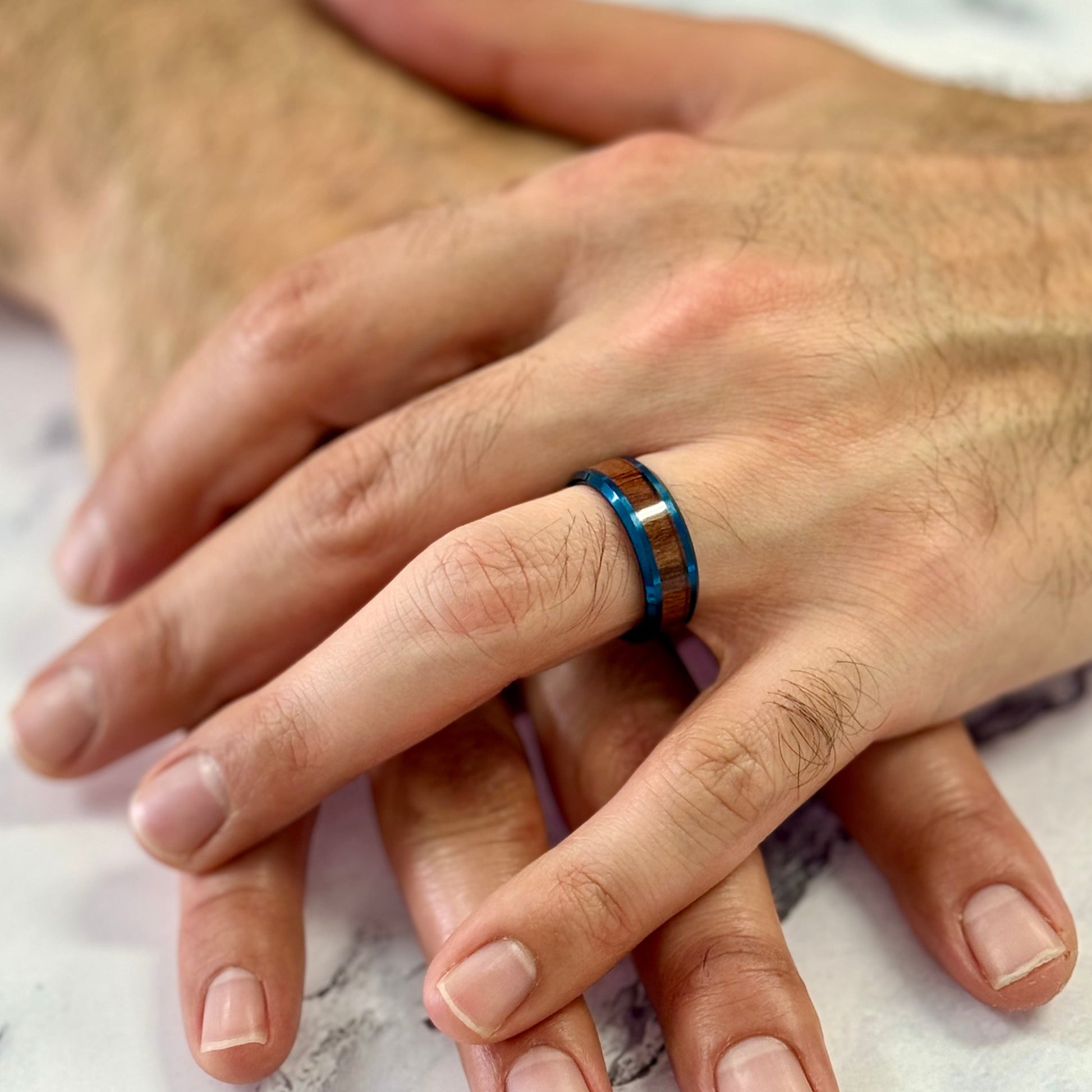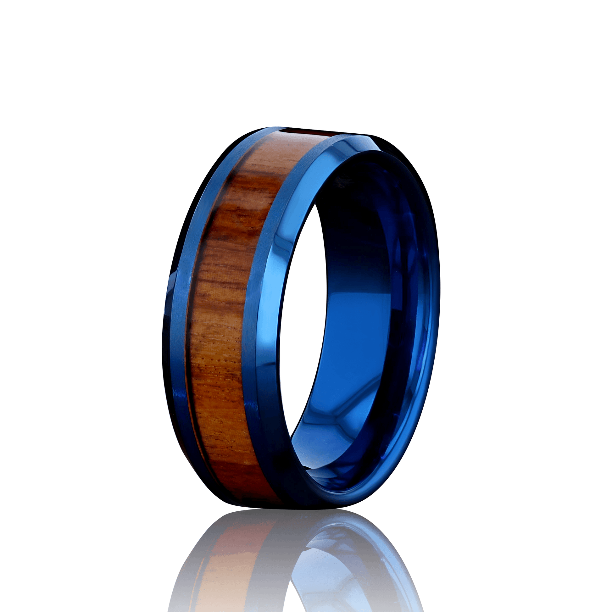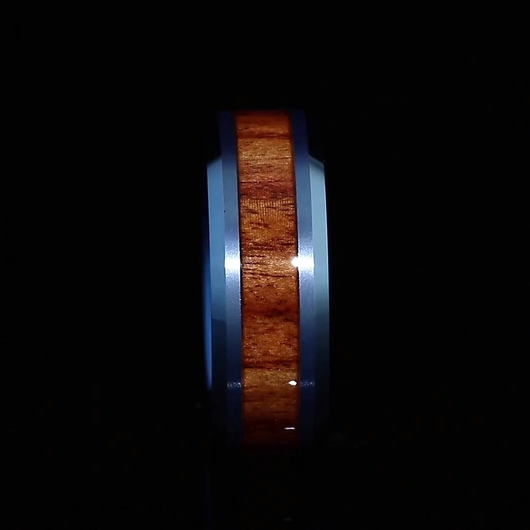 "ELEMENTAL"Tungsten Carbide Blue Ring 8mm w/ Koa Wood