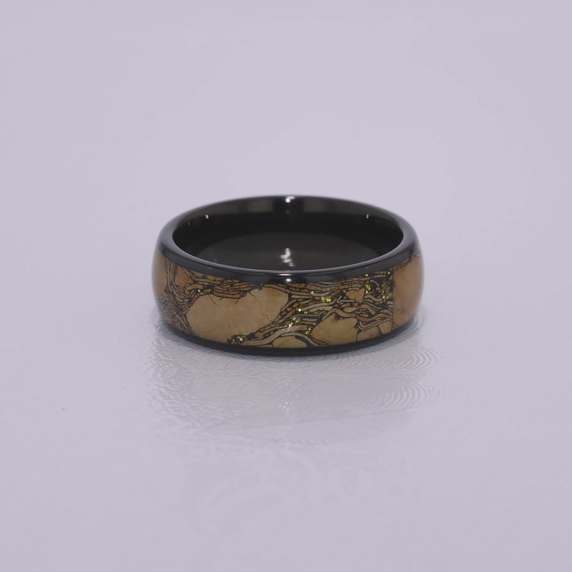 "ELEMENTAL"Tungsten Carbide Black Ring 8mm w/ Koa Wood