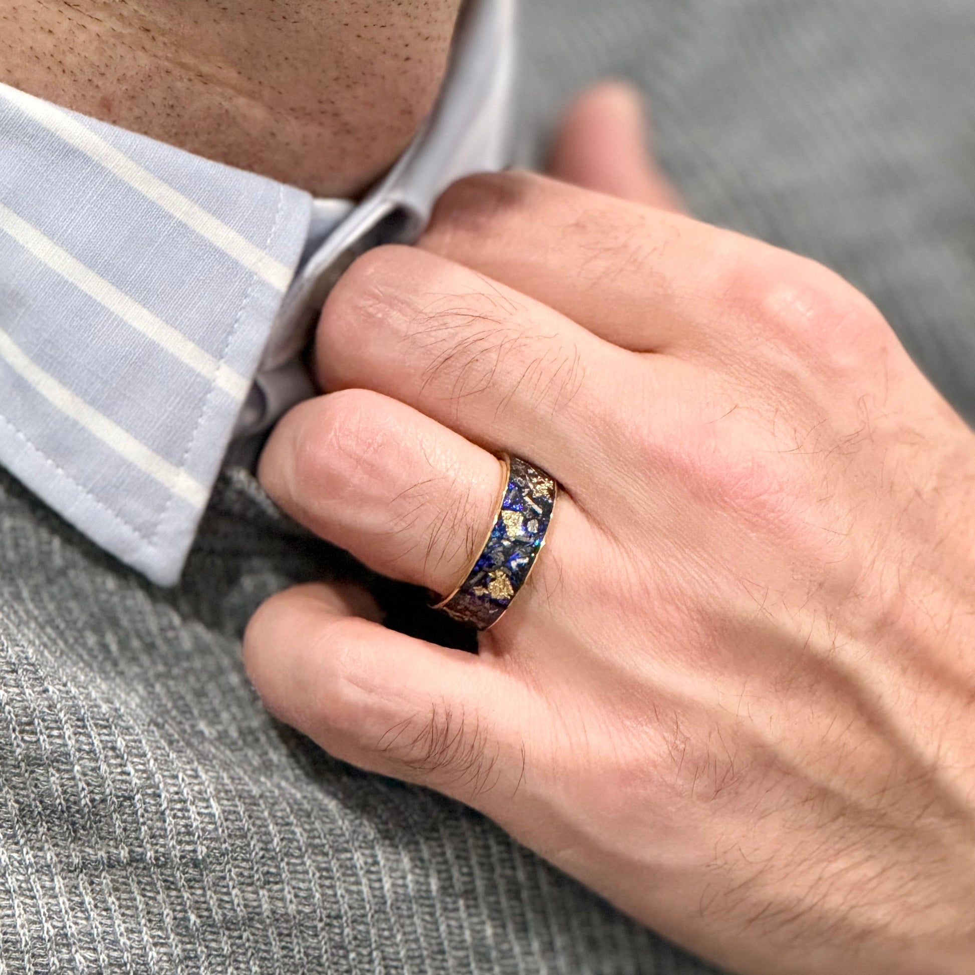 “PICASSO”Tungsten Carbide Gold Ring 8mm w/ Meteorite, Sandstone and Gold Leaf