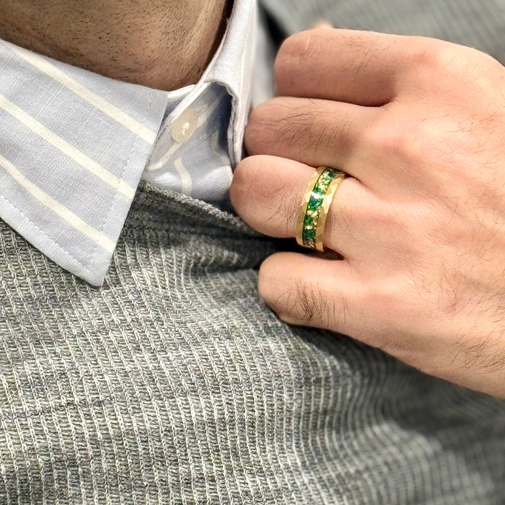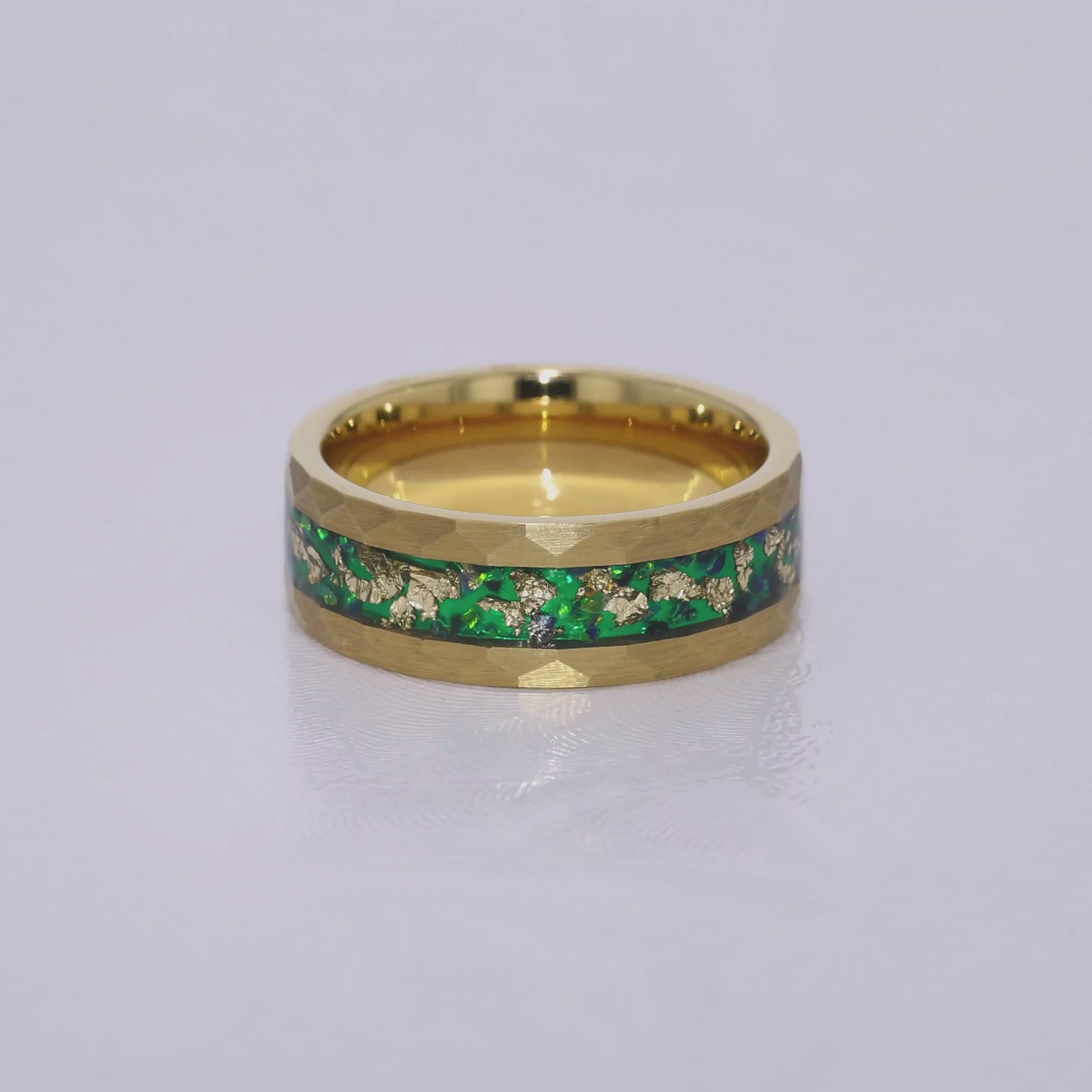 "LOKI" Tungsten Carbide Gold Ring 8mm w/ Crushed Green Opal