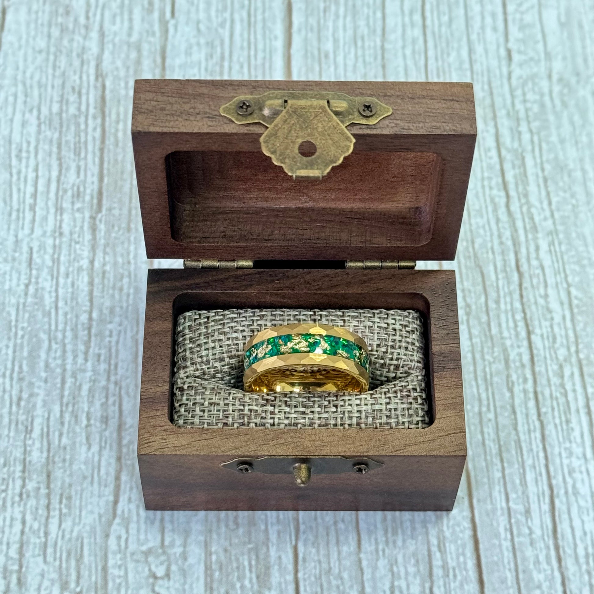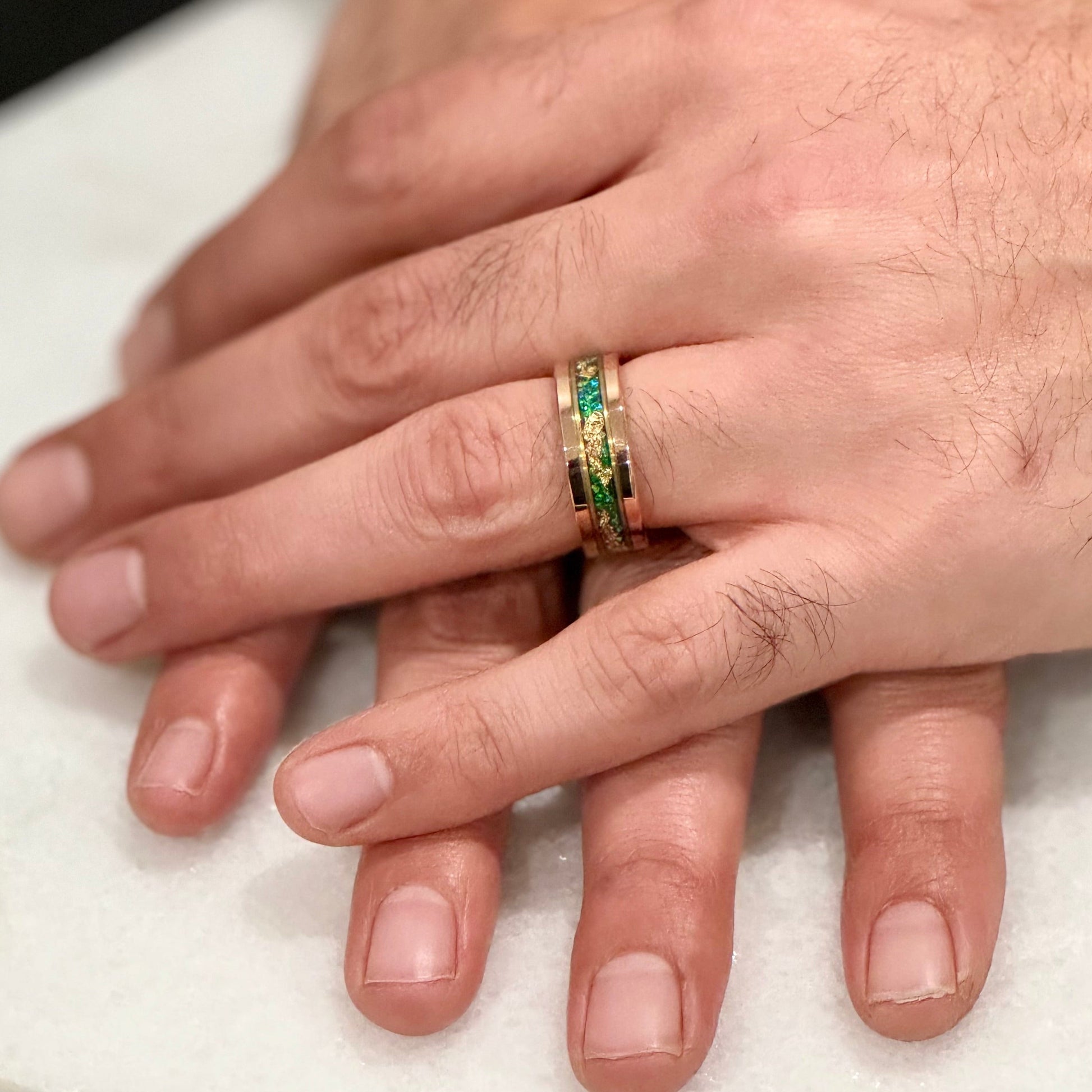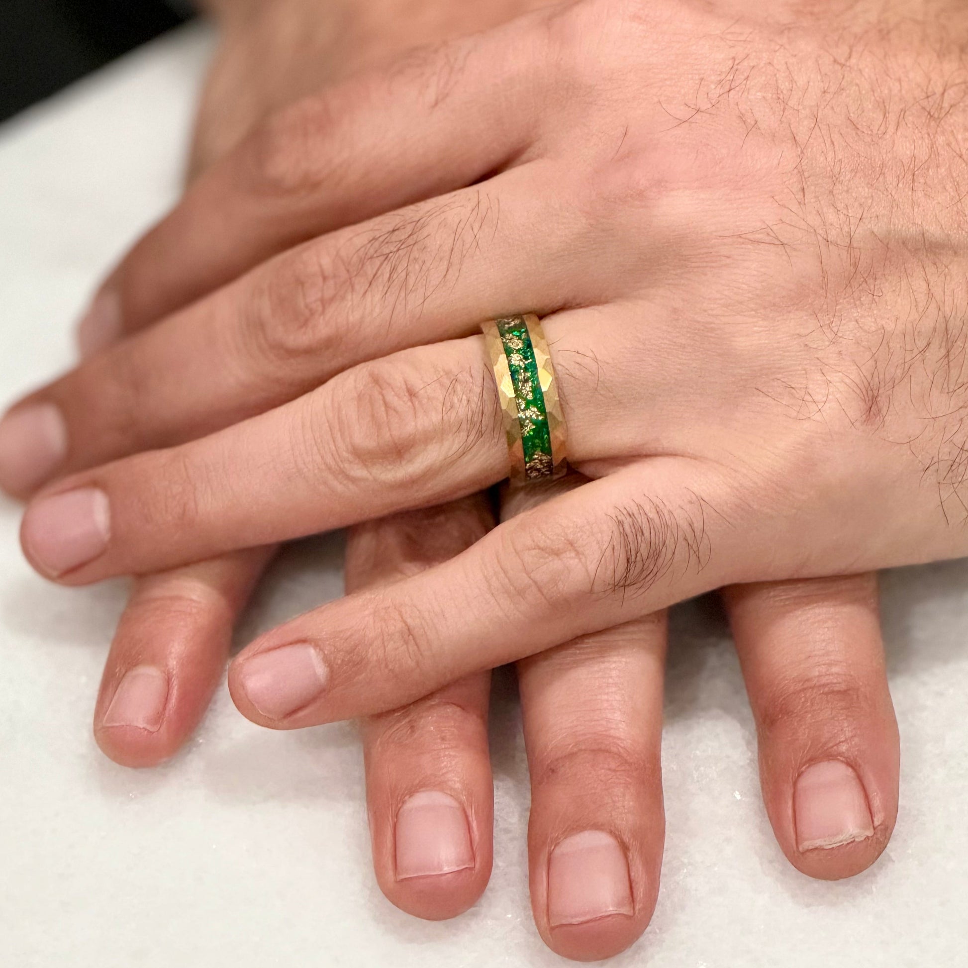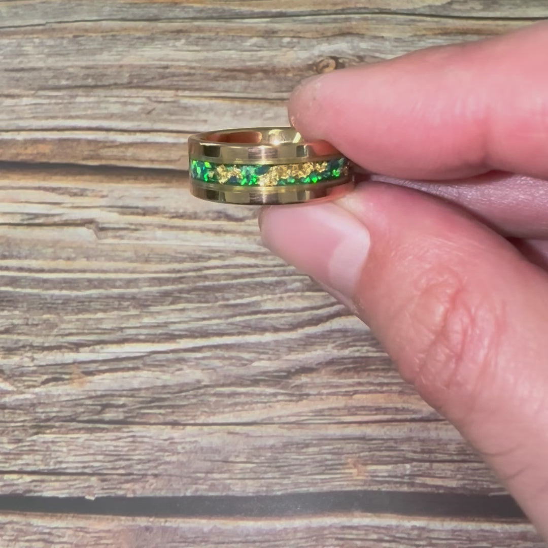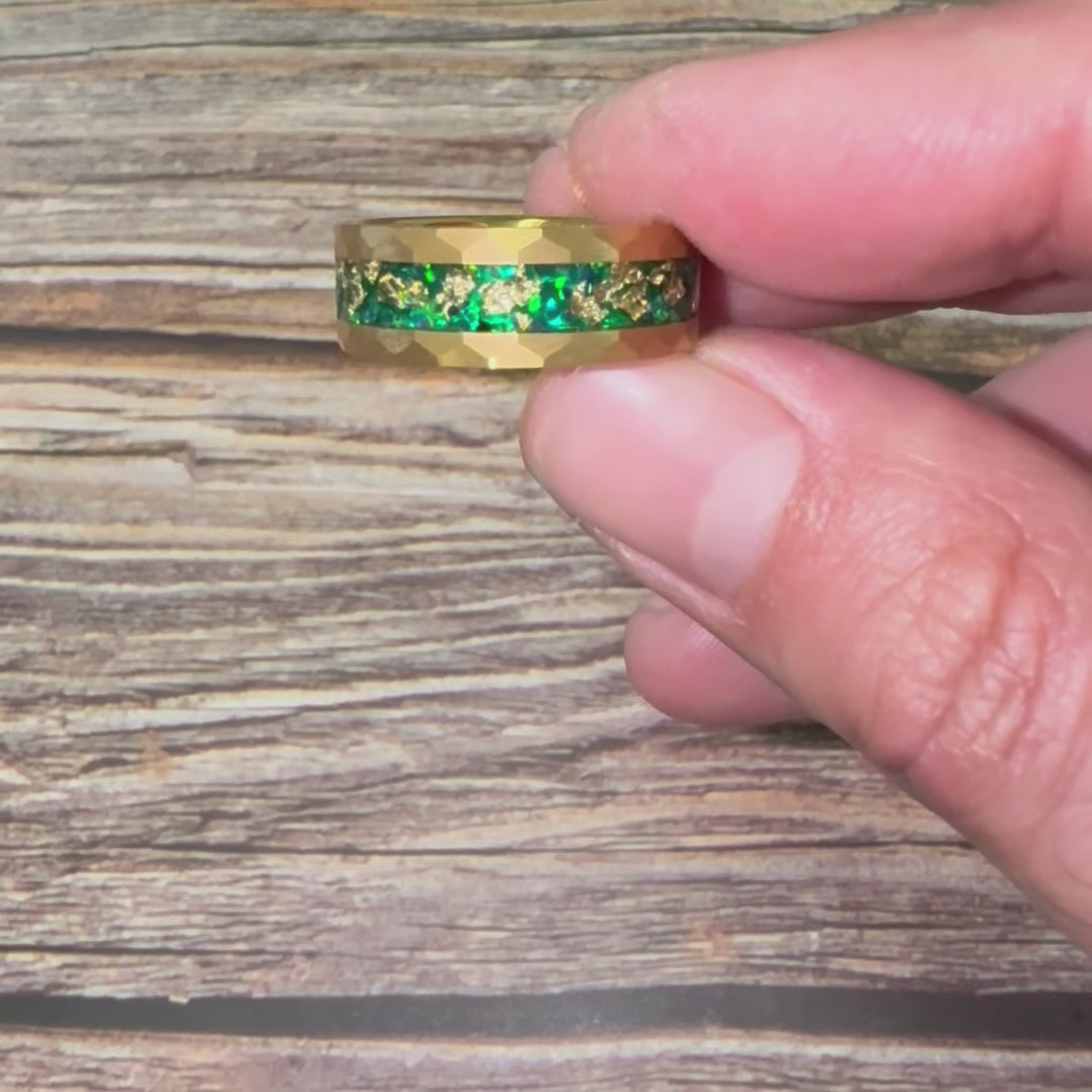 Sale"LOKI" Tungsten Carbide Gold Ring 8mm w/ Crushed Green Opal