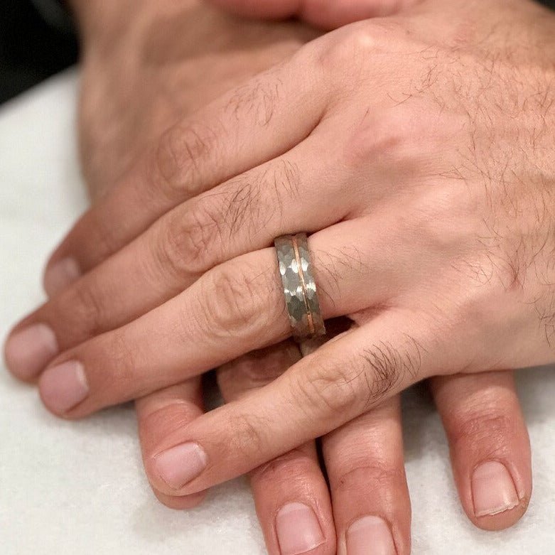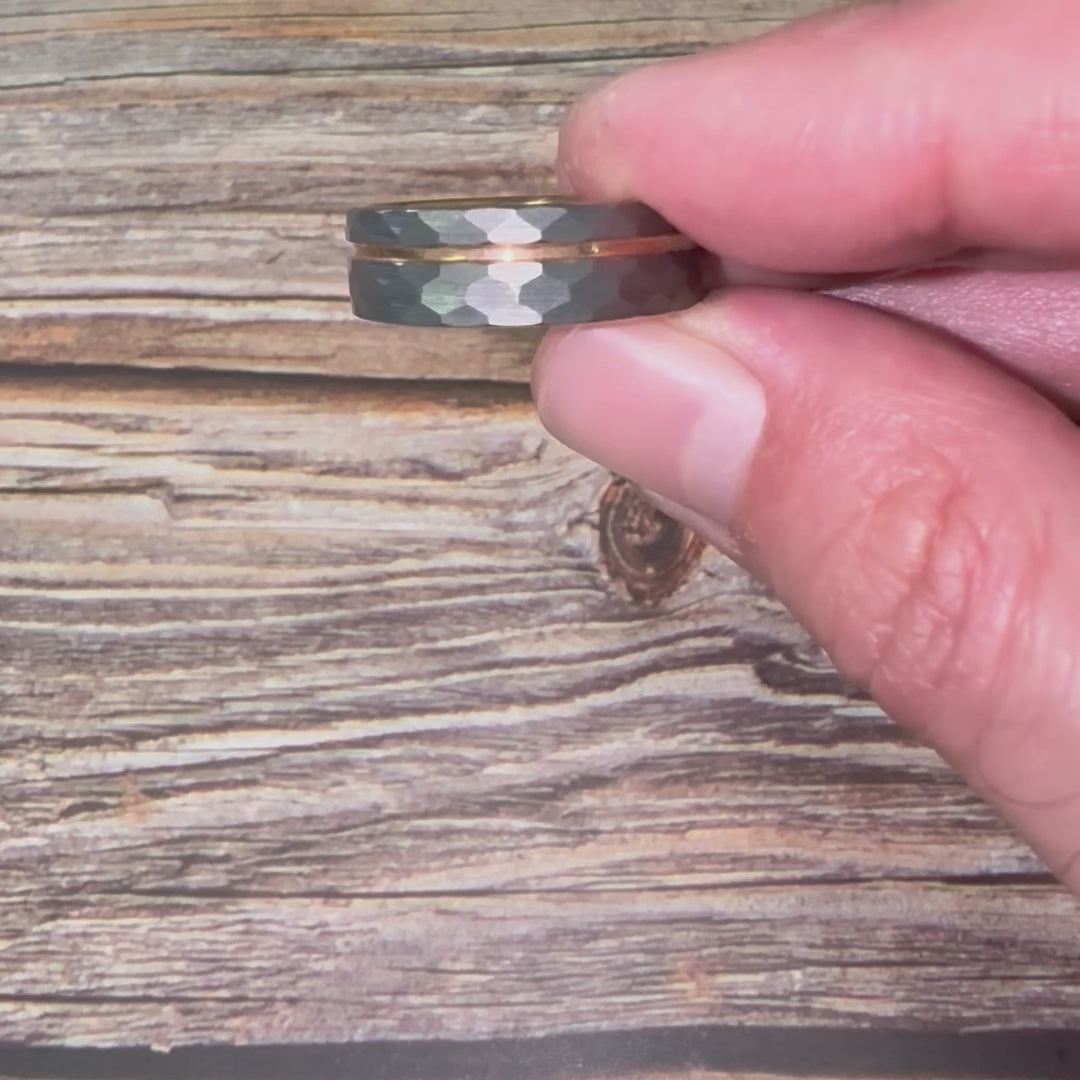 Sale"CHROMATIC" Tungsten Carbide Rose Gold Ring 6mm, 8mm w/ Brushed Silver Middle