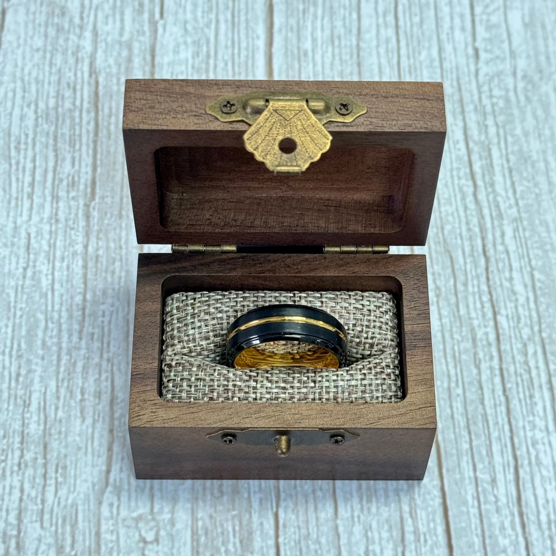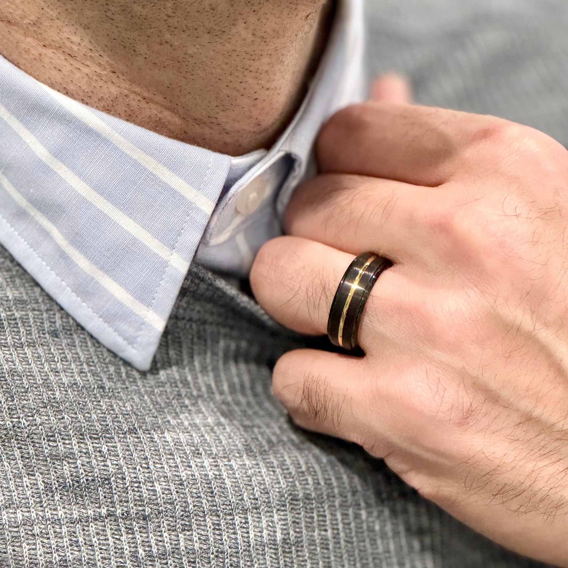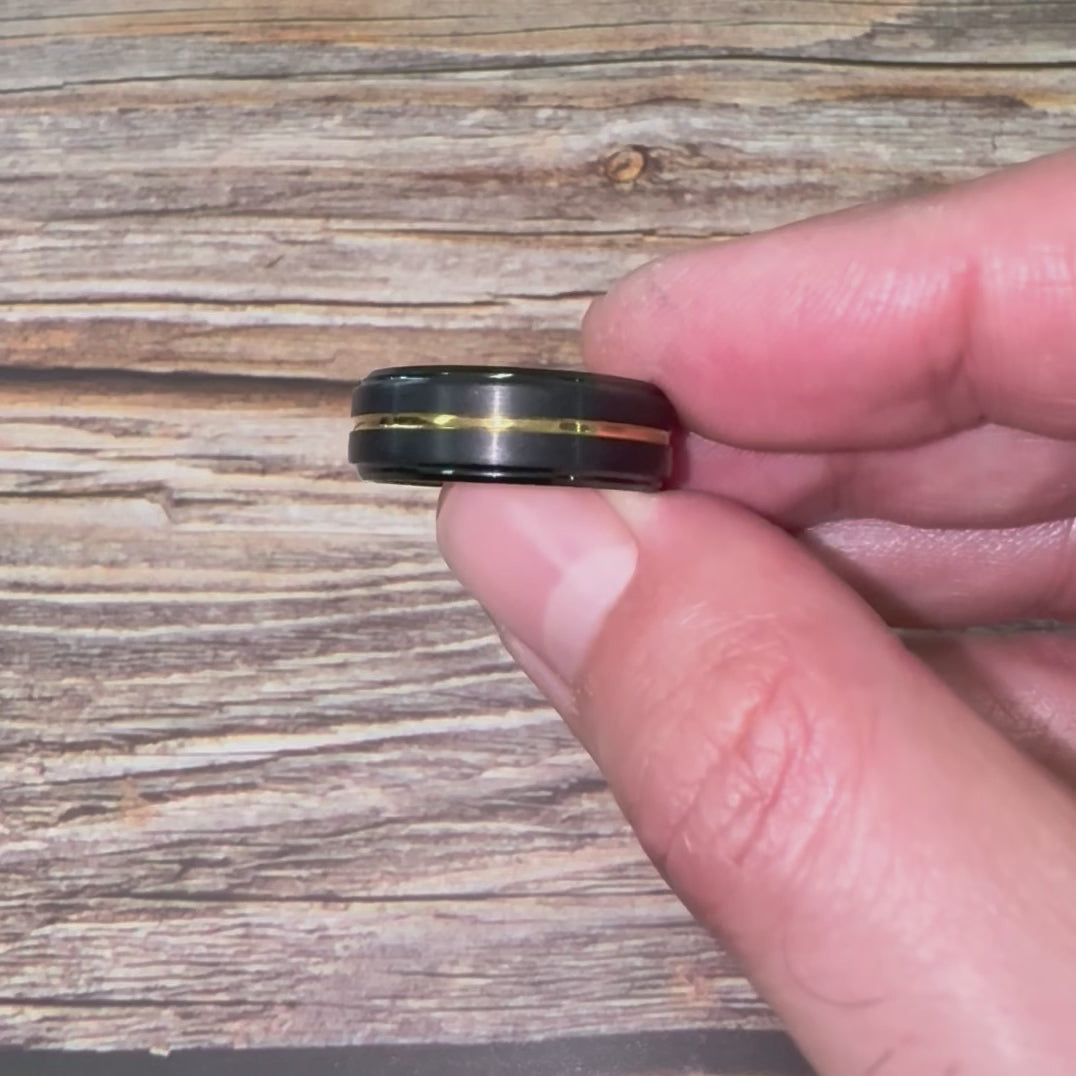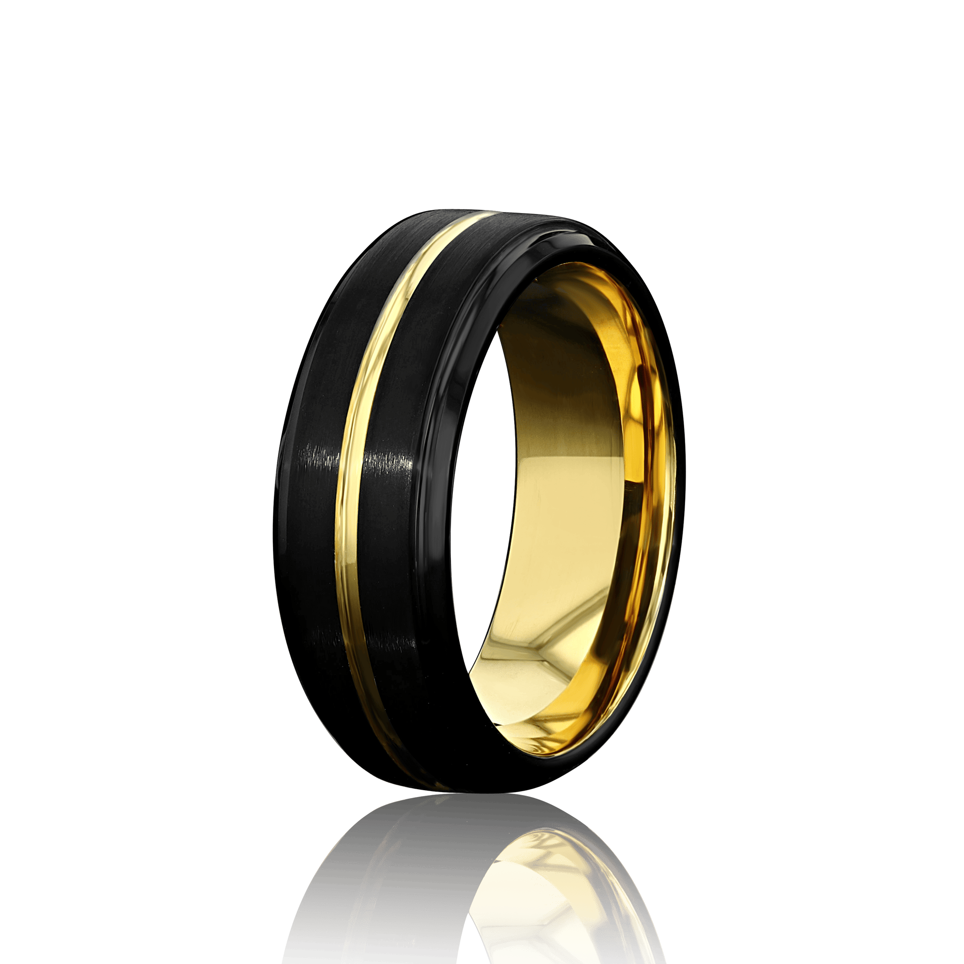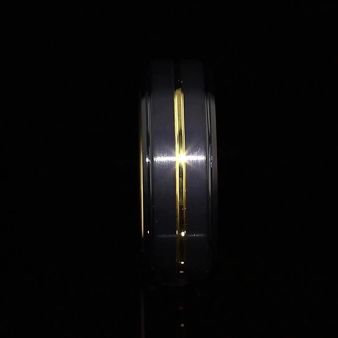 "EQUINOX" Tungsten Carbide Black Ring 8mm w/ Gold Middle Line