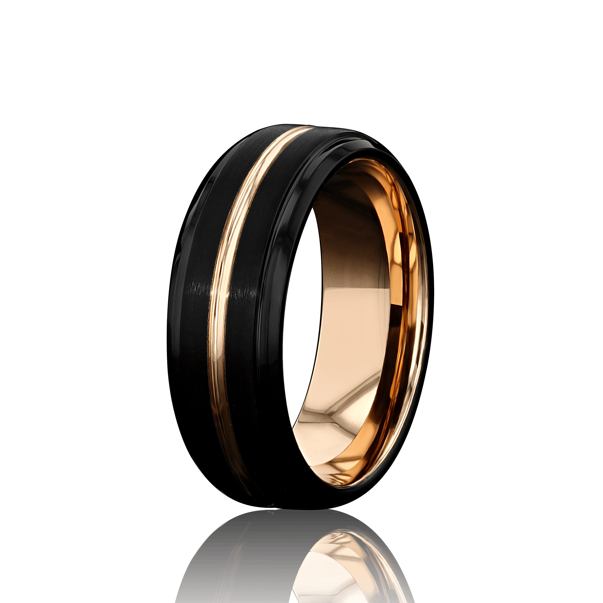 "EQUINOX" Tungsten Carbide Black Ring 8mm w/ Rose Gold Middle Line