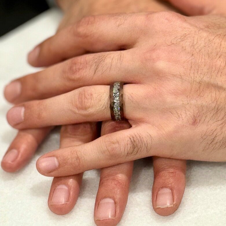 Regular price $529.00 Sale price $396.75"STARDUST" Grooms Collection - Tungsten Carbide Silver Ring 8mm, 6mm w/ Meteorite Dust and Silver Specs