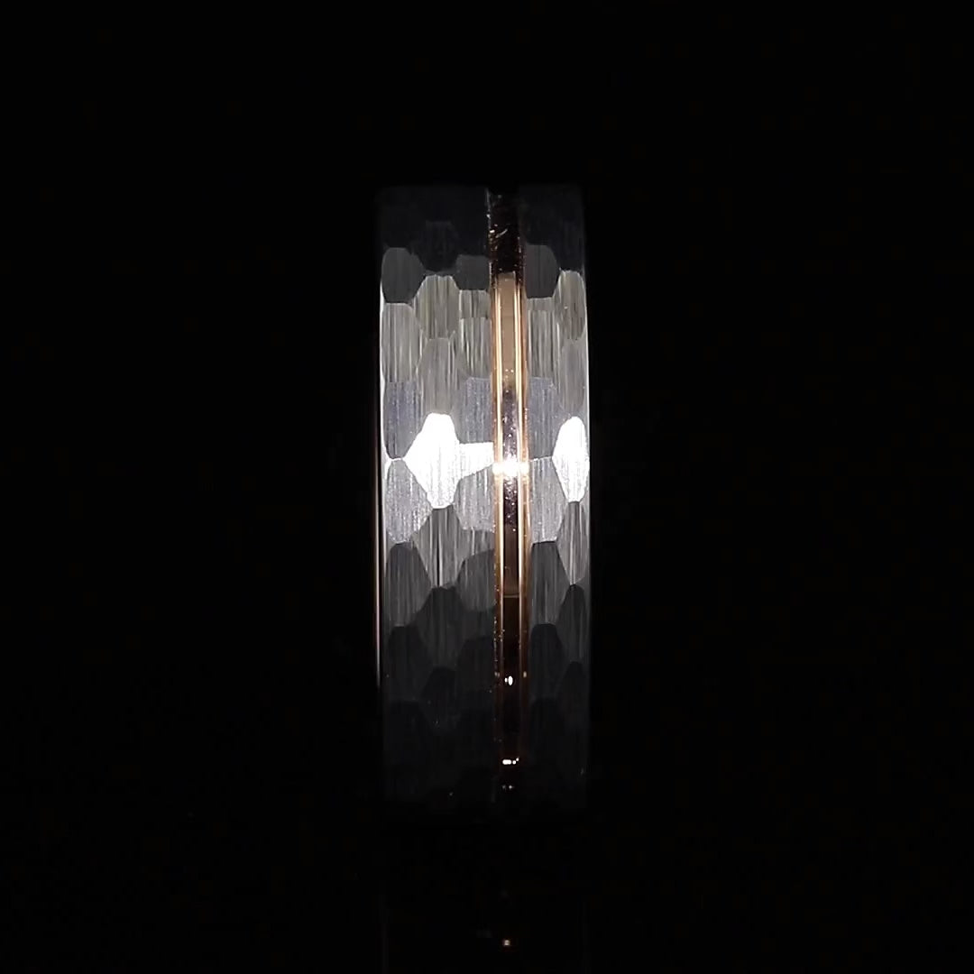 "CHROMATIC" Tungsten Carbide Rose Gold Ring 6mm, 8mm w/ Brushed Silver Middle