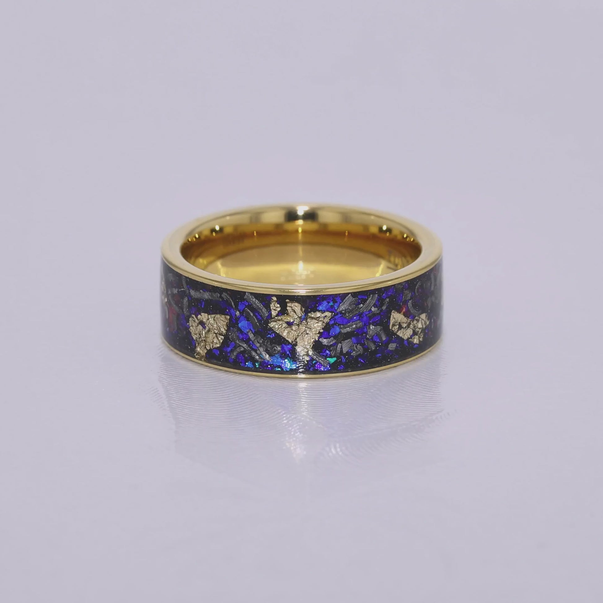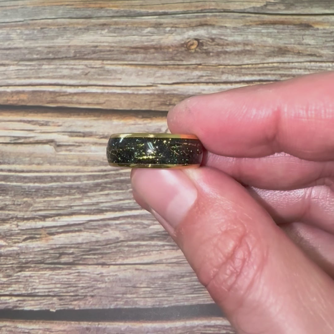 "STARDUST" Tungsten Carbide Gold Ring 8mm, 6mm w/ Meteorite Dust and Gold Specs