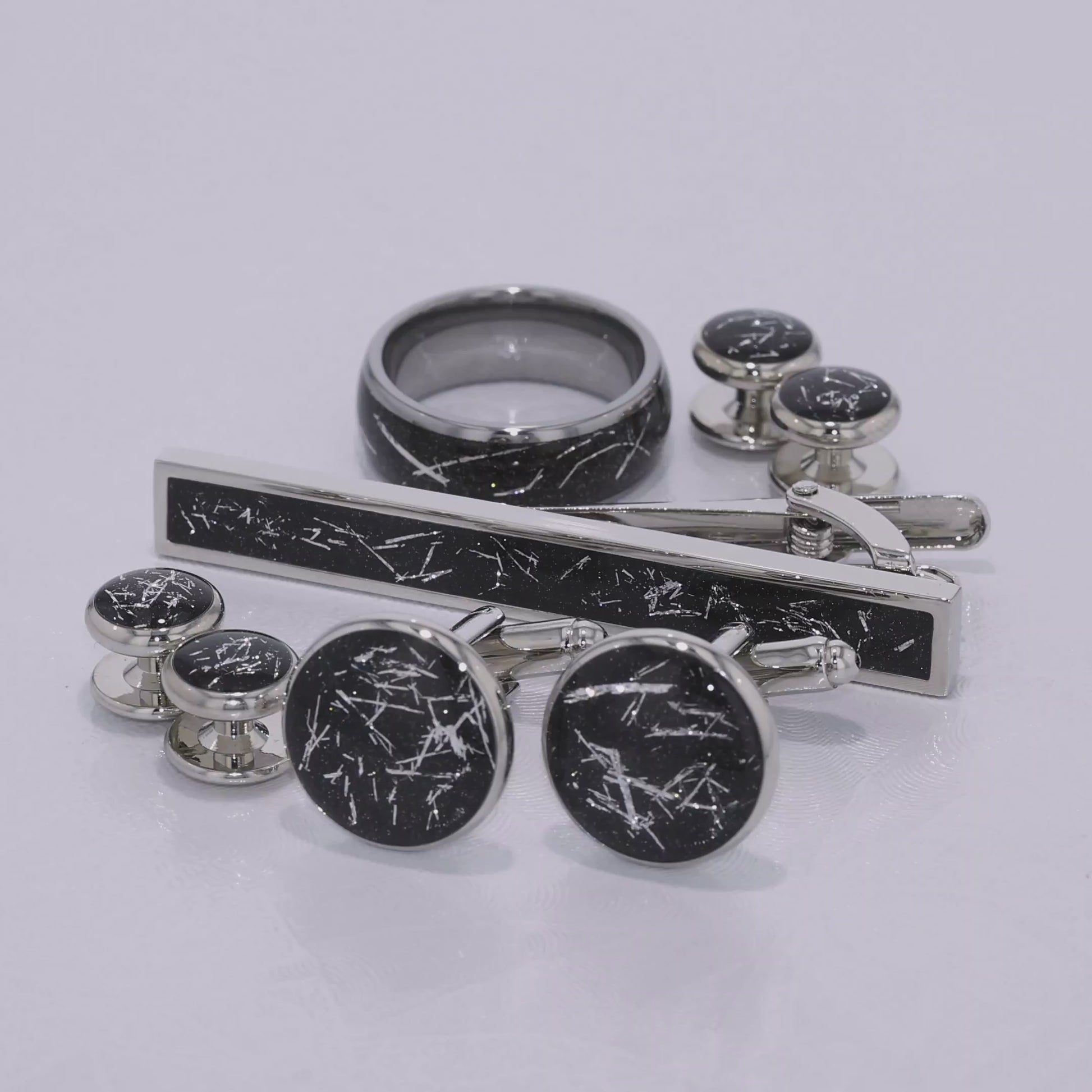 "Starlight" Tungsten Carbide Silver Ring with Crushed Meteorite