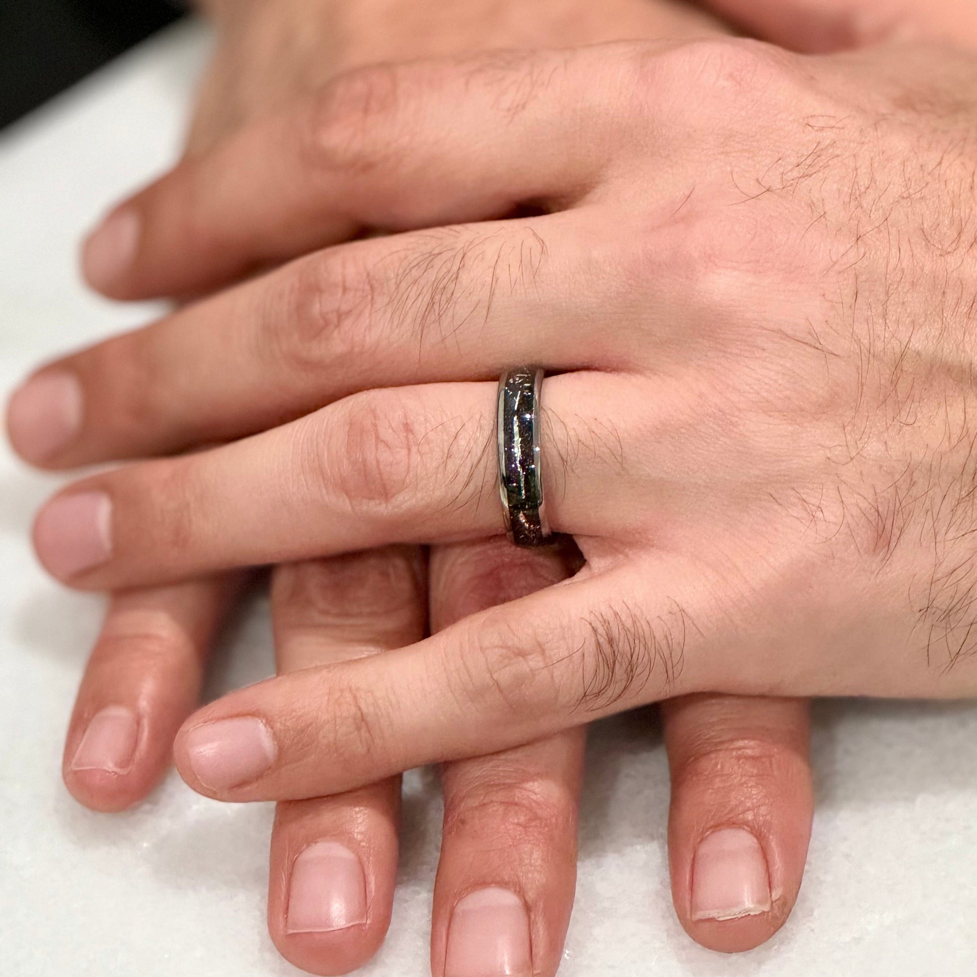 Sale"STARDUST" Tungsten Carbide Gold Ring 8mm, 6mm w/ Meteorite Dust and Gold Specs