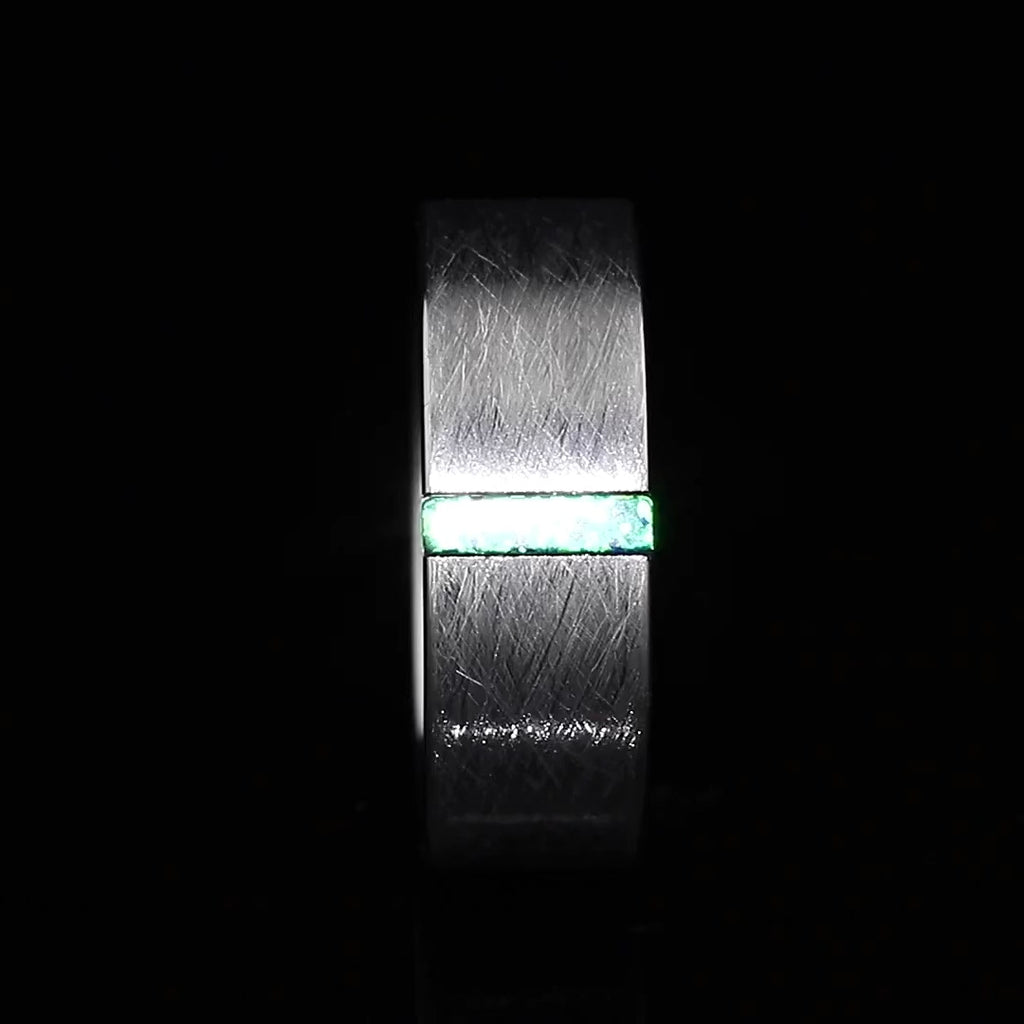 APEX - Tungsten Carbide Silver Brushed Ring 8mm w/ Blue-Green Opal