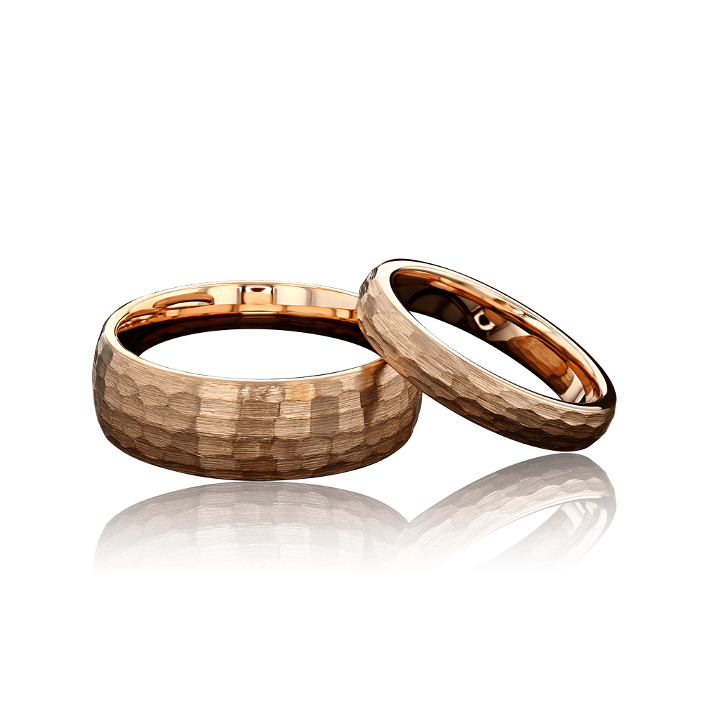 Couples - BEDROCK - Tungsten Carbide Rose Gold Ring 8mm, 4mm w/ Hammered Design