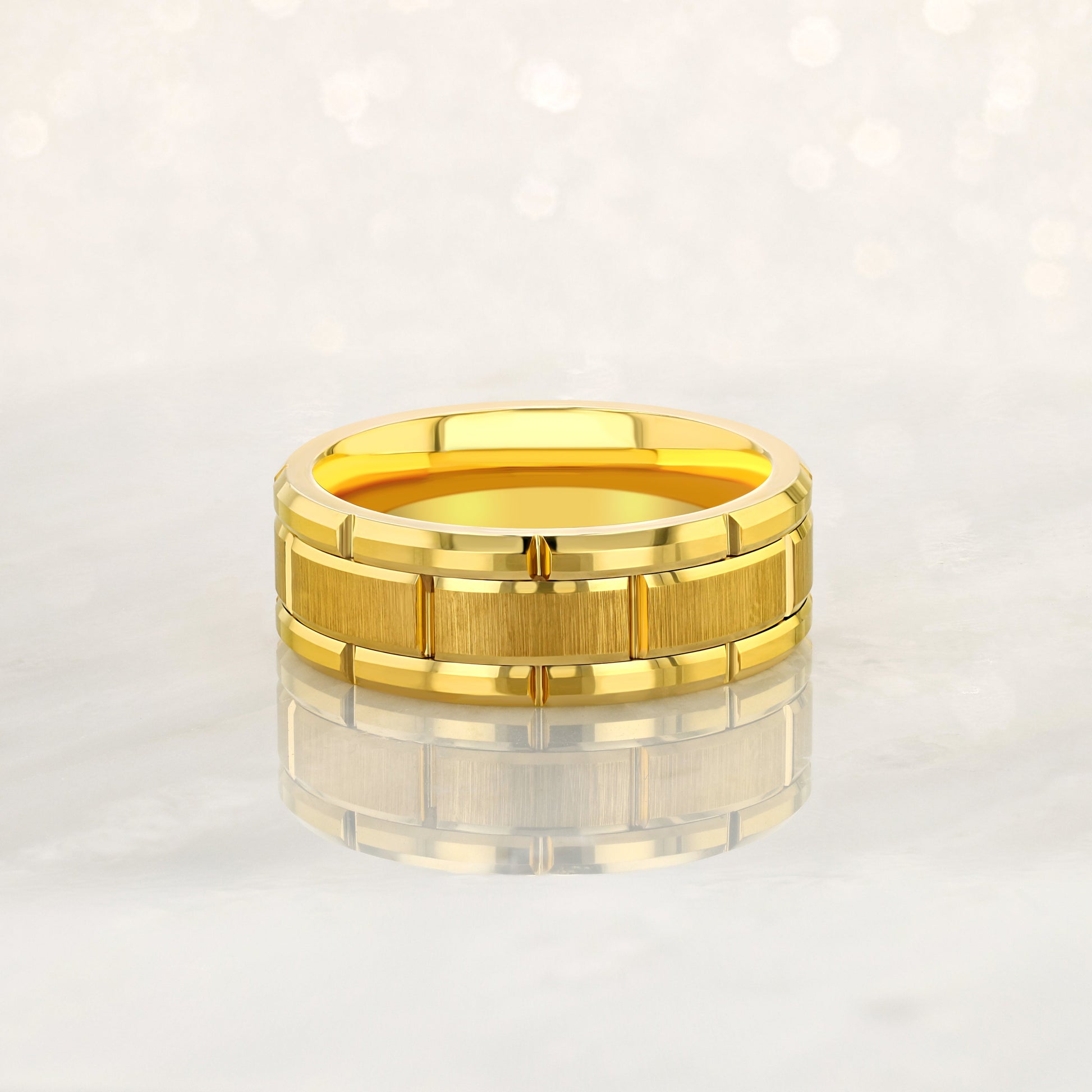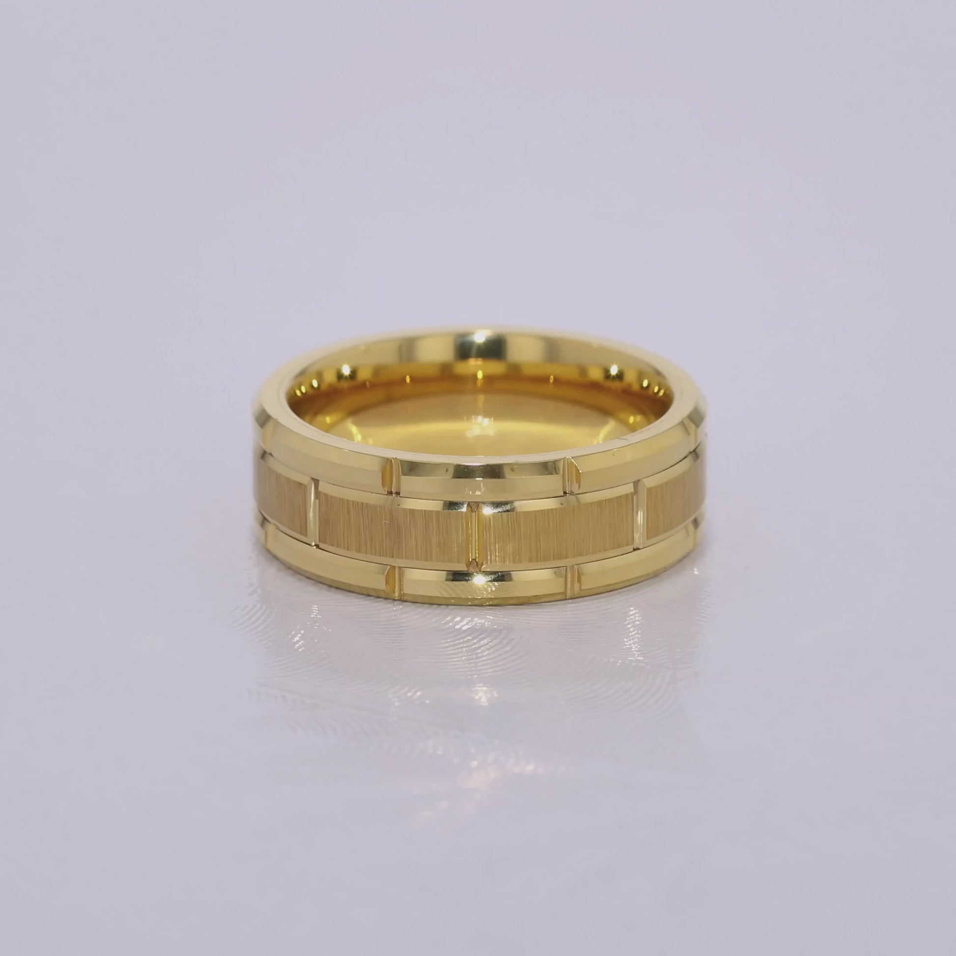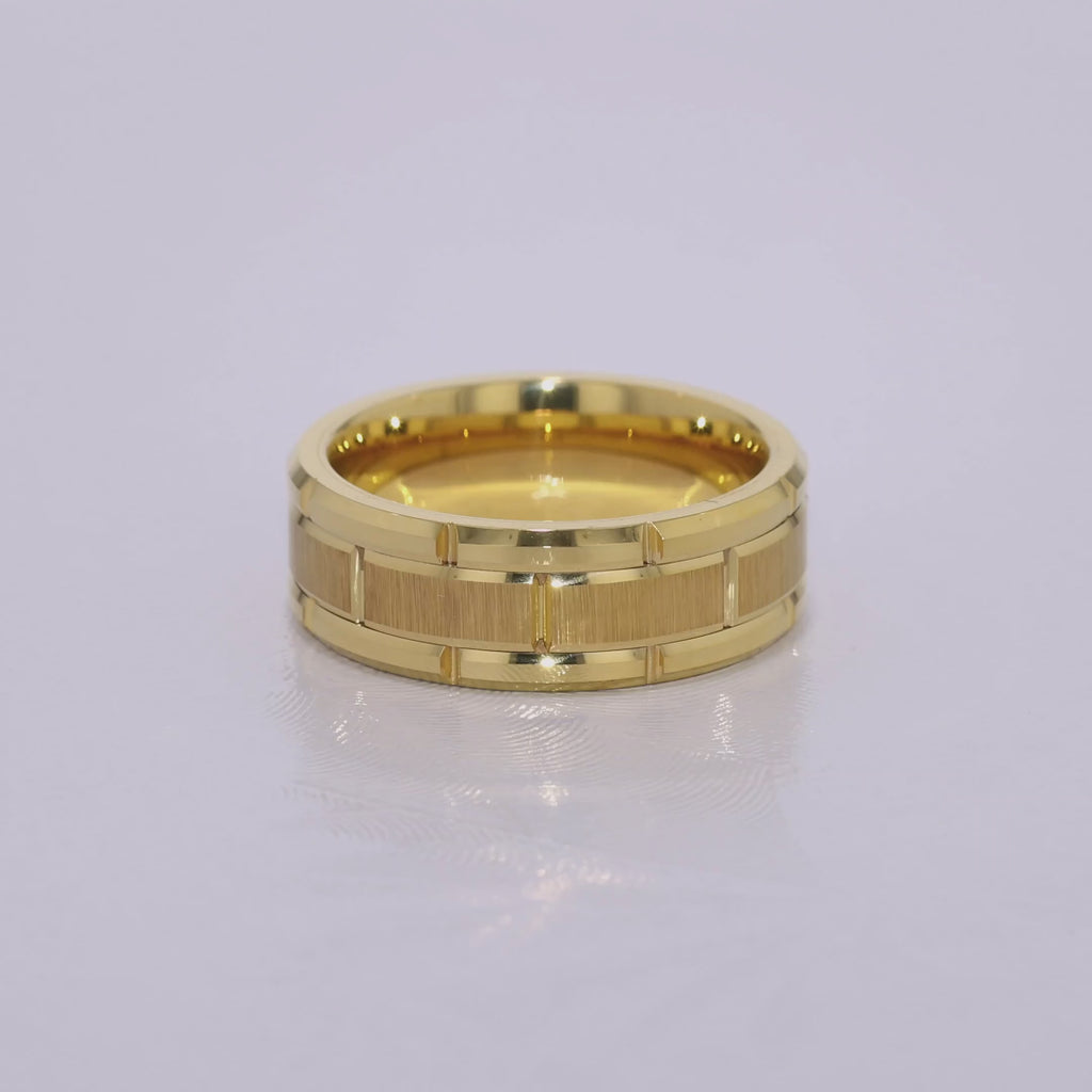 “BISHOP” Tungsten Carbide Yellow Gold Ring 8mm w/ Checkered Pattern