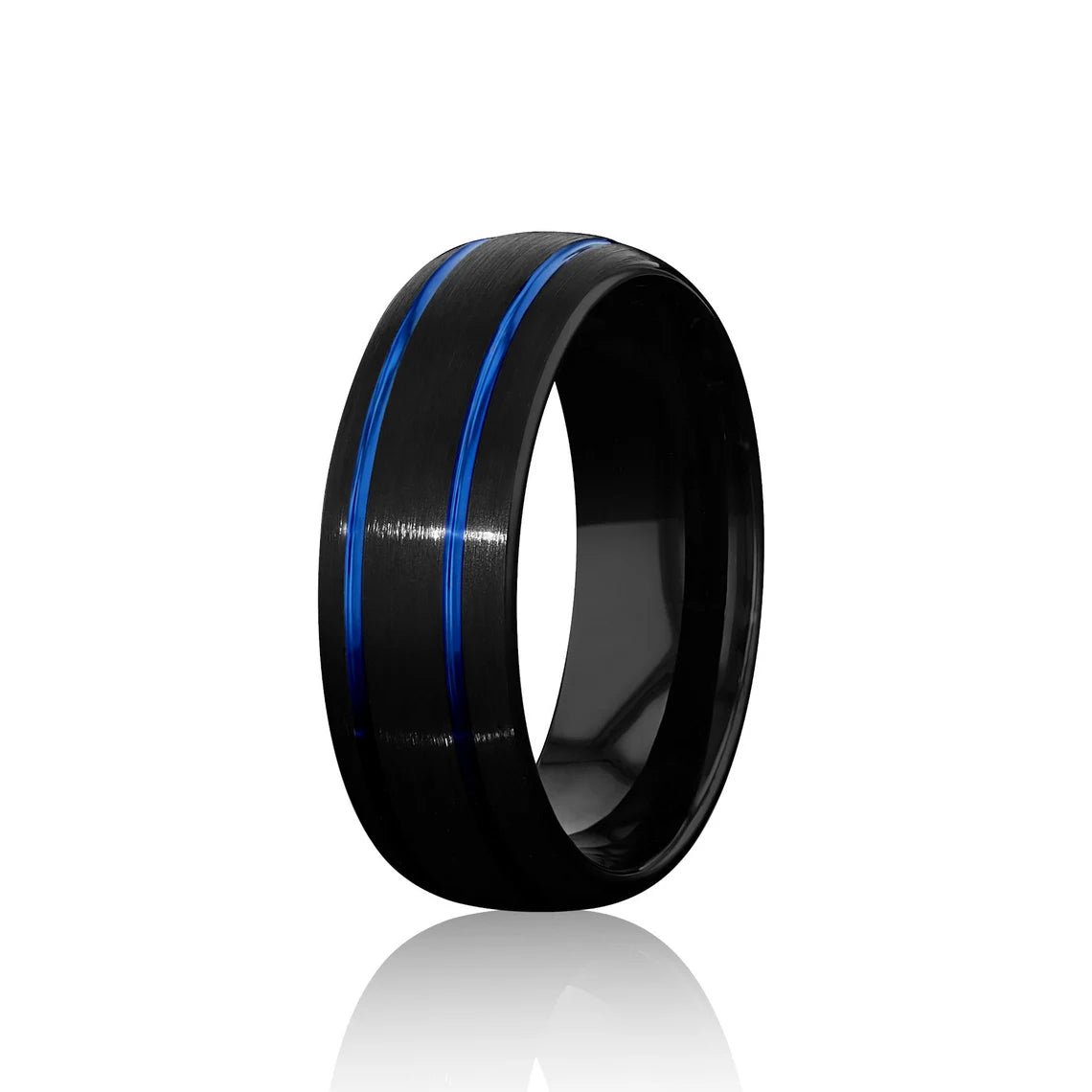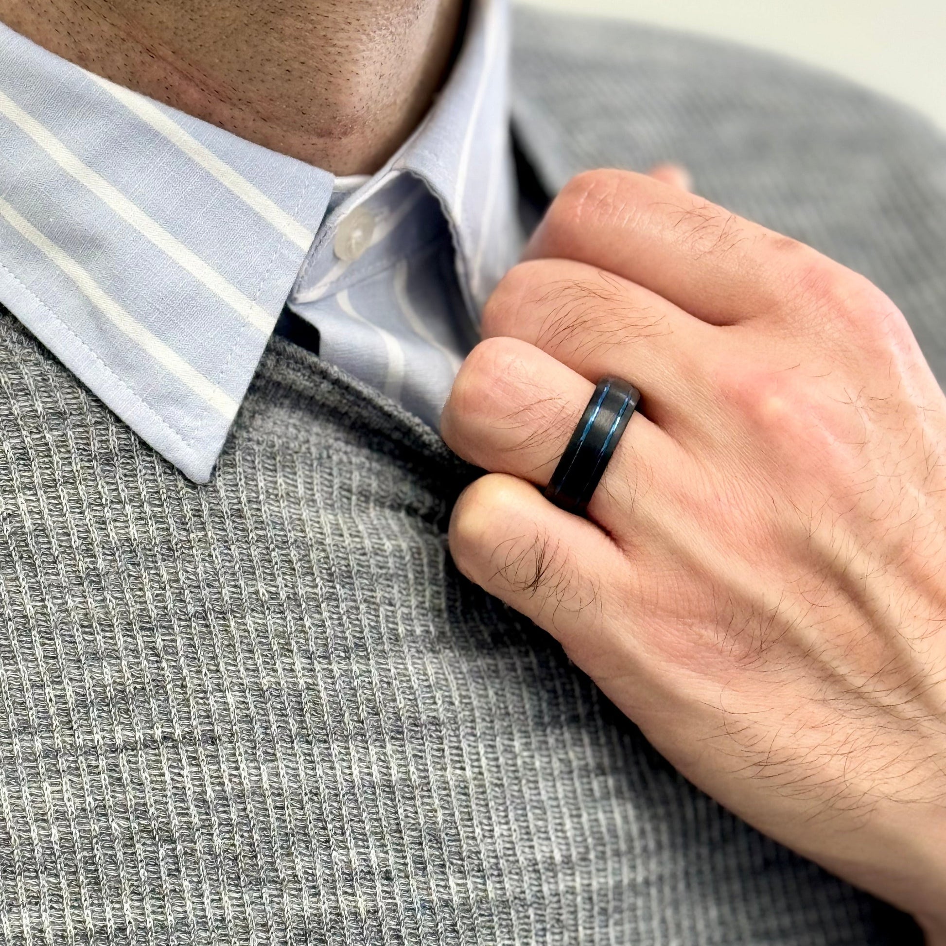 "CHROMATIC" Tungsten Carbide Black Ring 8mm w/ Two Blue Lines