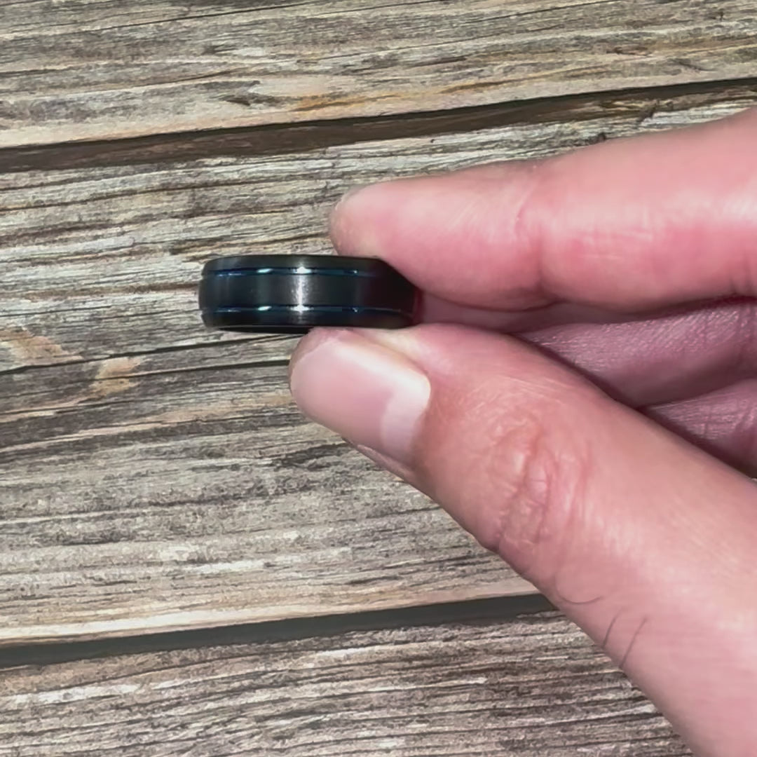 Introducing our Tungsten Carbide Black Ring with two Blue Lines, this ring features a sleek black interior and exterior with two blue lines . This 8mm-wide ring can be customized to any size, including those not listed above; contact us for personalized orders!