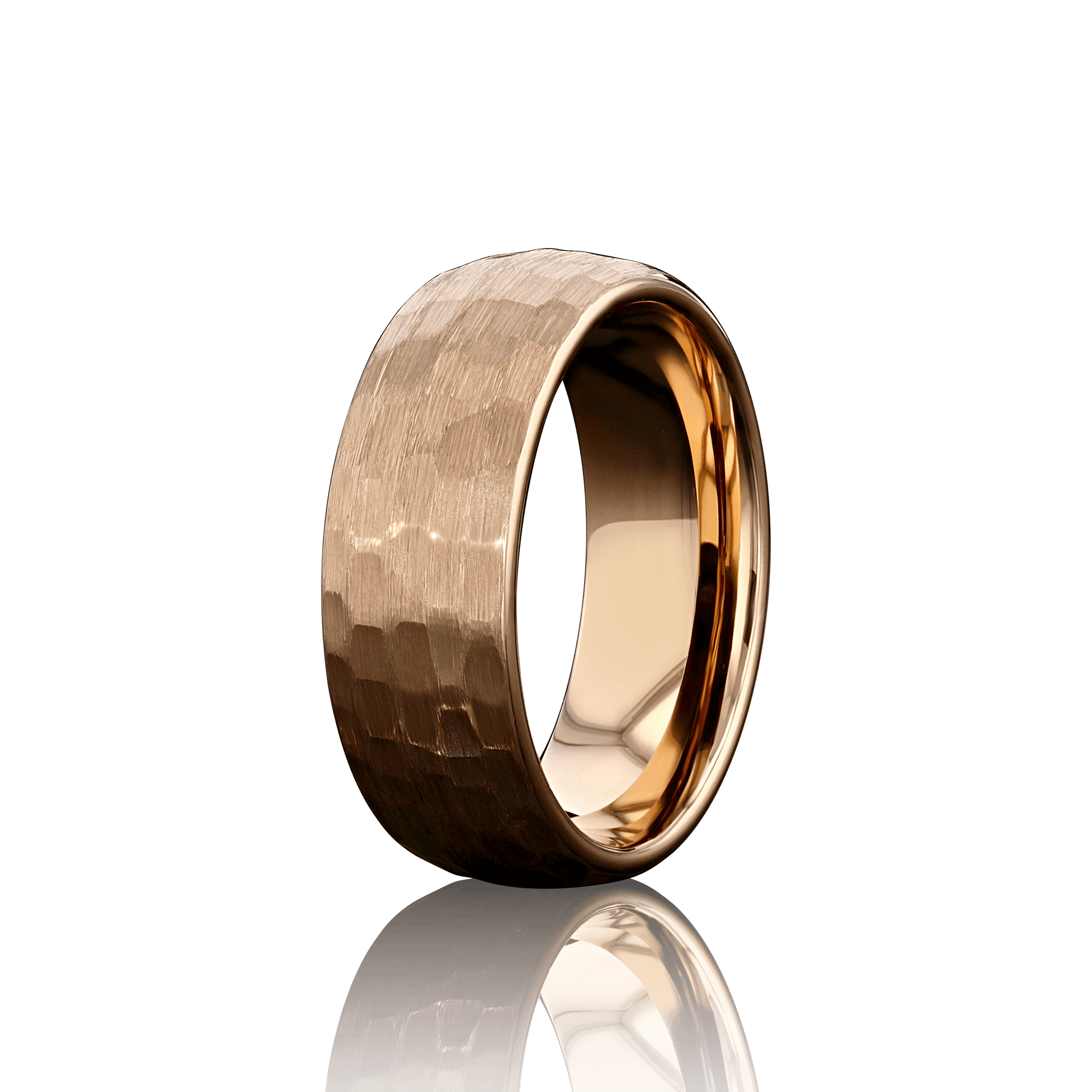 BEDROCK - Tungsten Carbide Rose Gold Ring 8mm, 4mm w/ Hammered Design